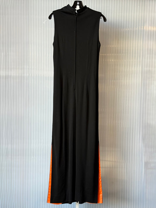 1960s Black Sleeveless Mandarin Collar Maxi Dress