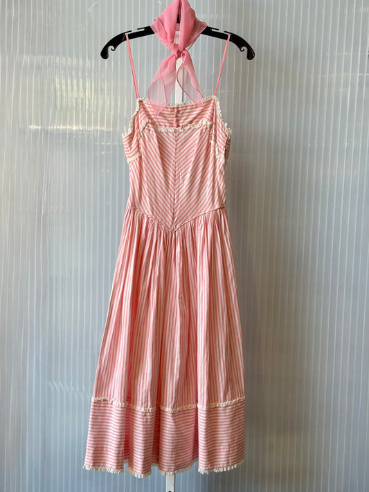 1950s Pink & White Striped Dress & Shrug Set w/ Pink Scarf