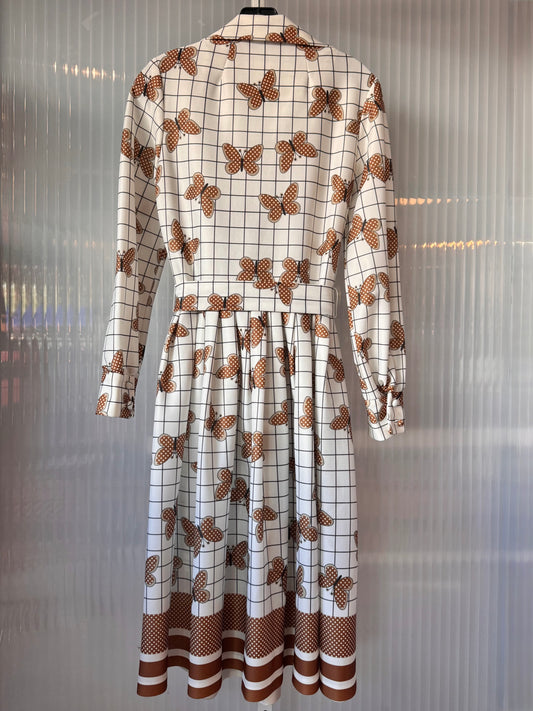 1970s White & Brown Butterfly Pattern DressRegular price $62.00 USDRegular priceUnit price / per-