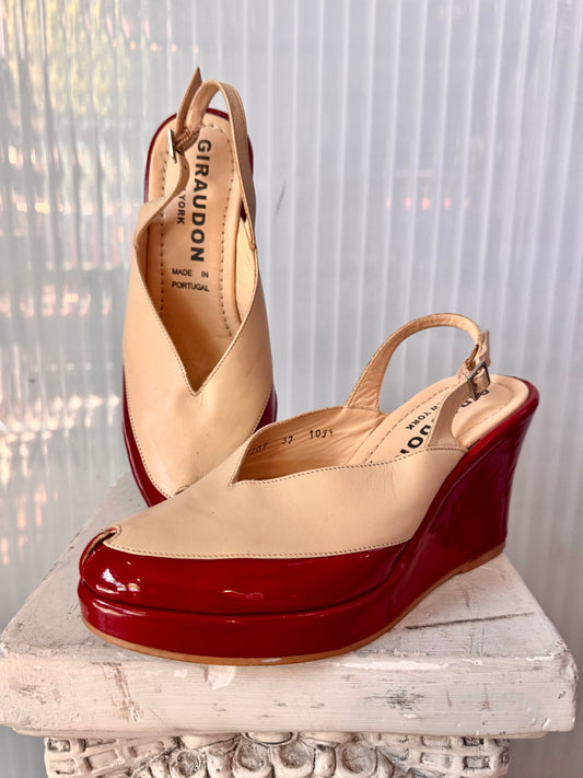 1980s does 40s Giraudon NY Red & Cream Slingback Peeptoe HeelsRegular price $50.00 USDRegular priceUnit price / per-