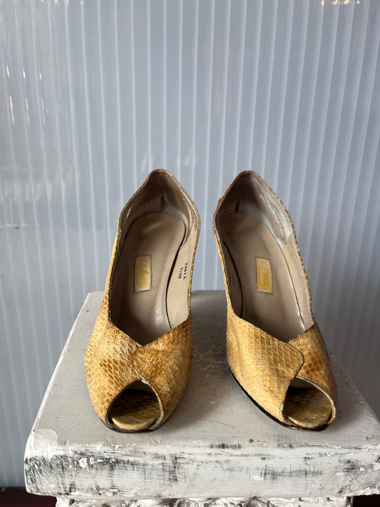 Sold out Sold out1980s Tan Snakeskin Open-toe HeelsRegular price $20.00 USDRegular priceUnit price / per-