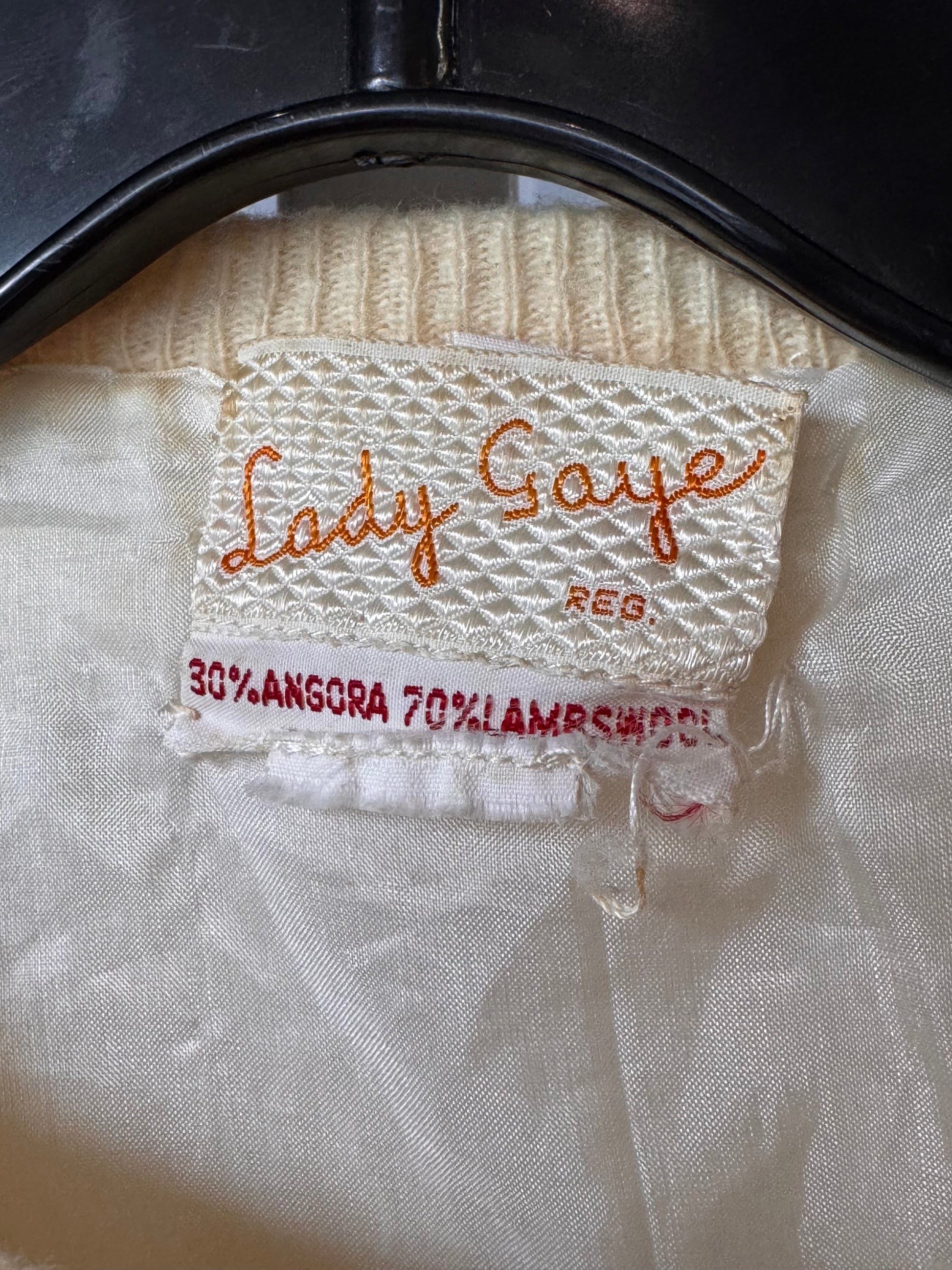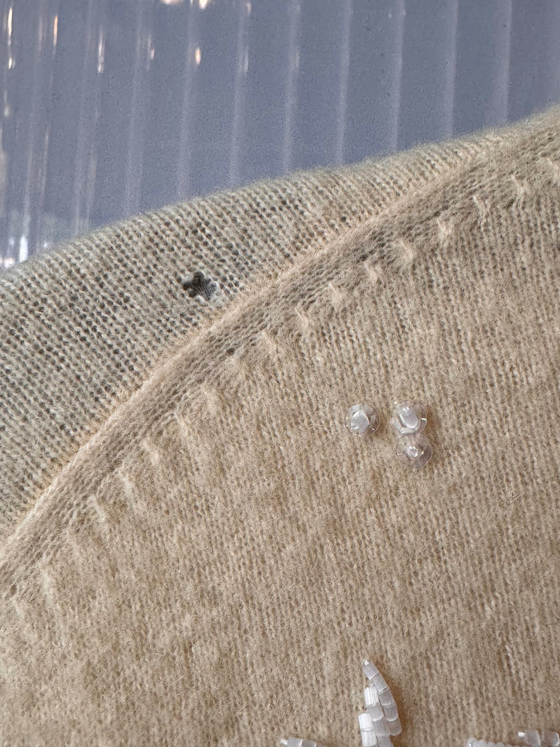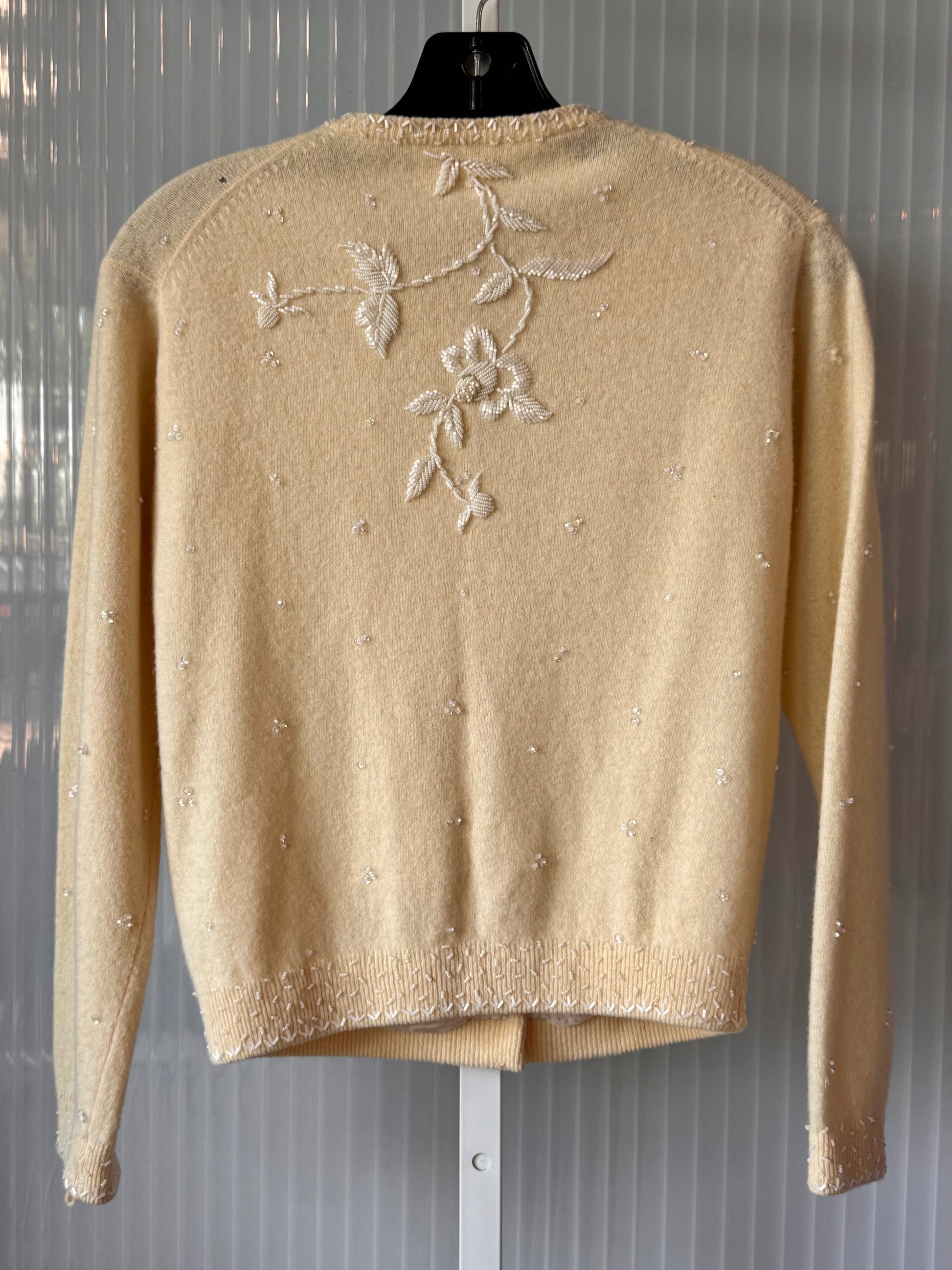 Late 1950s potentially early 1960s, cream sweater with white and clear floral beading