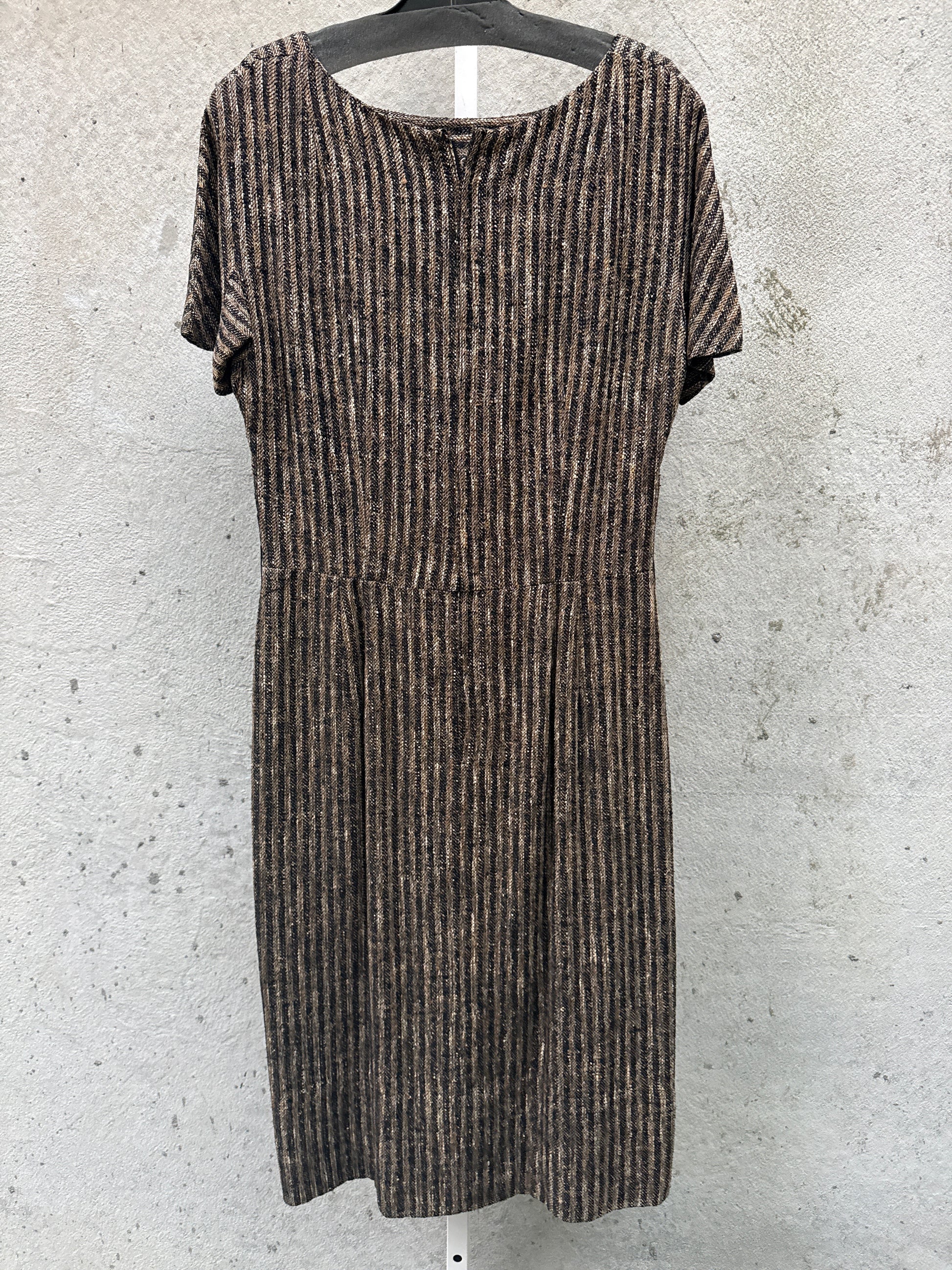 1950s Brown & Black Striped Tweed Dress & Jacket Set