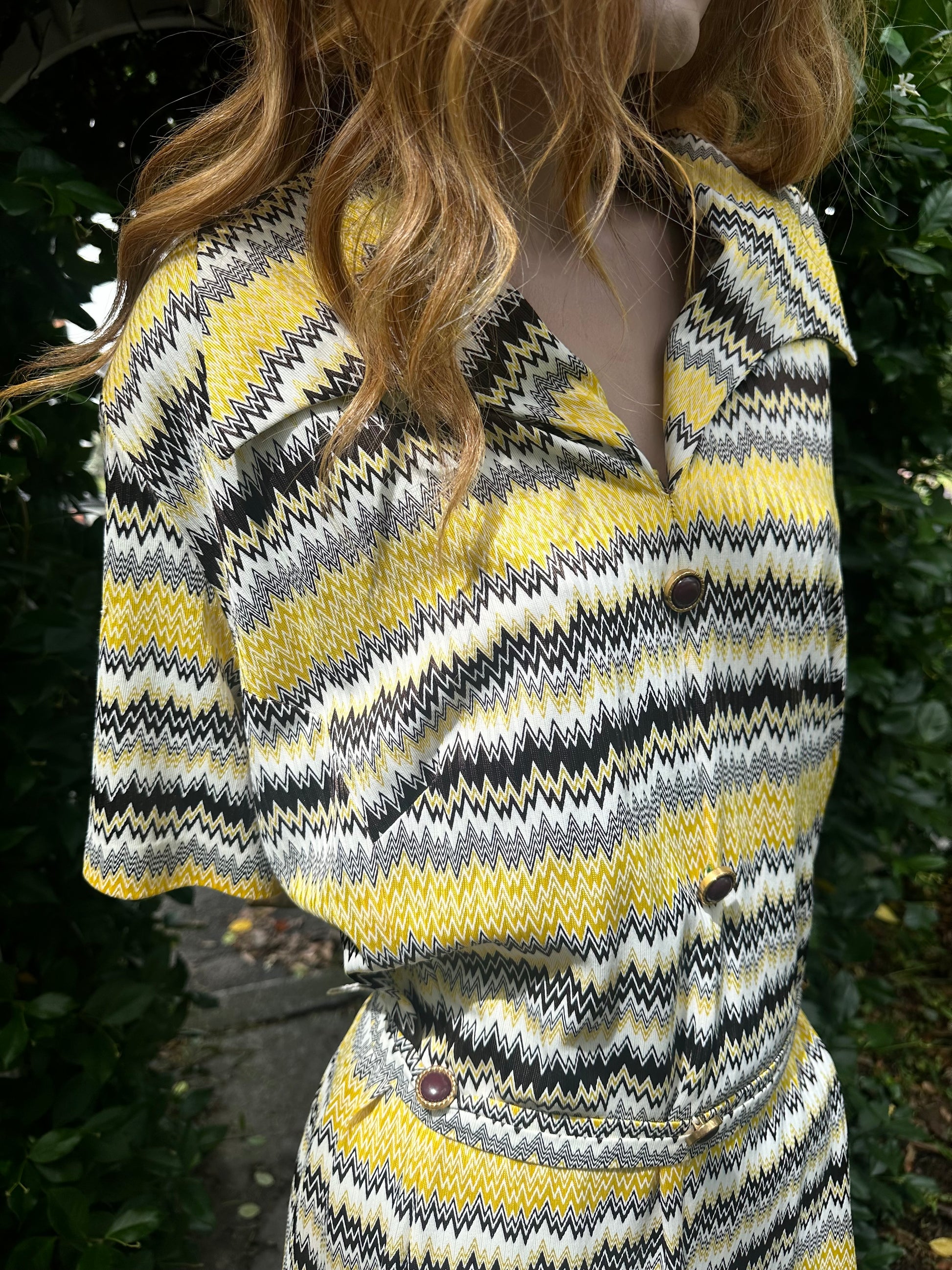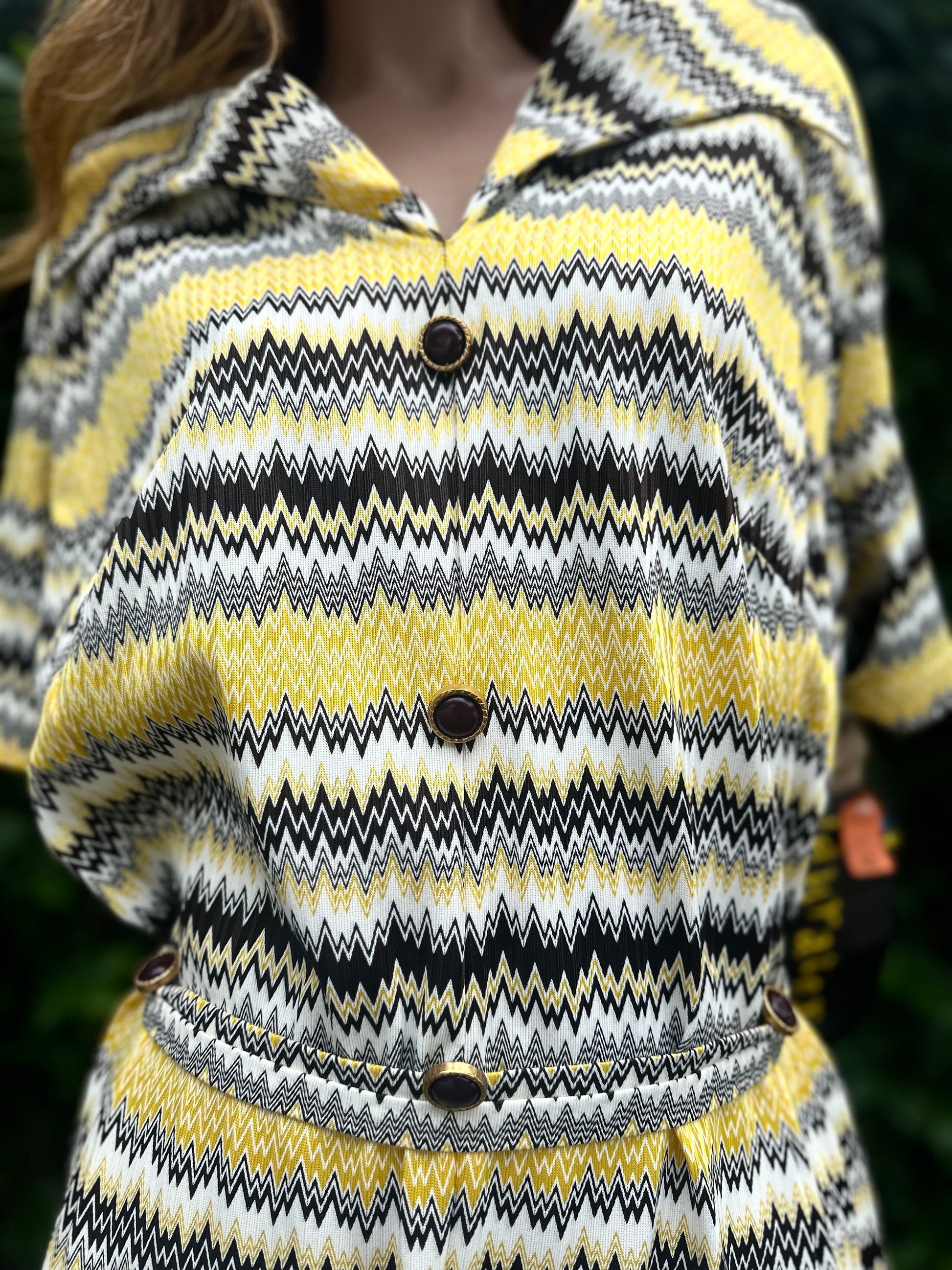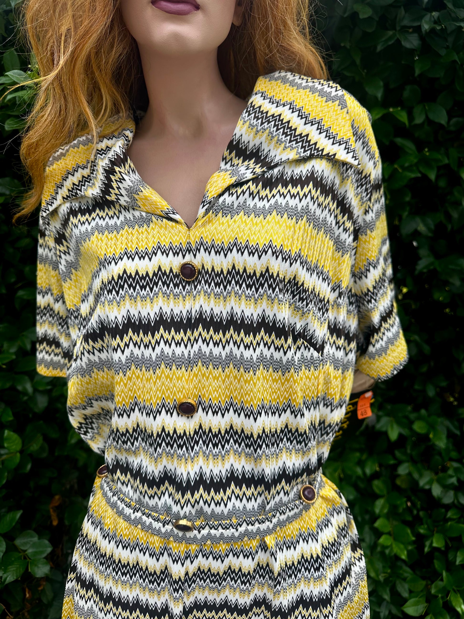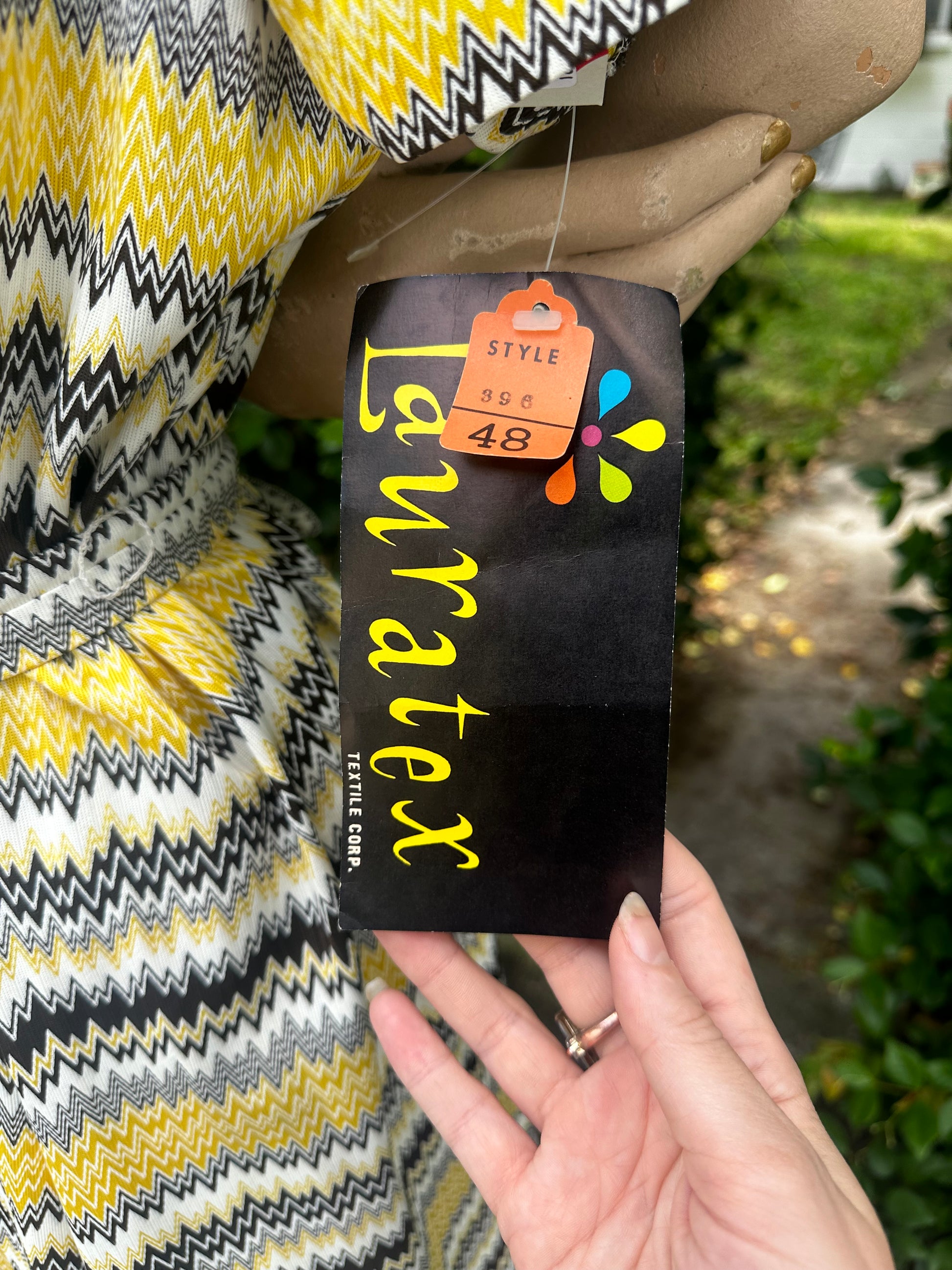 Get ready to turn heads in this shift dress from the 1960’s! With a stunning graphic pattern and sized for our gorgeous curvy girlies, you'll feel confident and stylish. Step back in time in this fabulous vintage number 💃