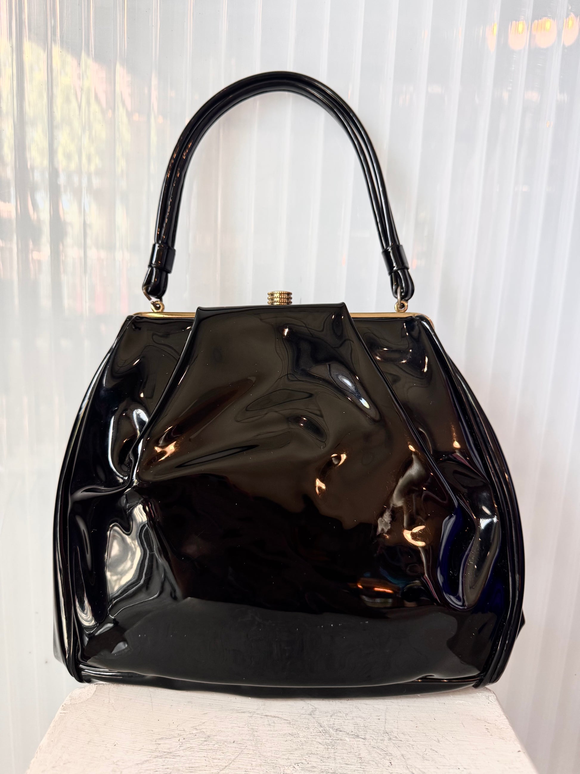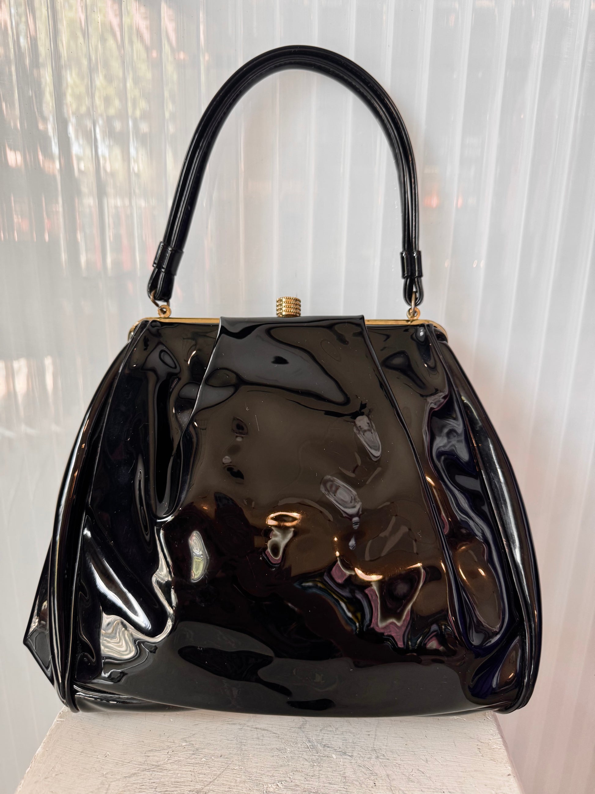 1950s Tempra Black Patent Leather Handbag