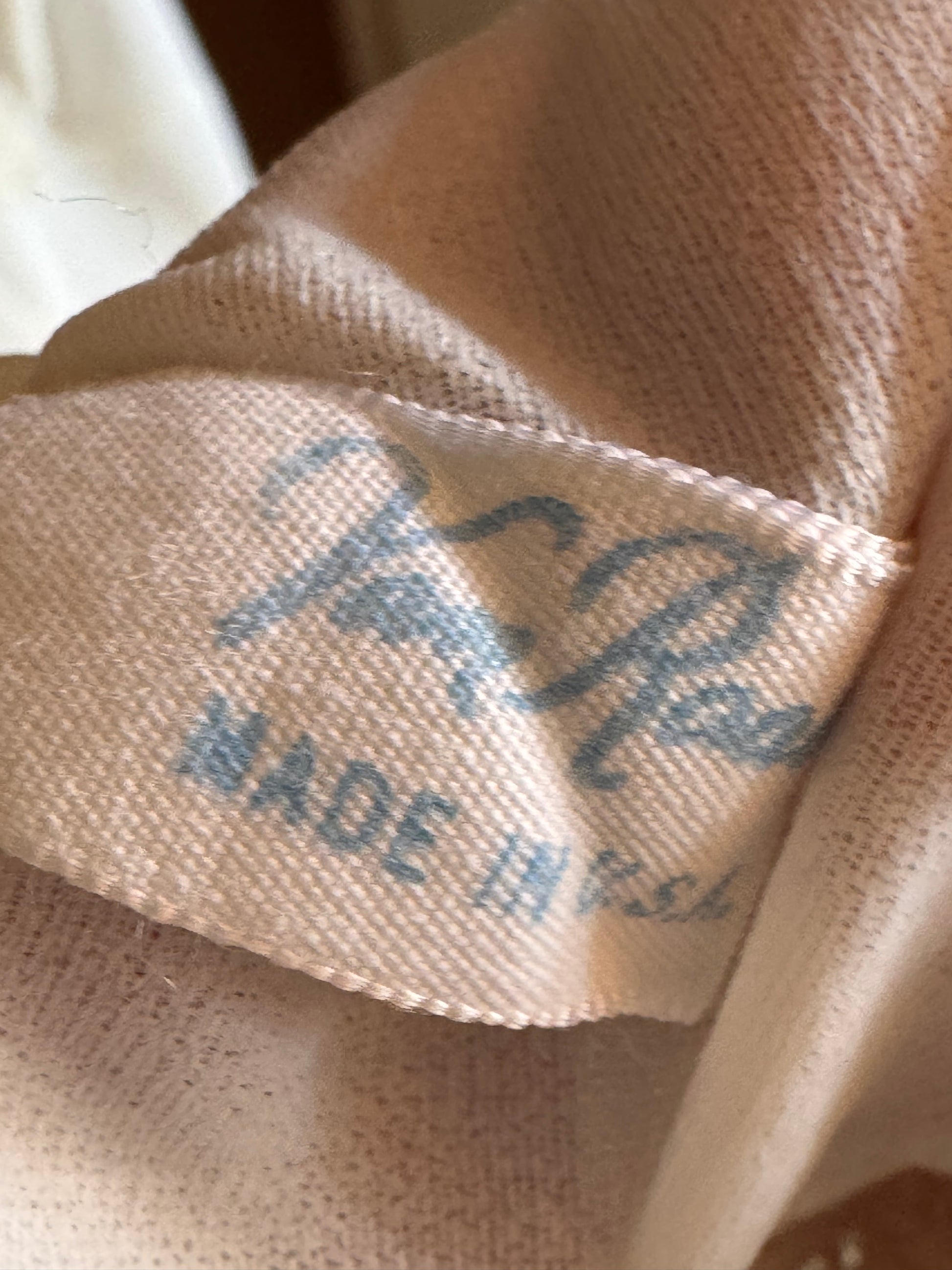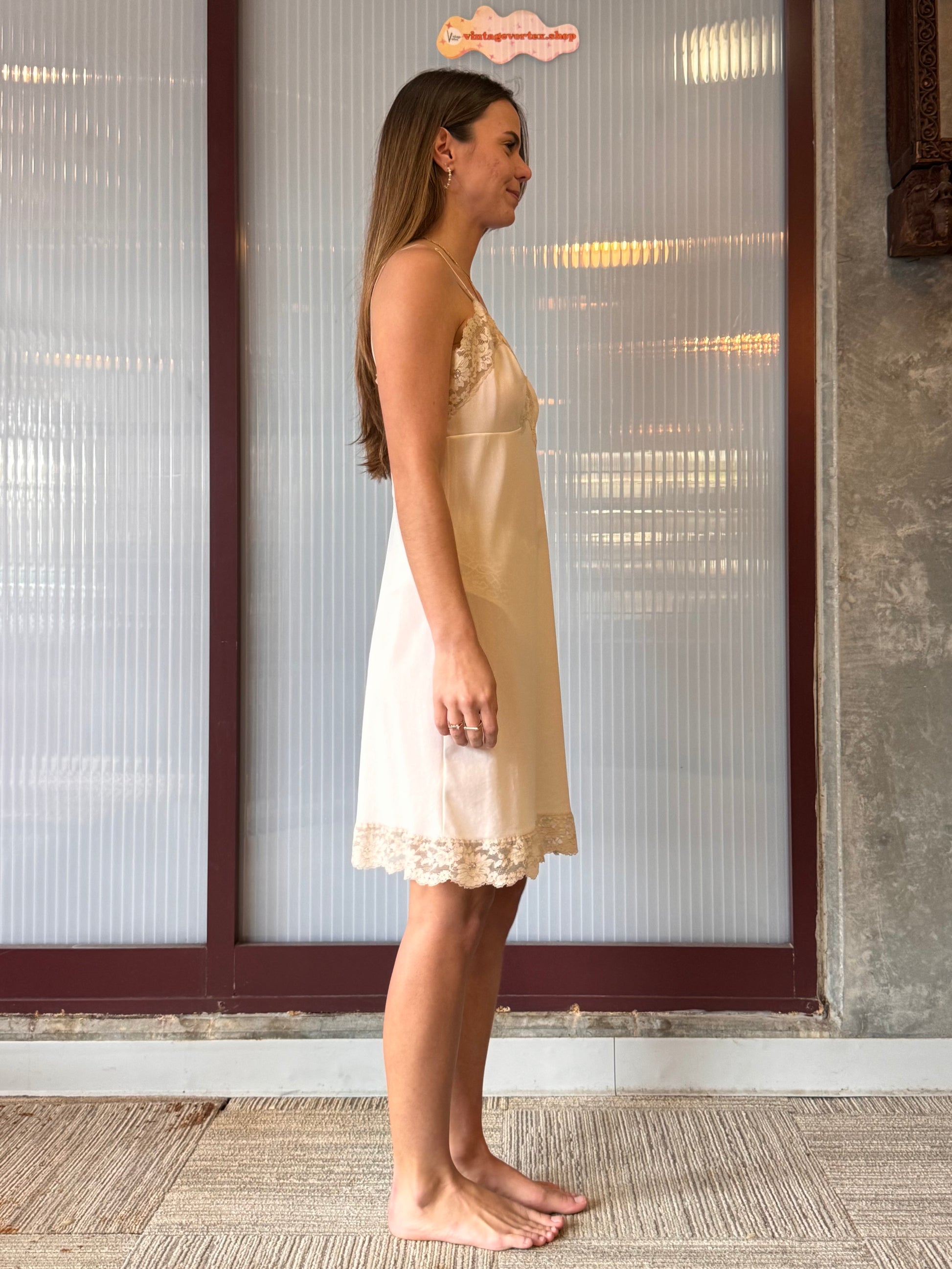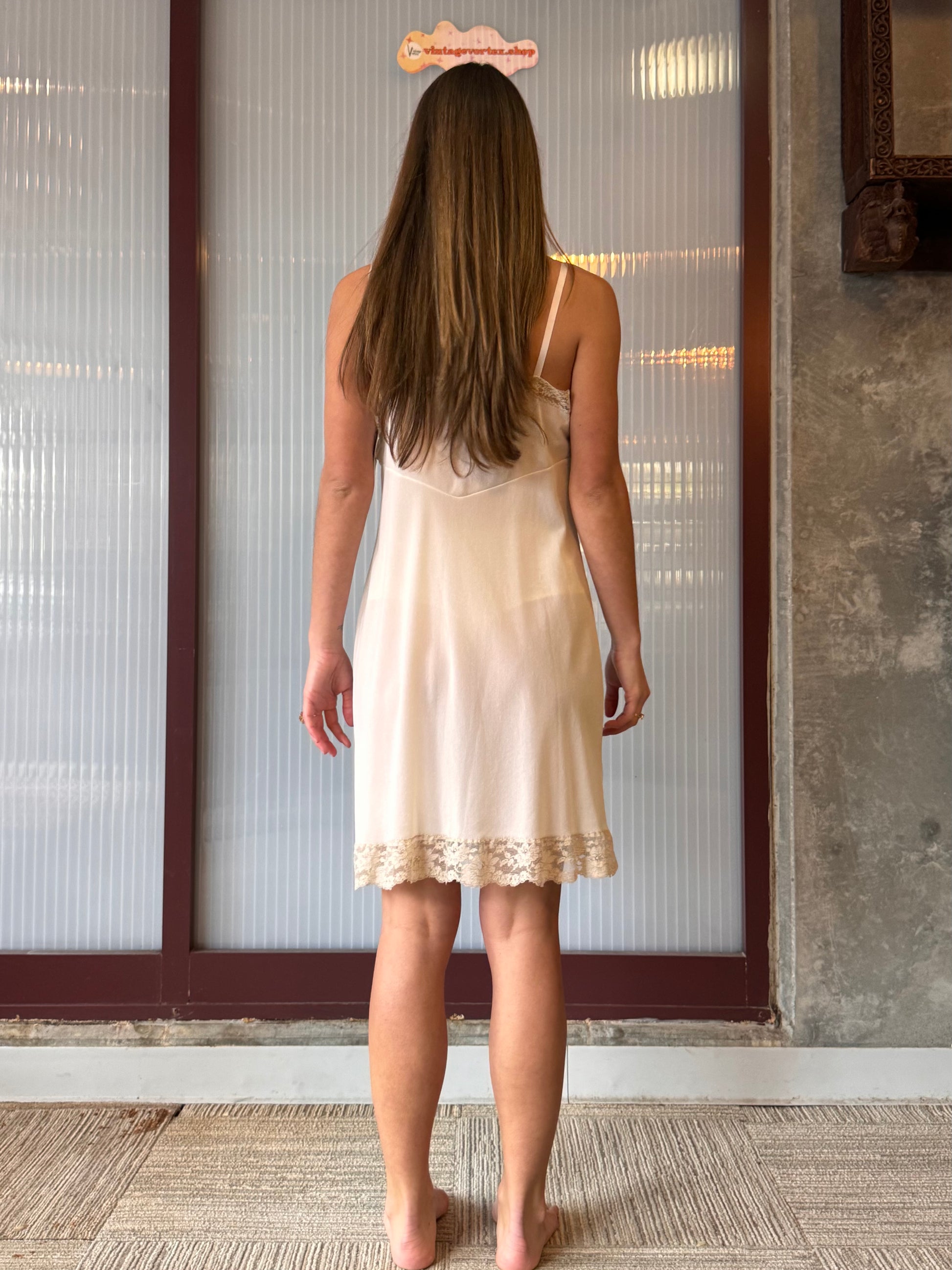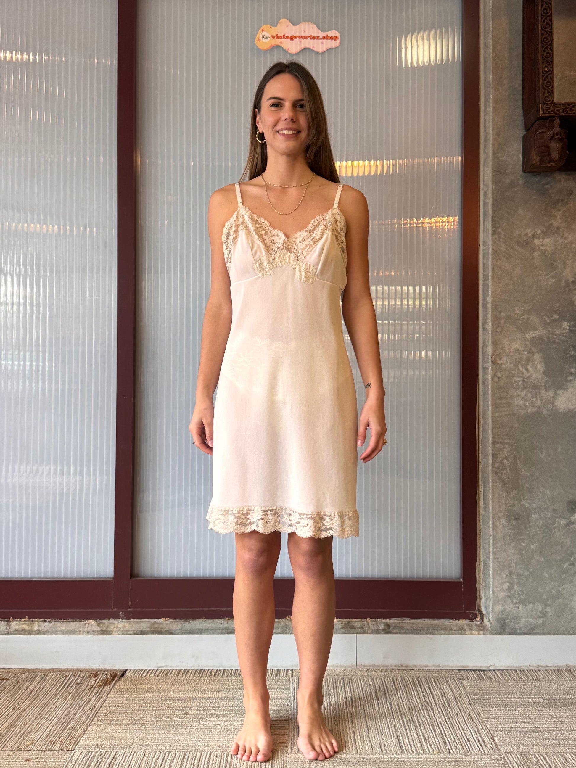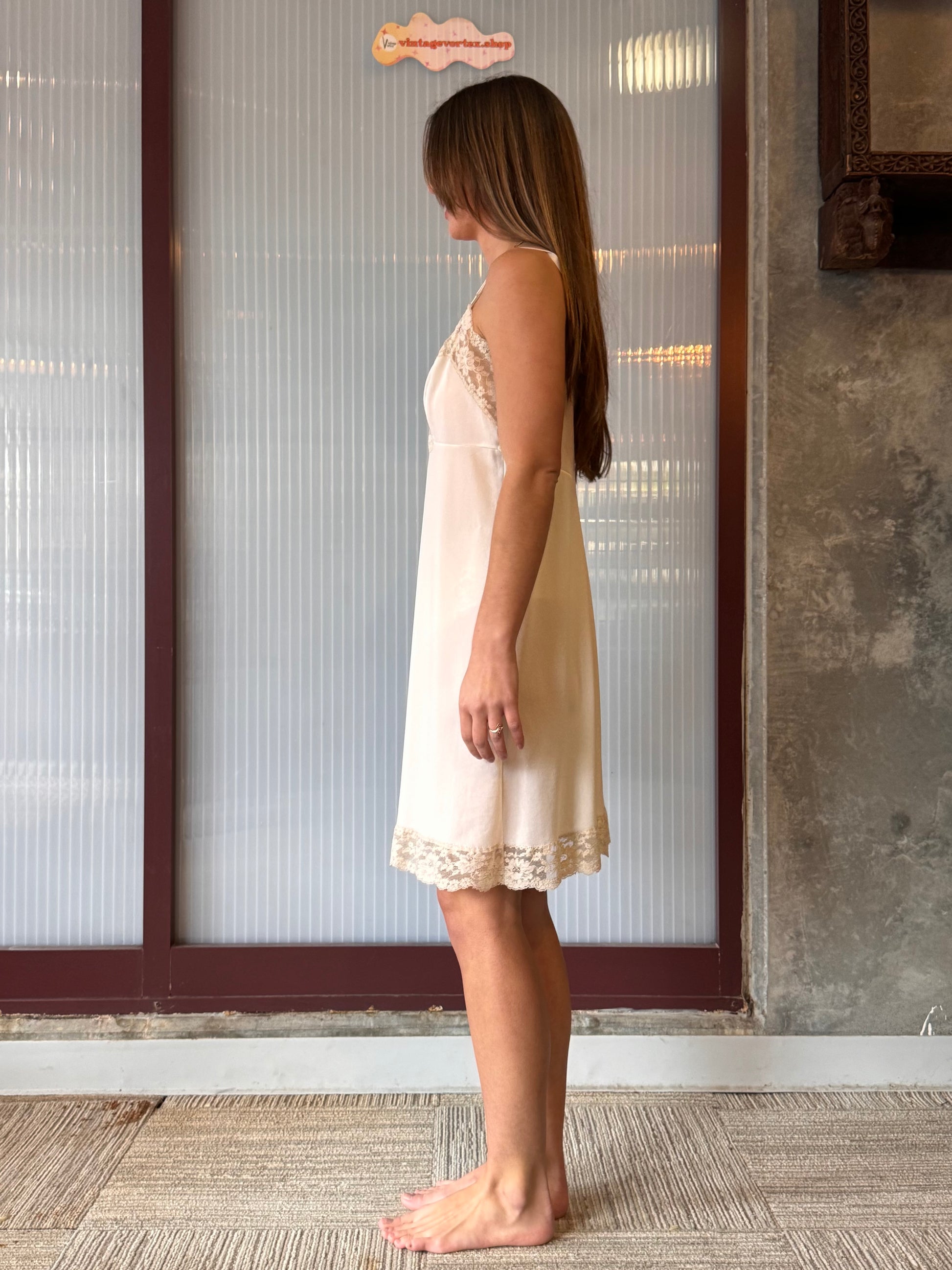 1950s Van Raalte cream slip with tan lace neckline and hem
