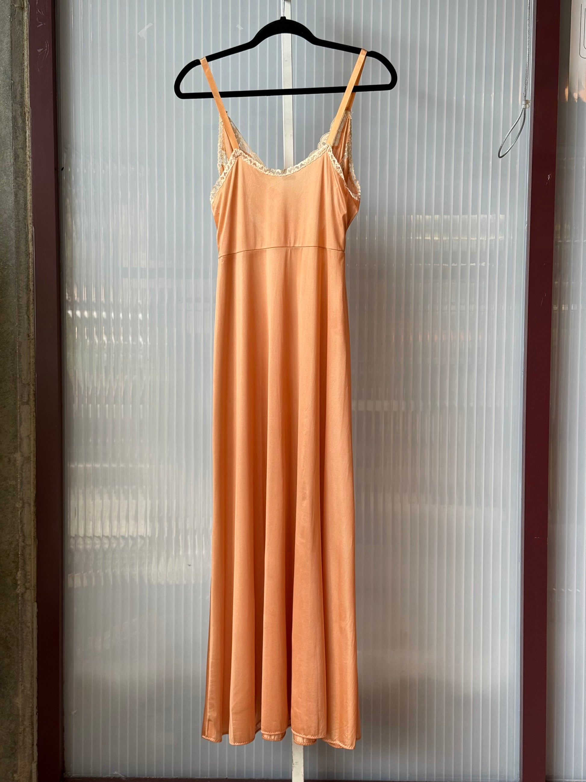 1960s Blushy Peach Long Lacy Slip Dress