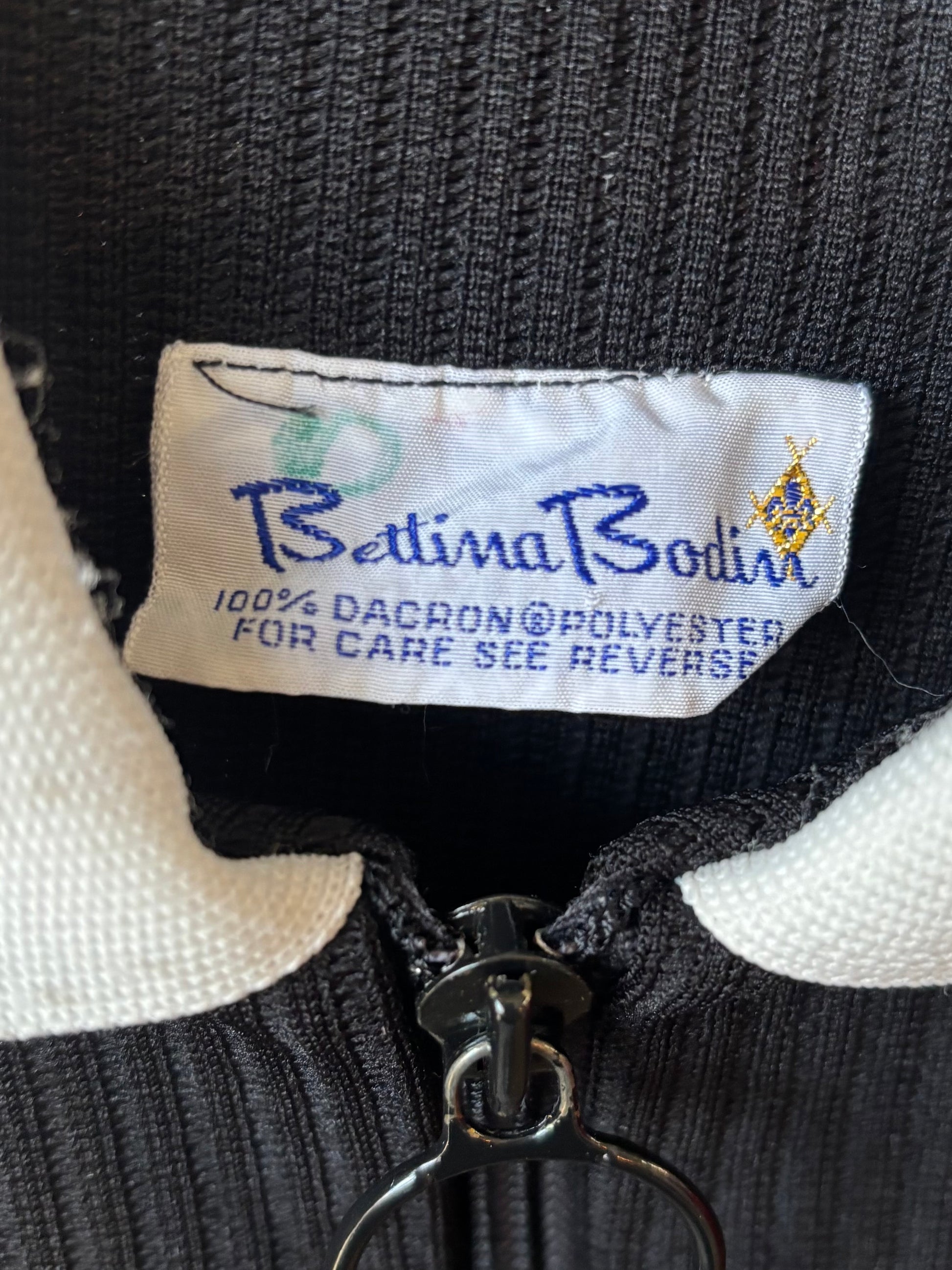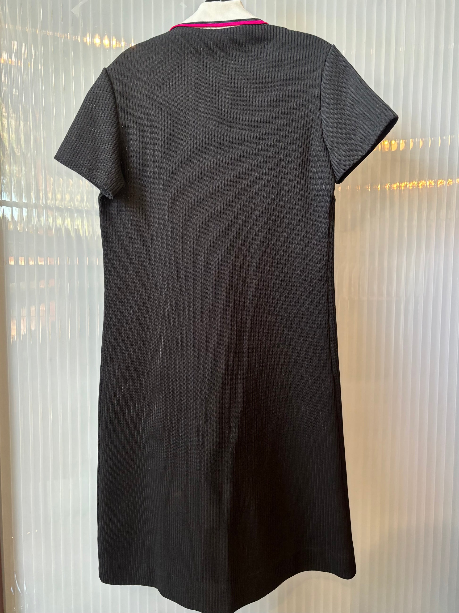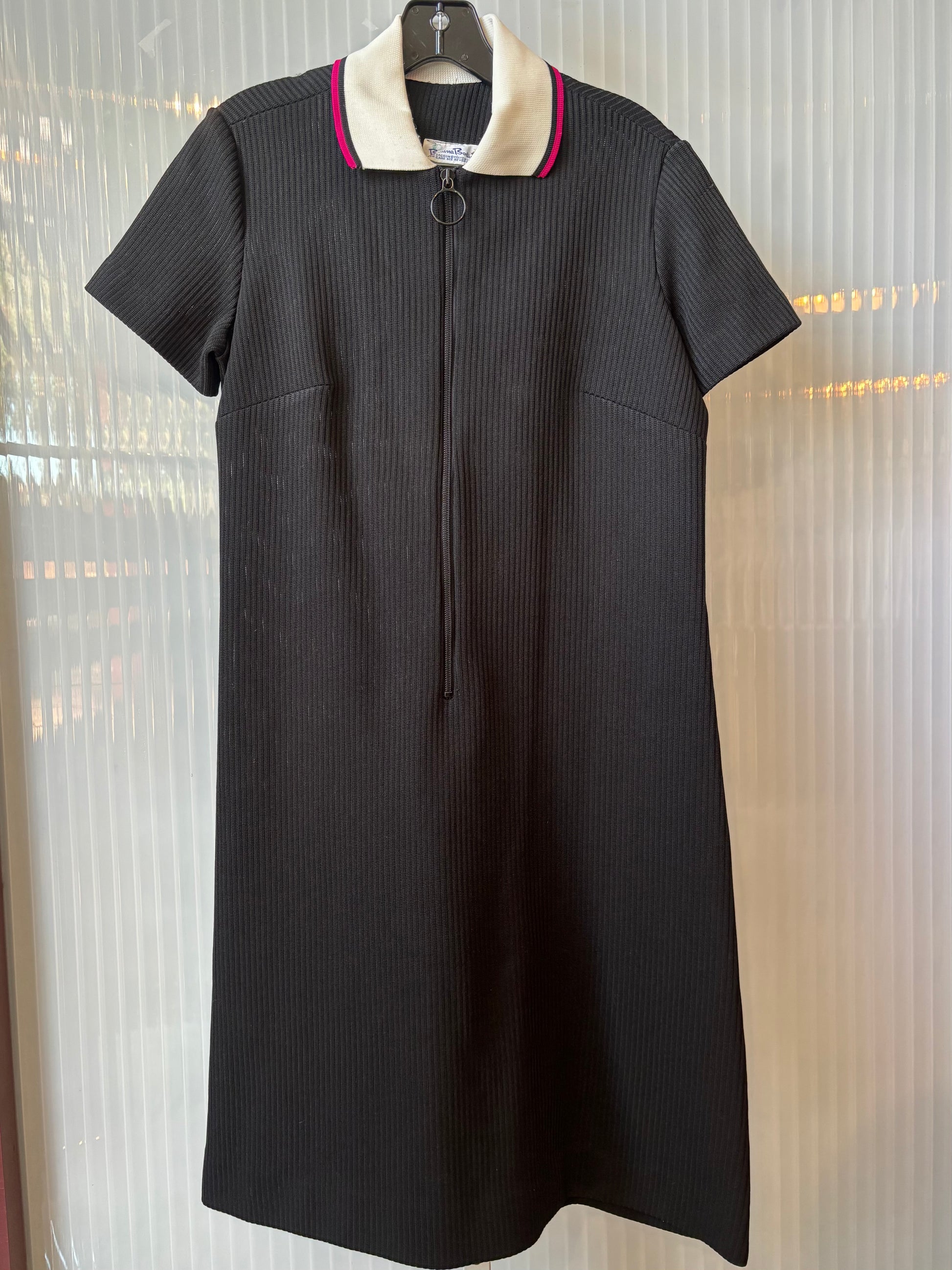 1960s Black Ribbed Zip-Up Collared Shift Dress