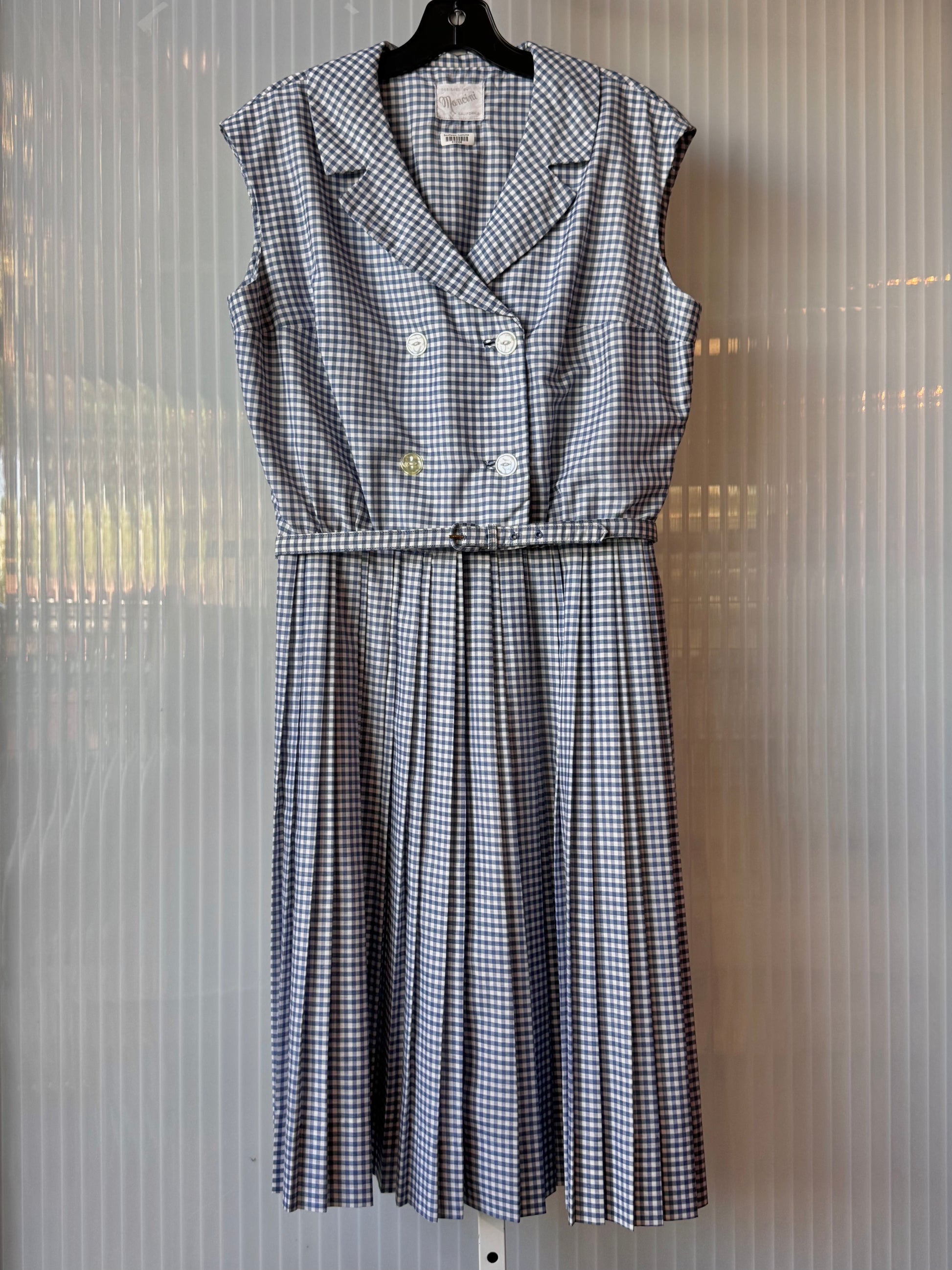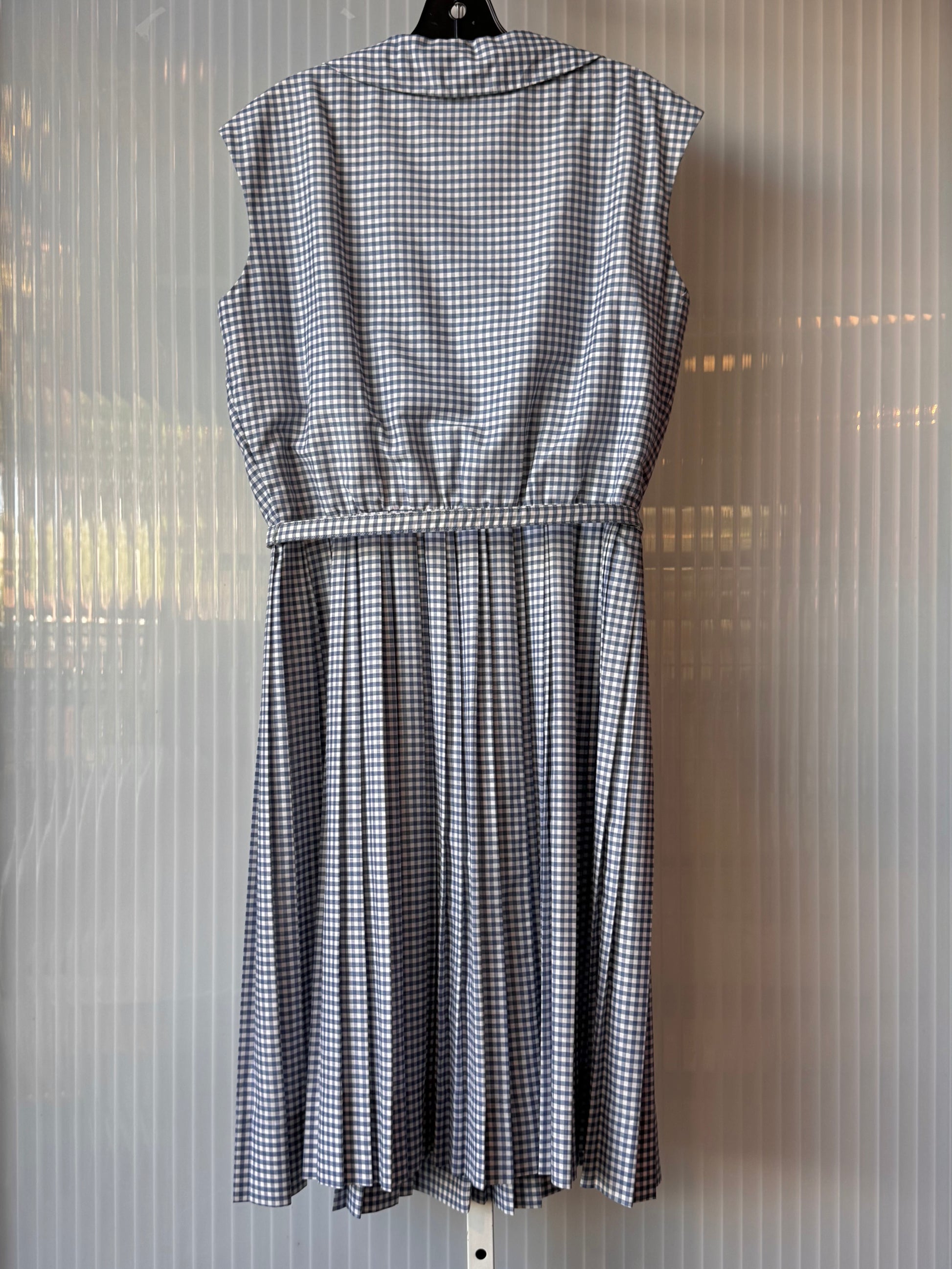 1960s Blue Gingham Sleeveless Shirtwaist Pleated Dress