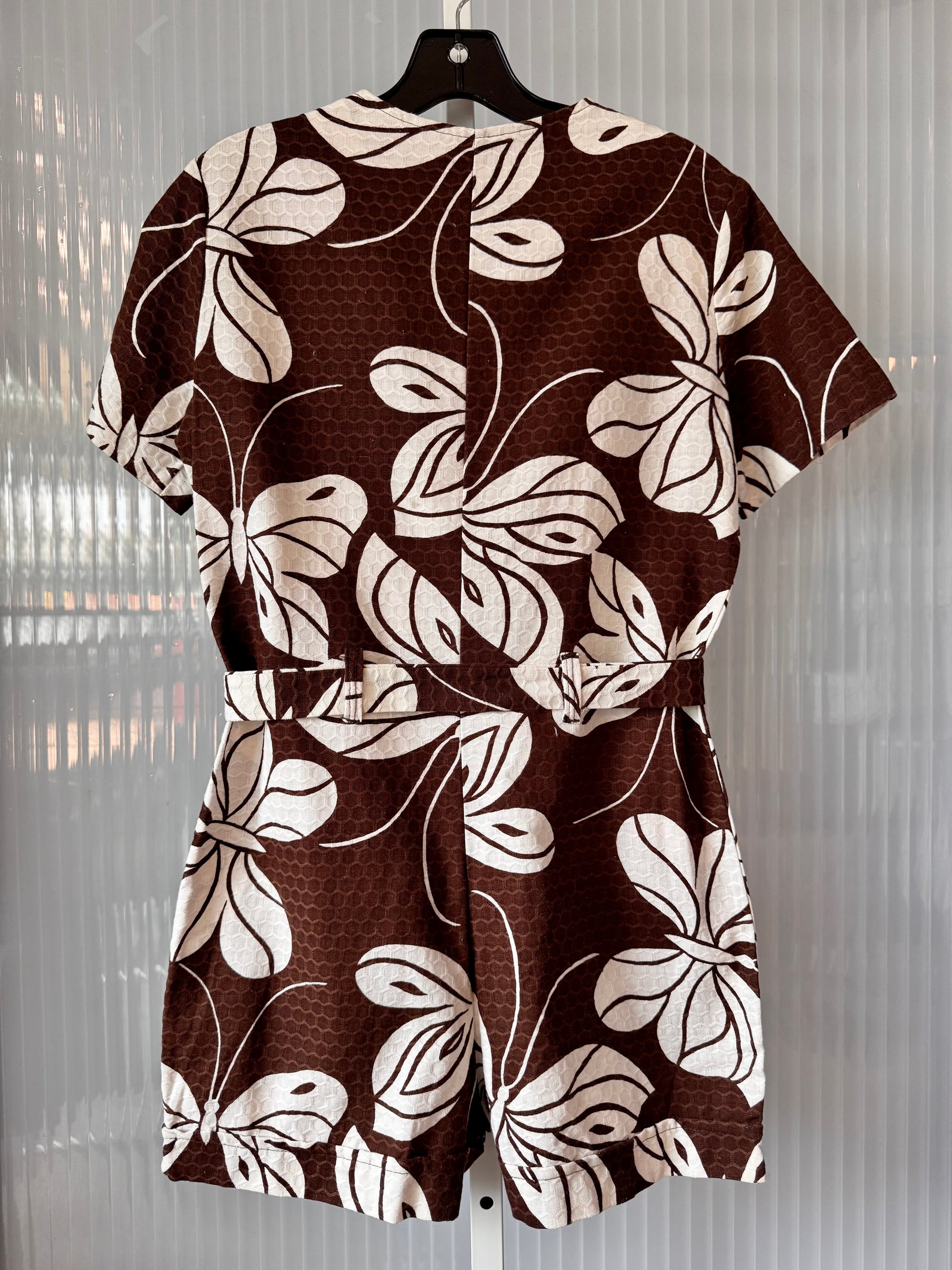 Brown and white Romper with Hawaiian butterfly pattern and matching belt