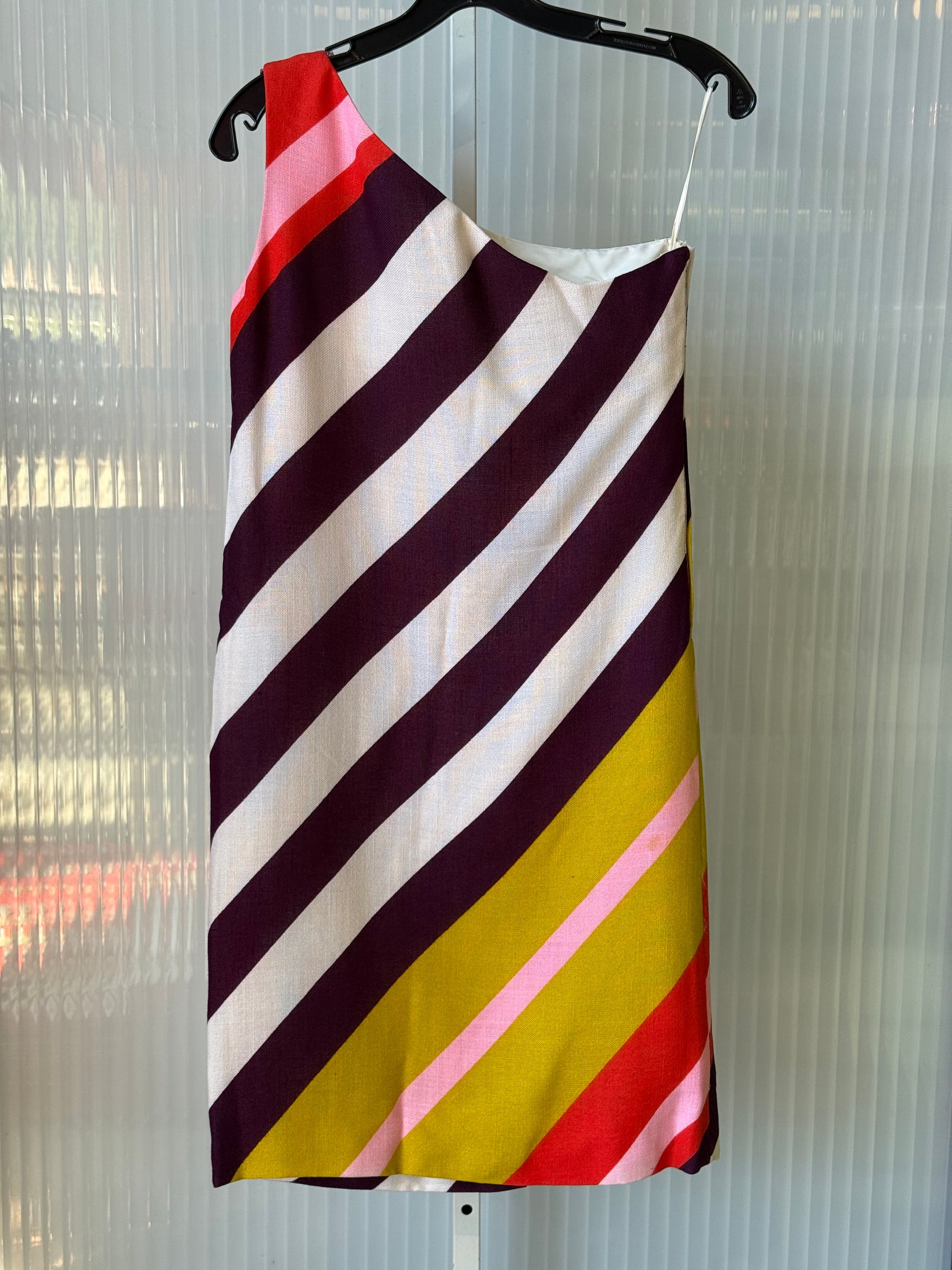 1960s Multicolor Striped One-Shoulder Dress