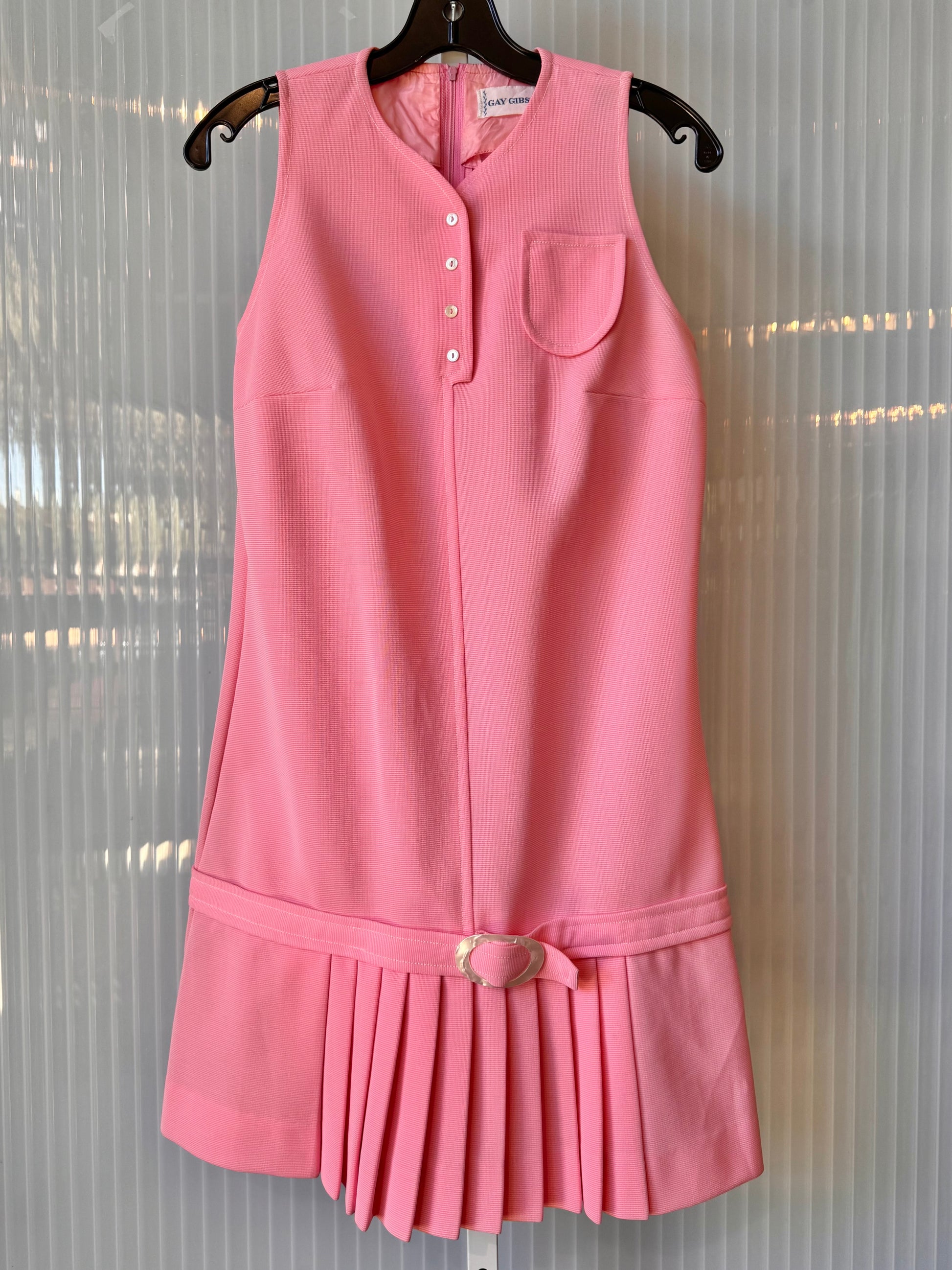 1960s Pink Sleeveless Drop-Waist Pleated Dress