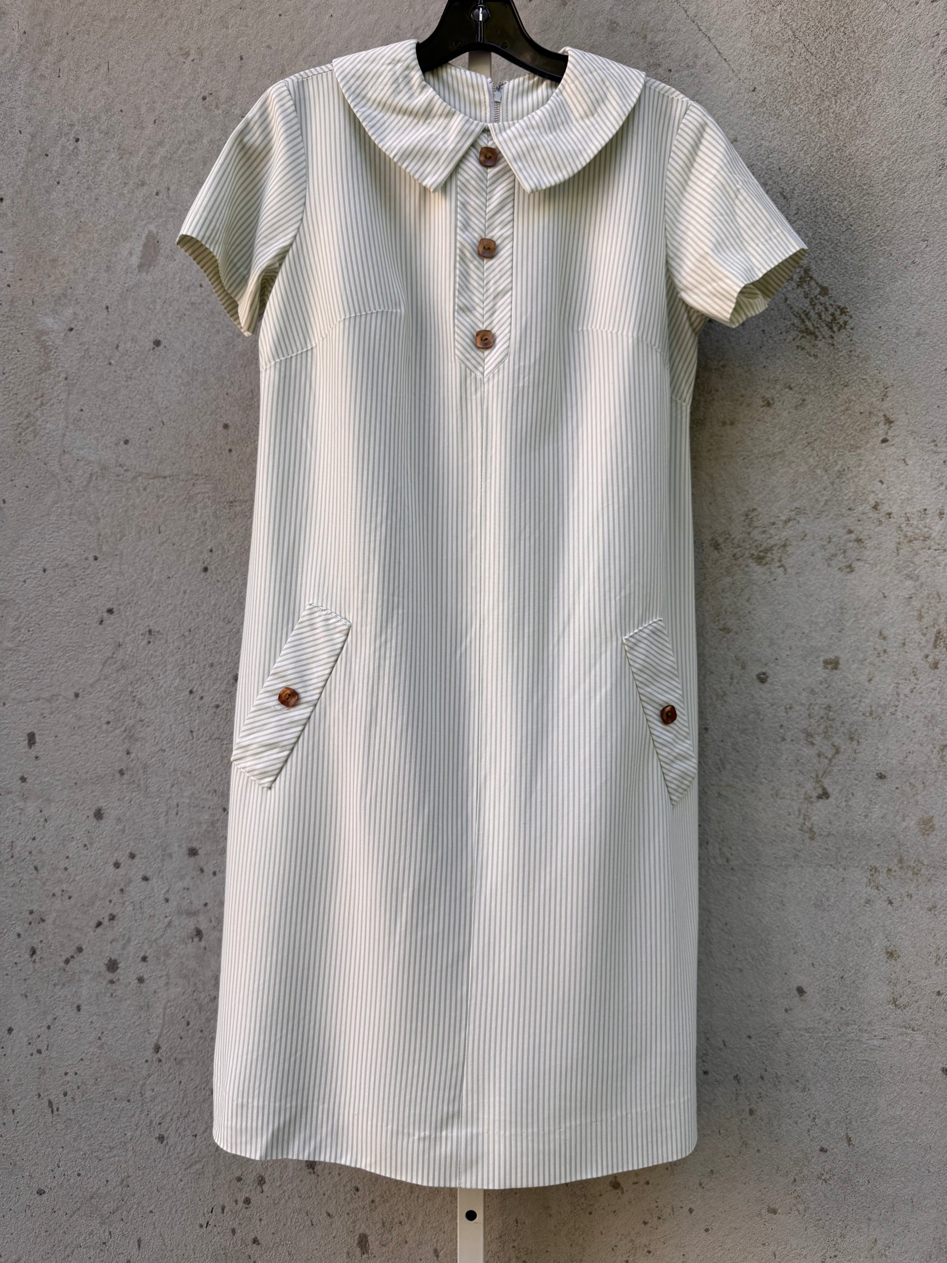 1960s White & Green Pinstripe Peter Pan Collar Dress
