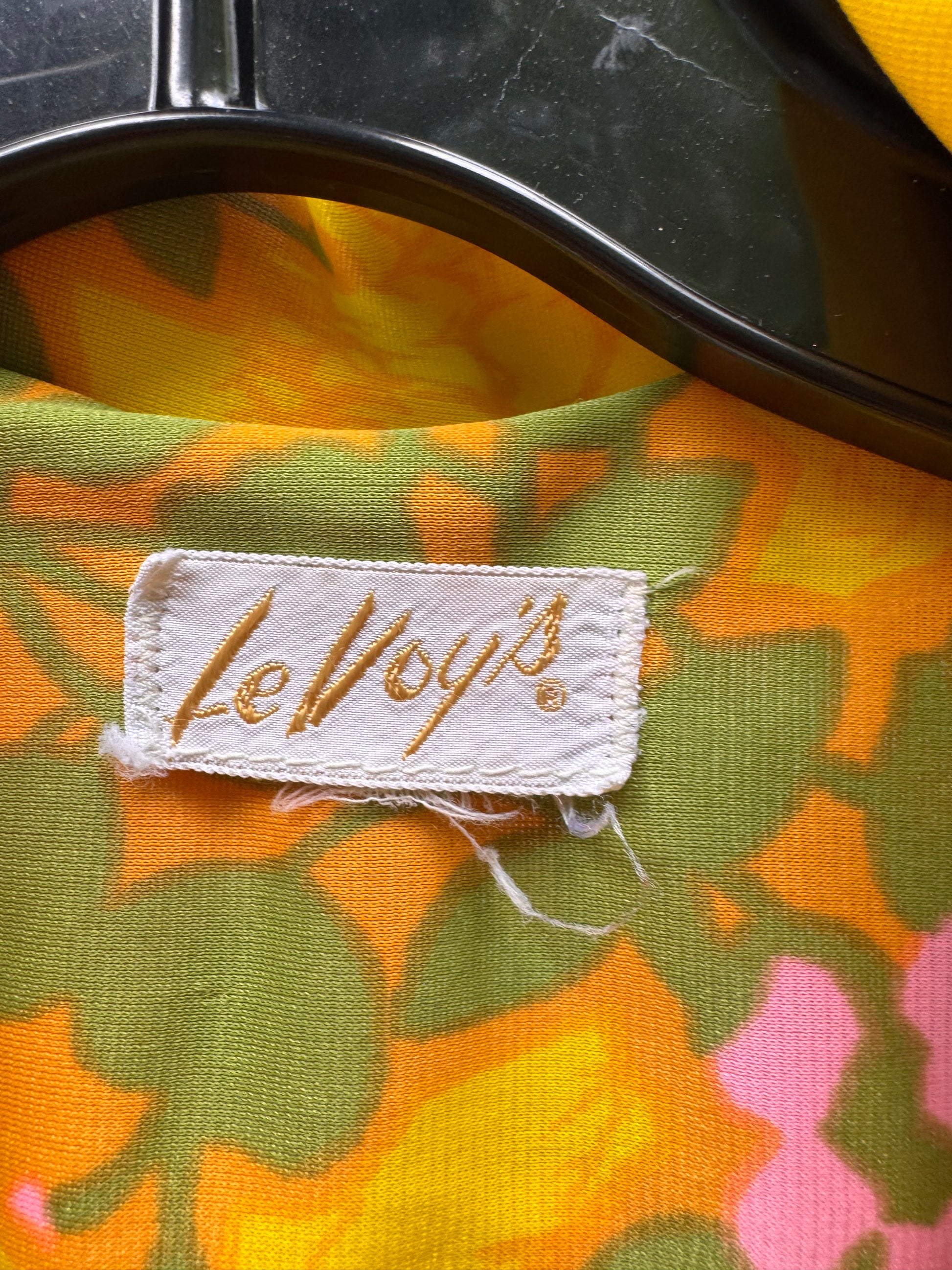 Full-Length Nightgown / Zip up Loungewear with vibrant yellow and pastel patterning