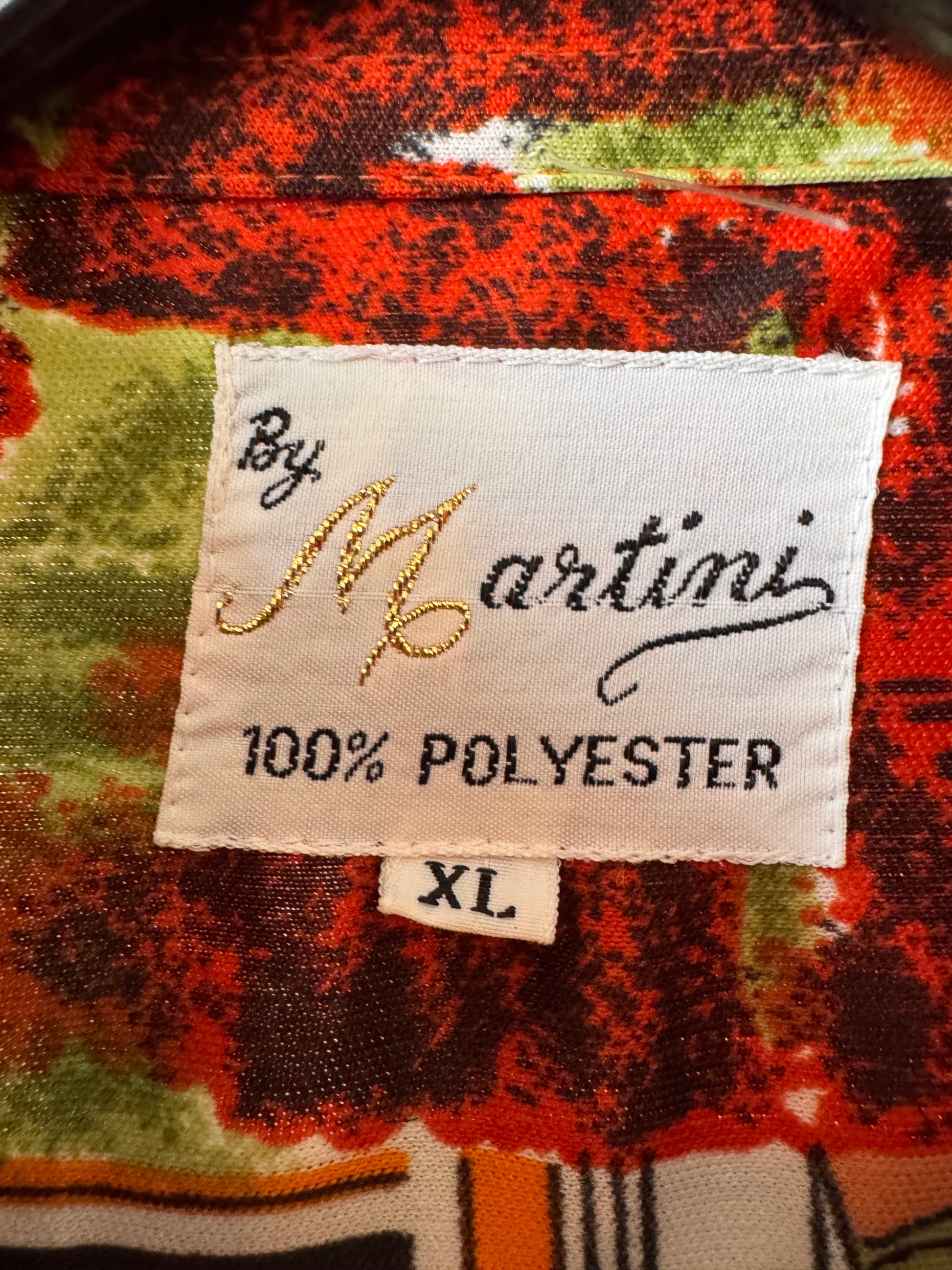 1970s Architectural Green & Orange Point Collar Shirt