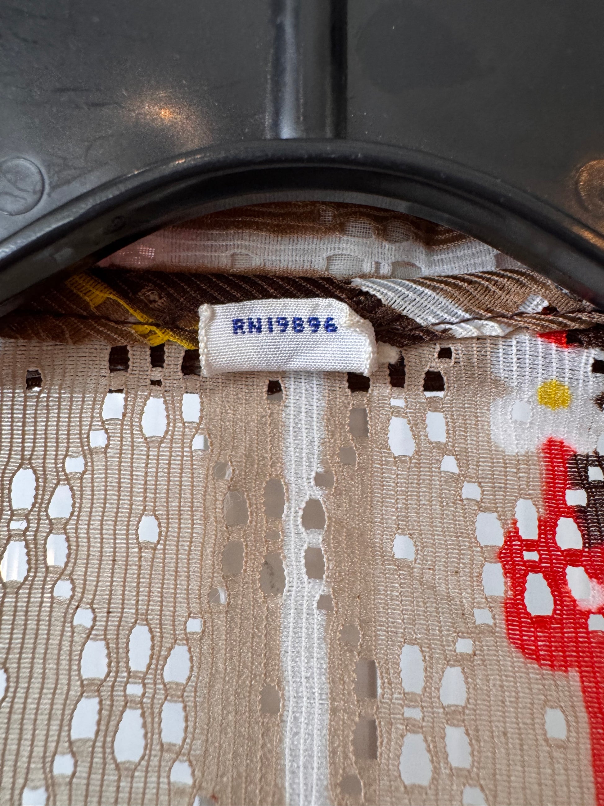 1970s Brown, beige, and orange zip up shirt / jacket in an eyelet lace like fabric