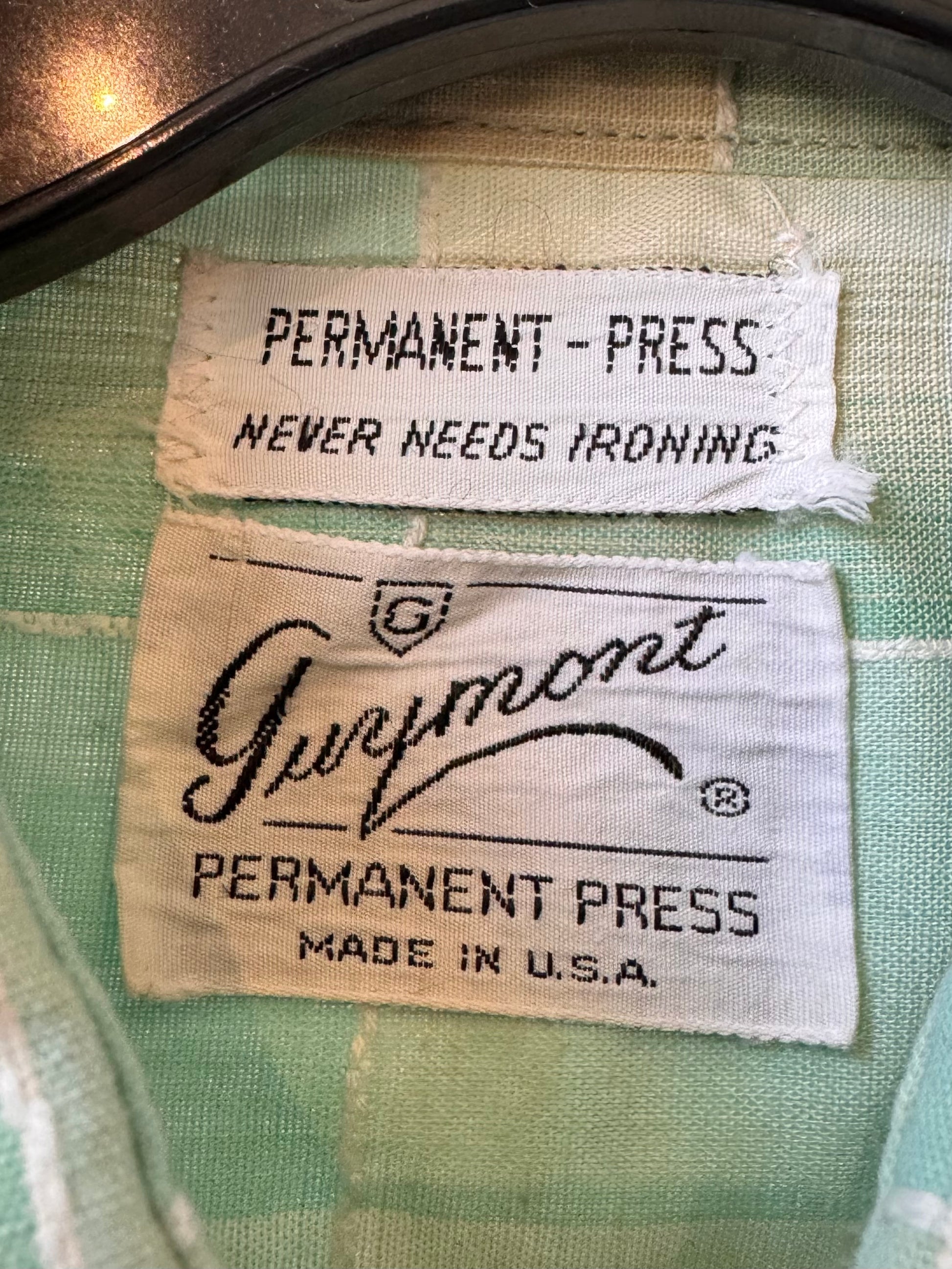 1970s Mint Green Plaid Short Sleeve women's Pearl Snap button Western-Style Blouse