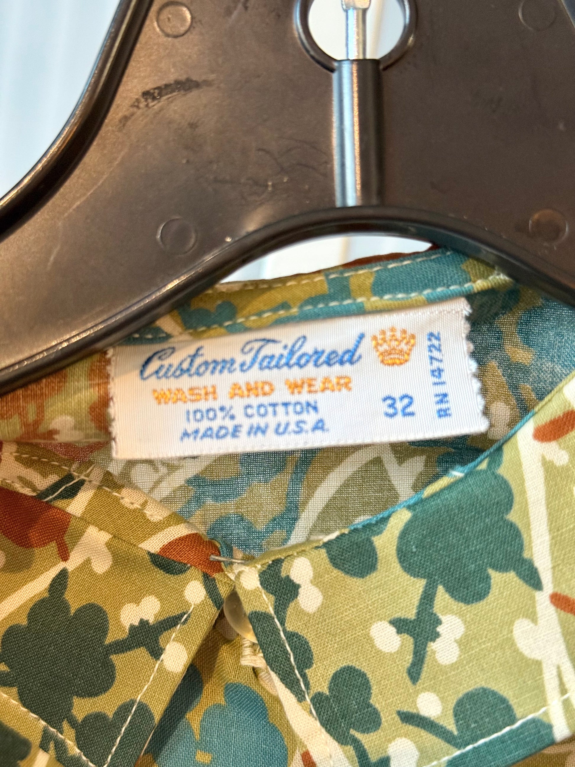 100% Cotton Green, Blue, Brown & White Paisley Floral Abstract Collared Blouse