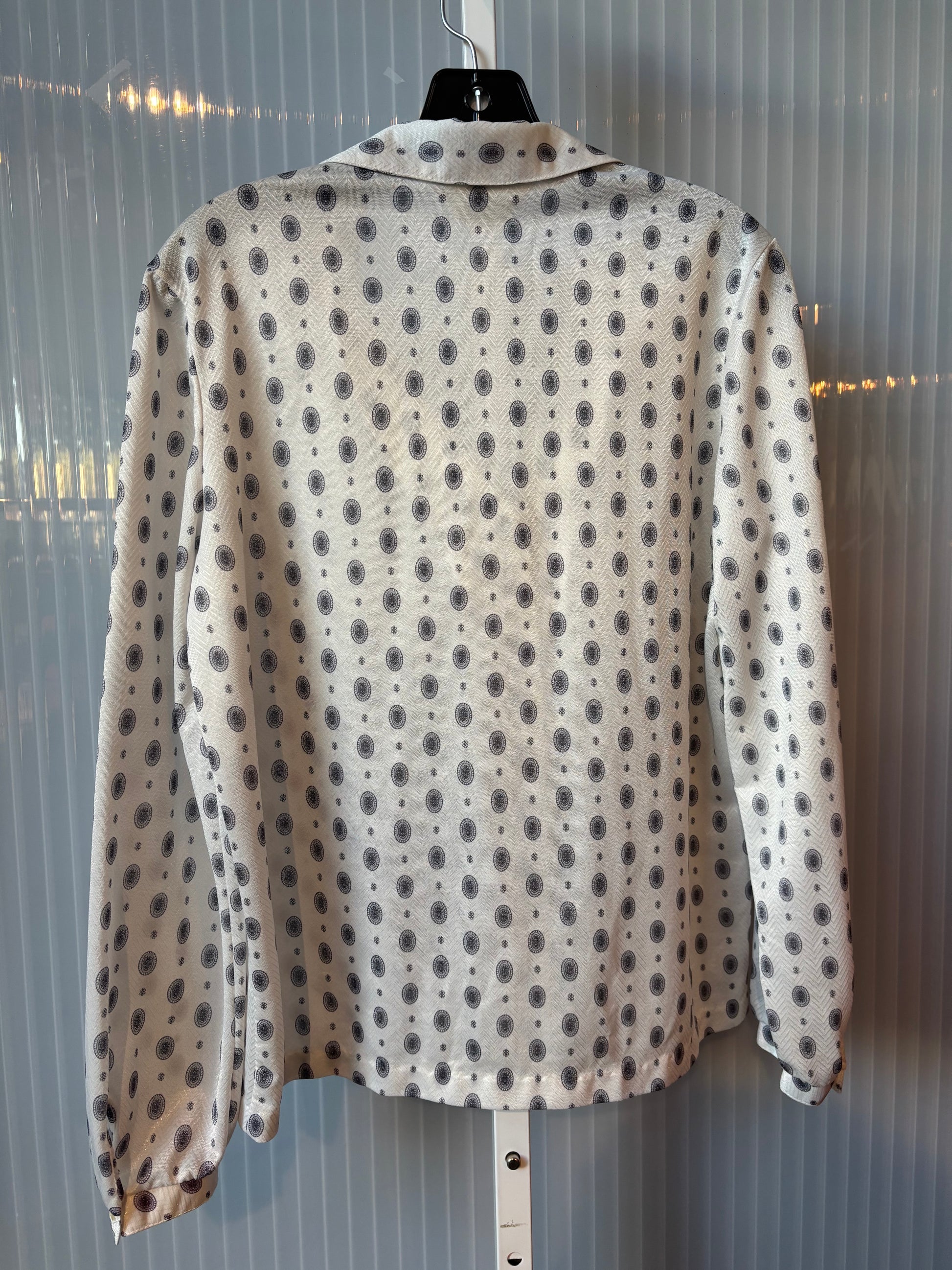 1970s White Long Sleeve Blouse With Black Floral Pattern