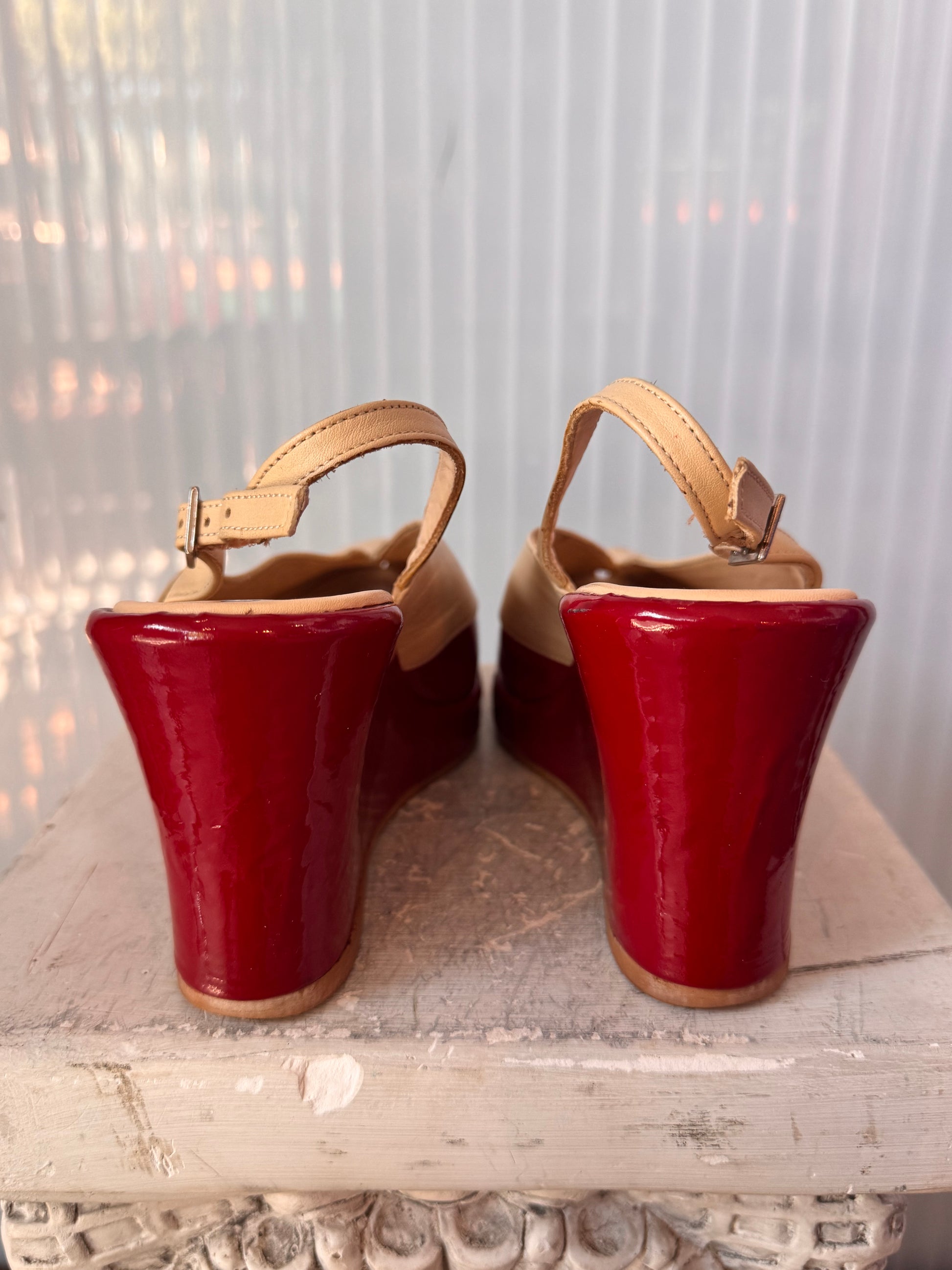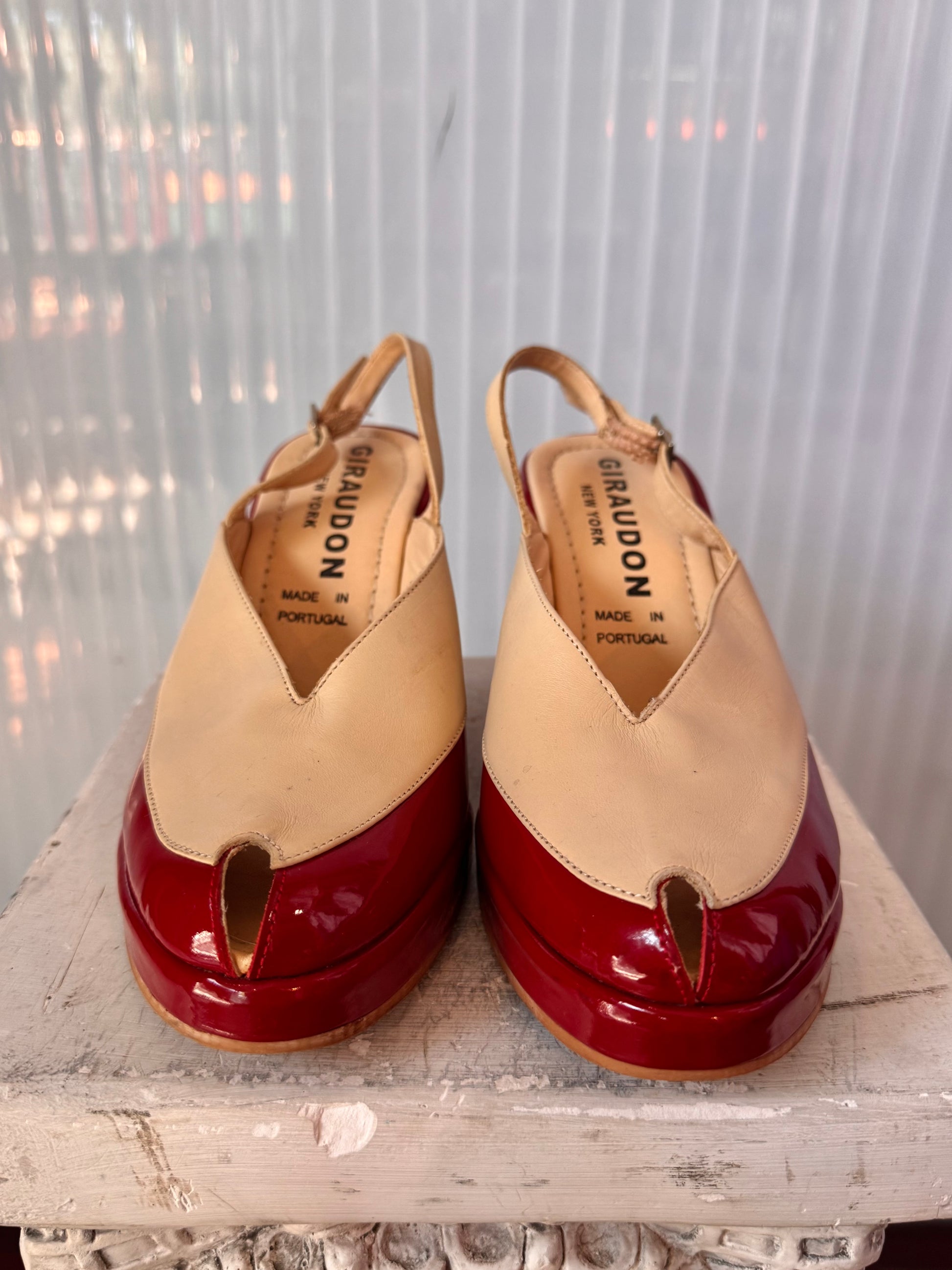 1980s does 40s Giraudon NY Red & Cream Slingback Peeptoe Heels