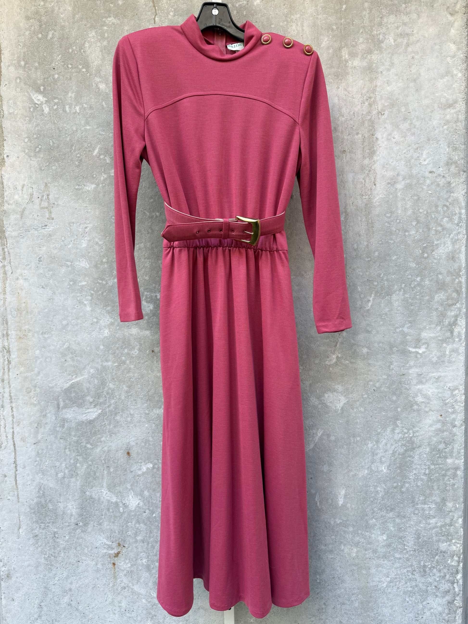 1980s Mauve Dress with Elastic Waist & Buttons Set
