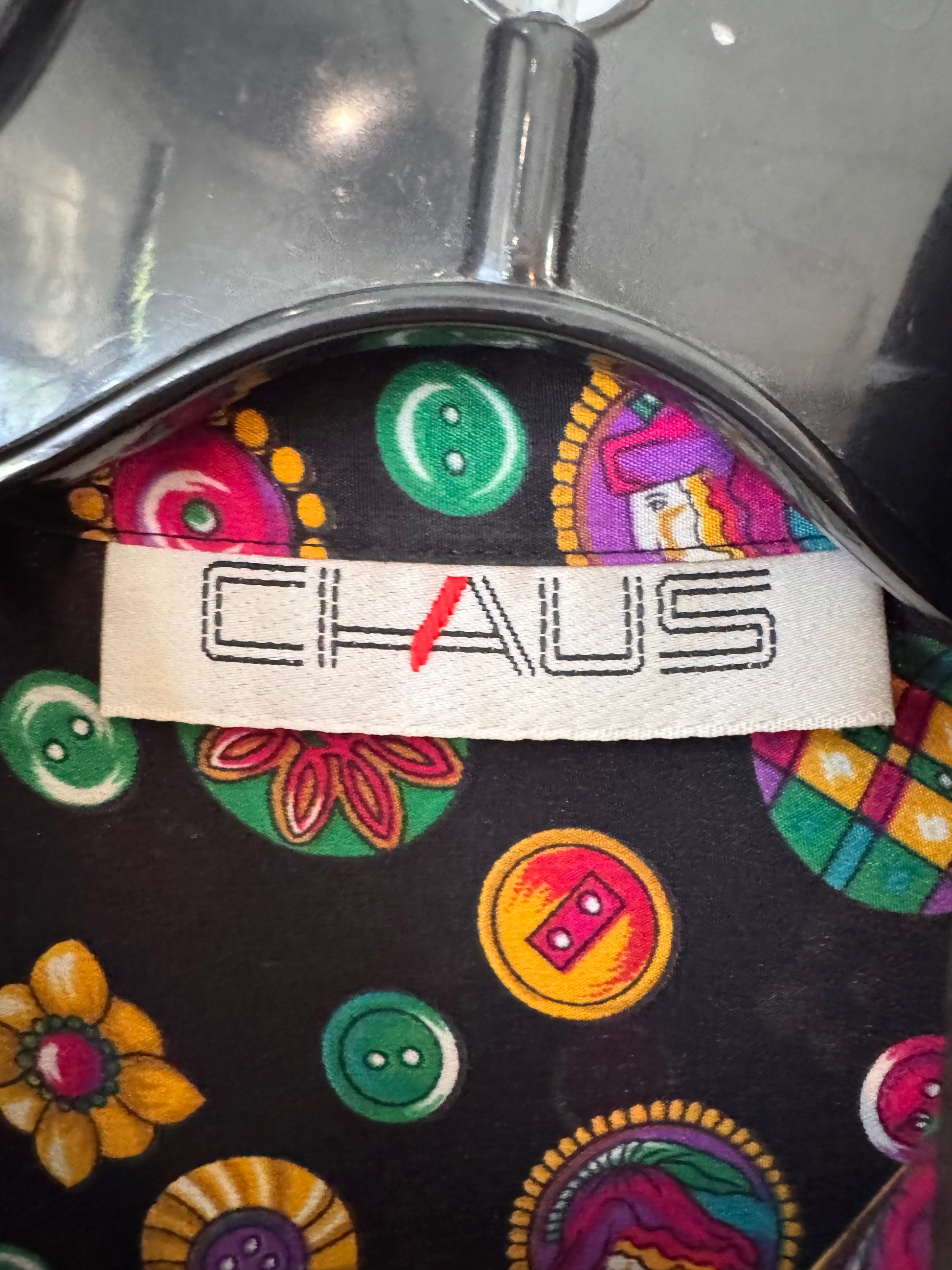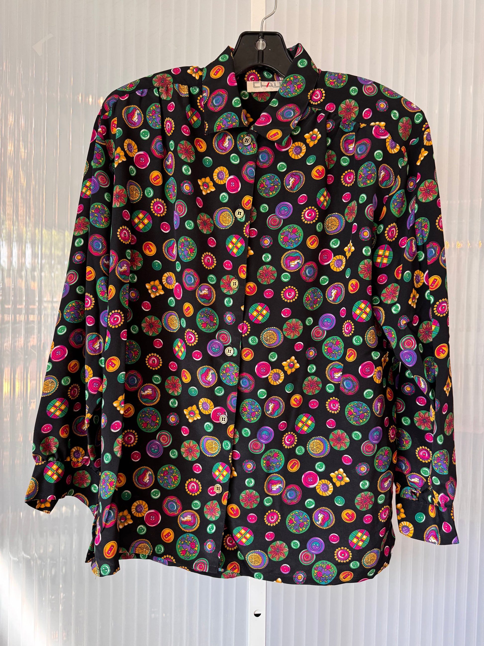 1980s Black & Multicolor Button Pattern Blouse