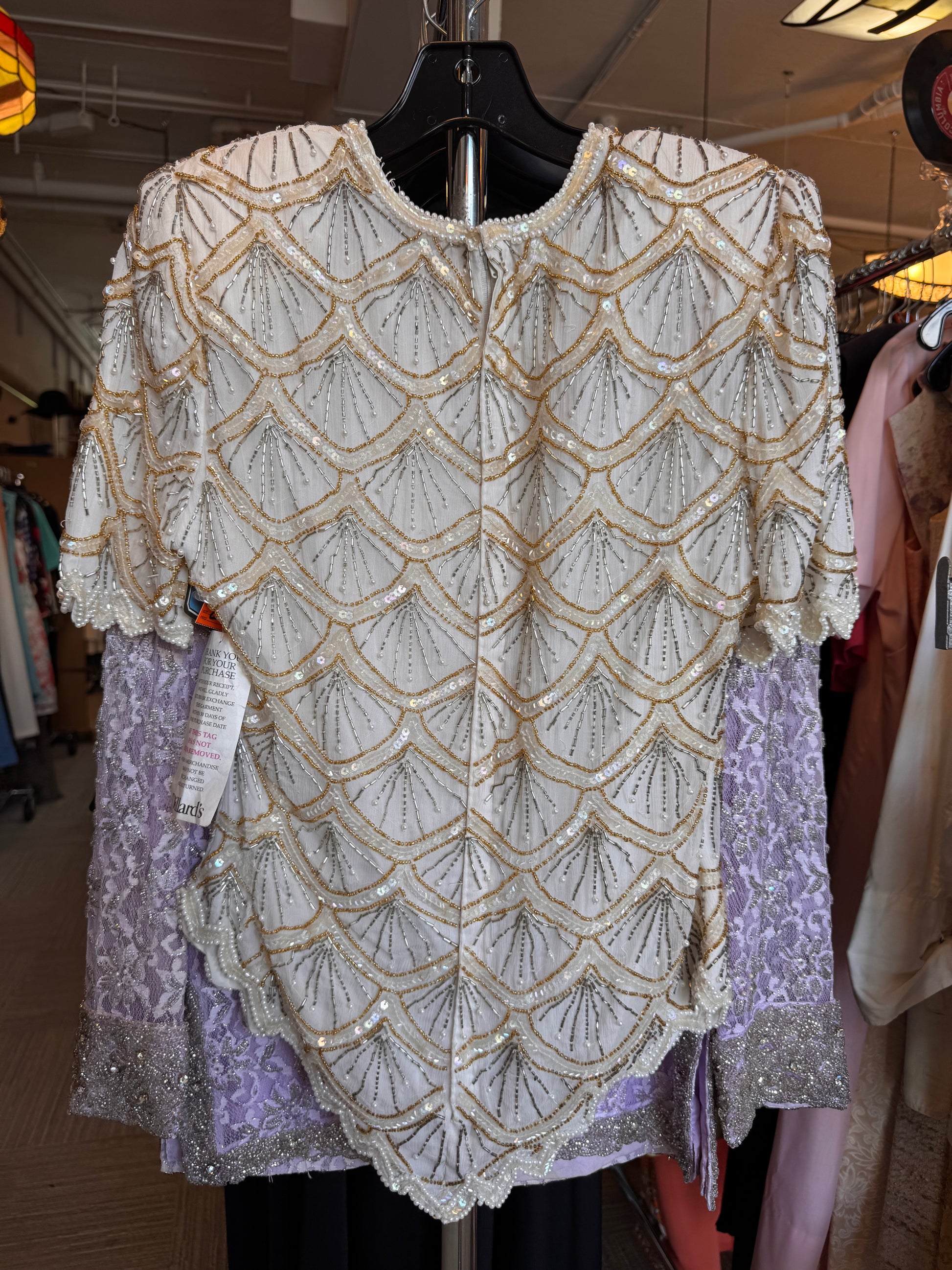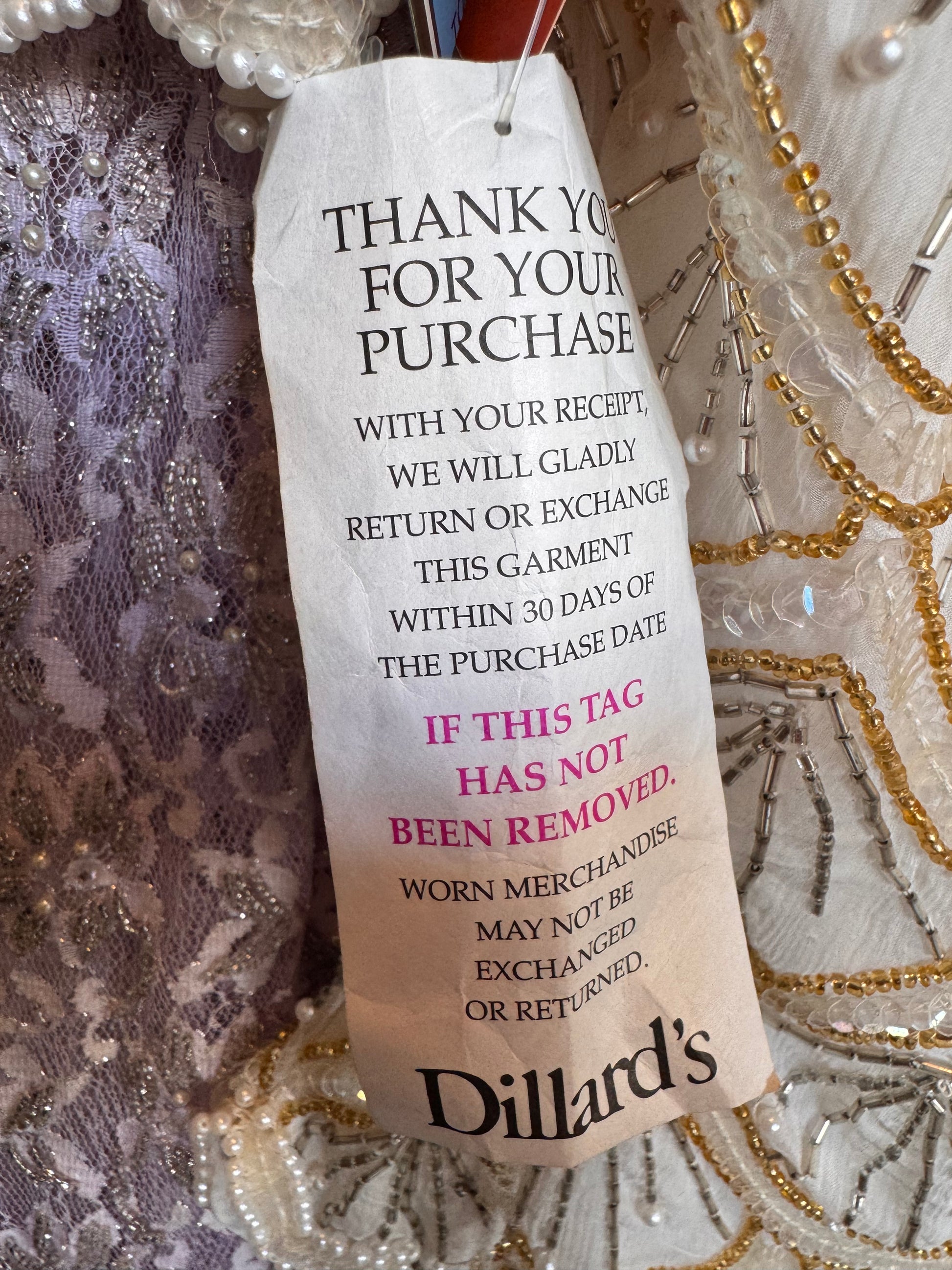 Our $20 Sequin Sale items should be assumed as is. They may include but are not limited to: missing sequins/beads, staining, missing notions. Not all items are as-is. Please carefully examine images before purchasing to determine if the garment is right for you.
