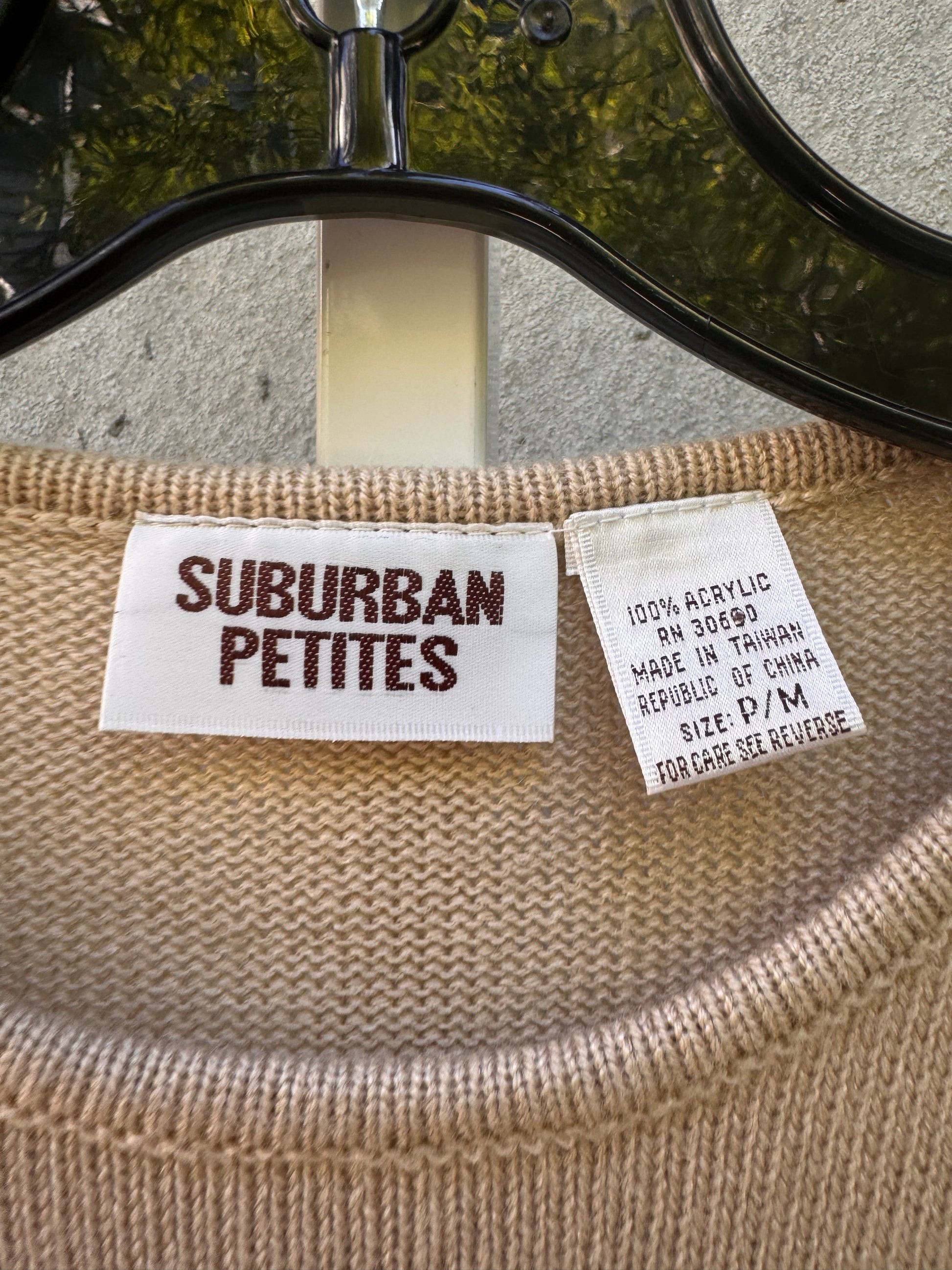 1980s Tan Knit Sweater Top with Embroidered Flowers