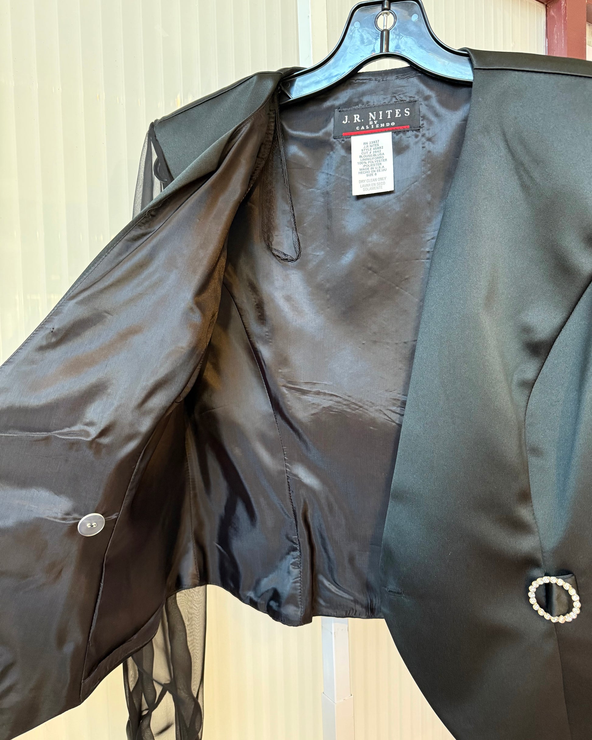 1990s Black Top w/ Sheer Sleeves & Sparkling Loop Closure