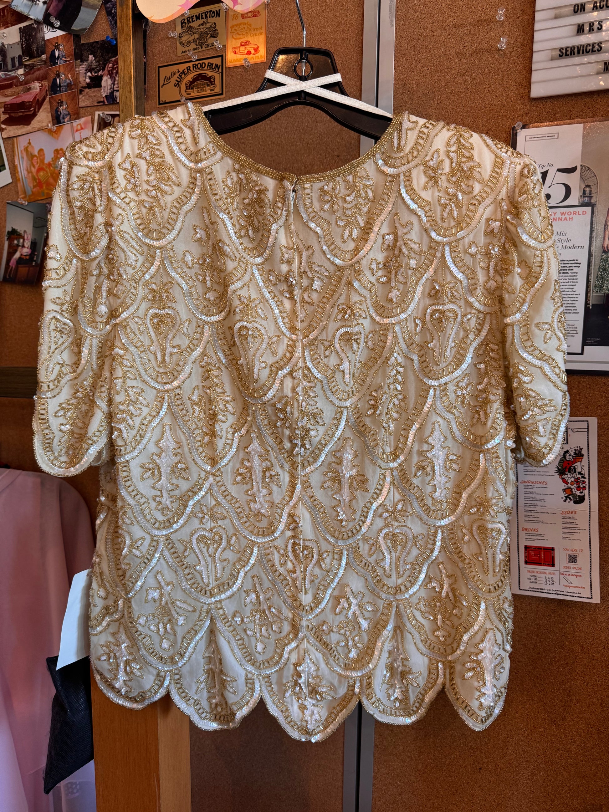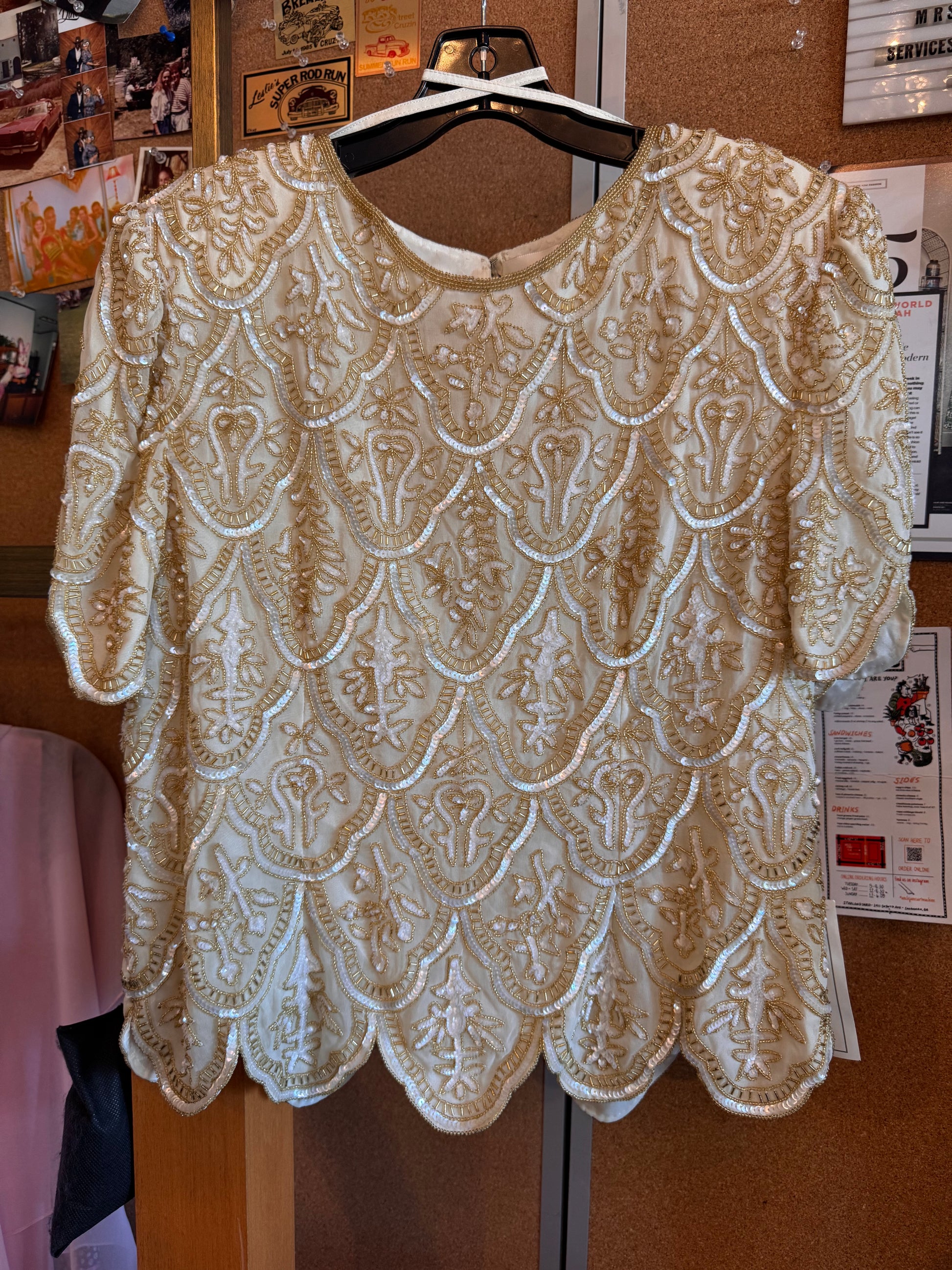 1990s Gold & White Beaded Blouse