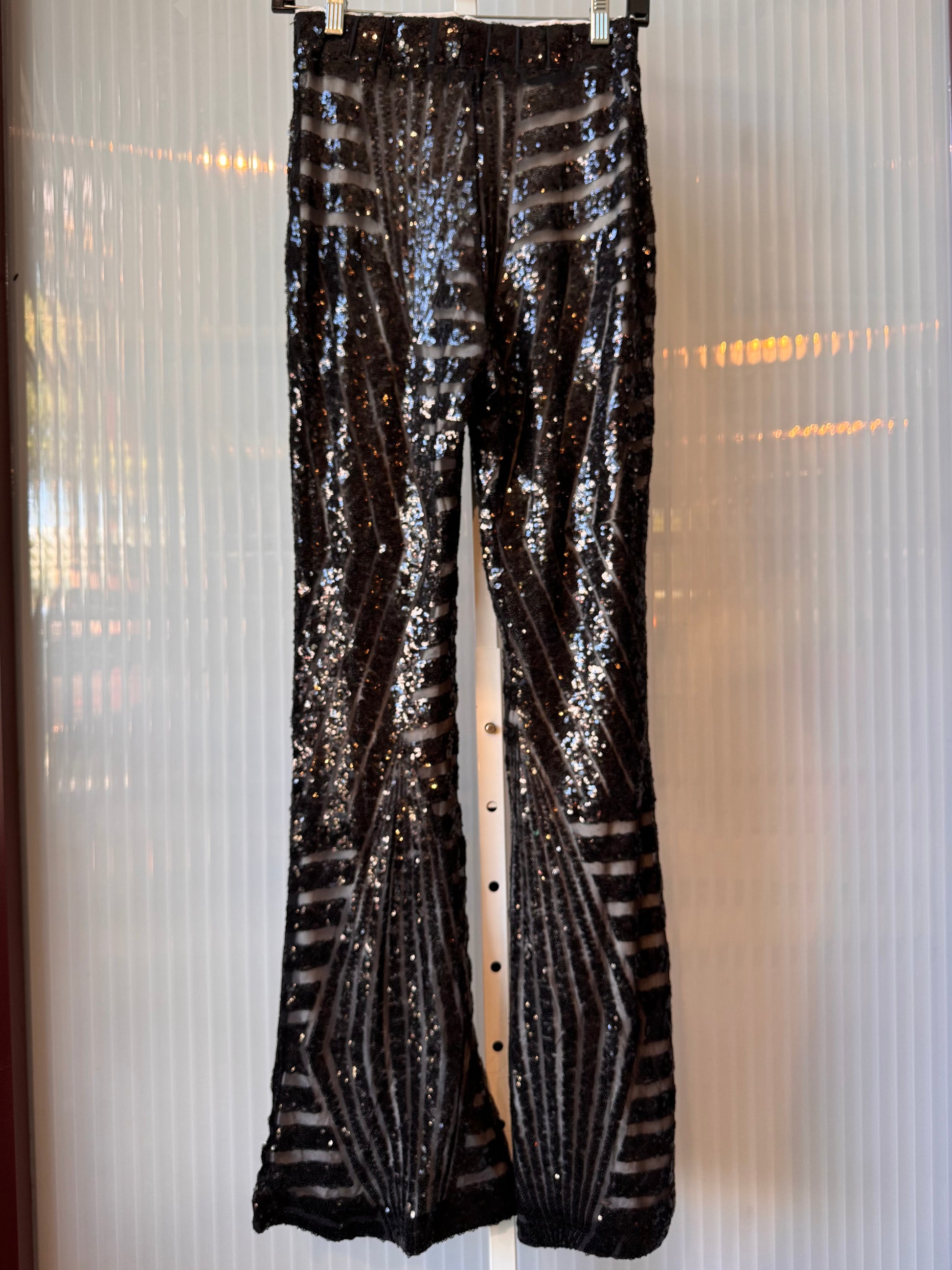 2000s Black Sequin Bellbottom Pants