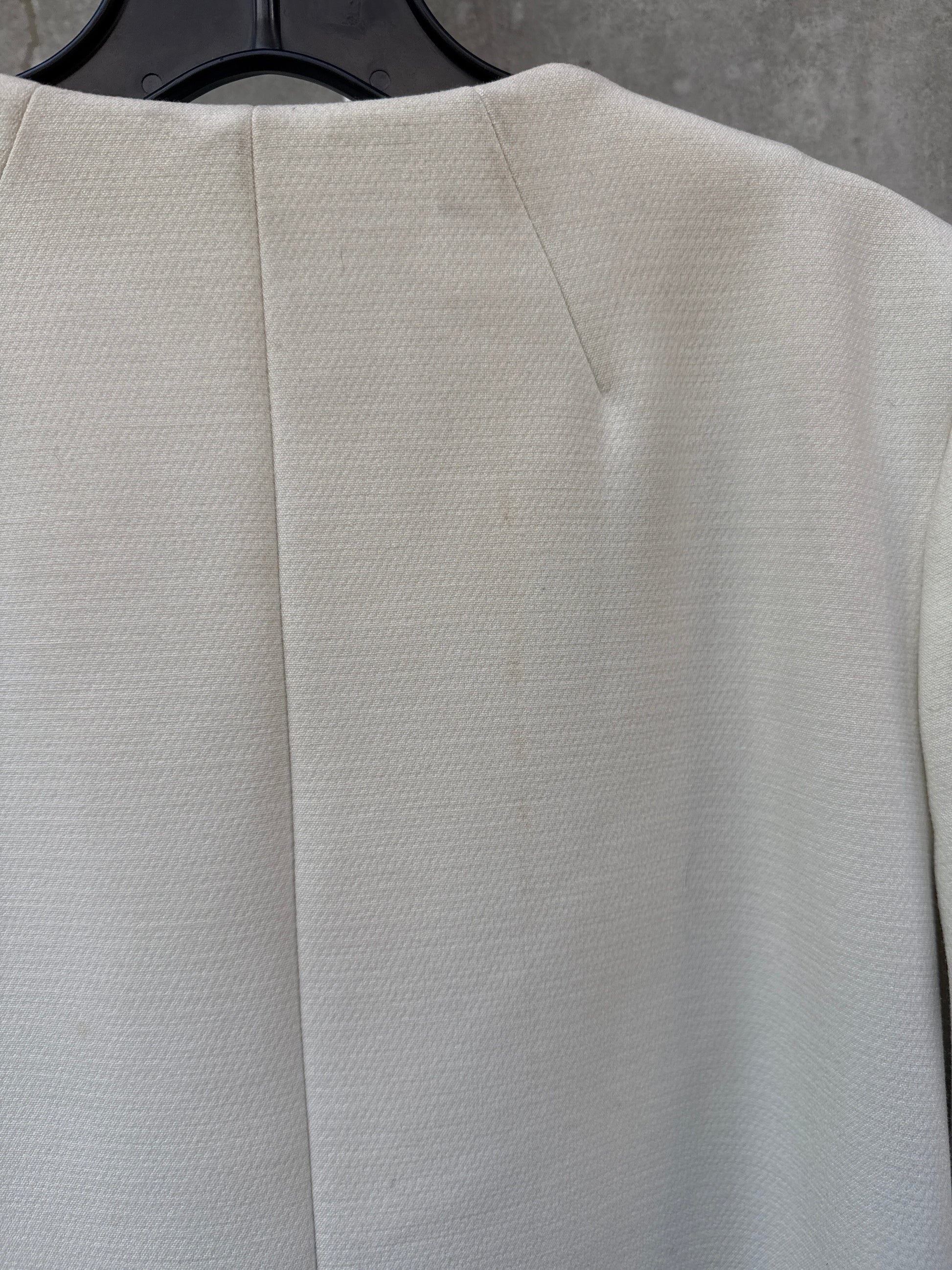 2000s Zip-Up White Coat with Tweed Stripe and Ostrich Feather Trim