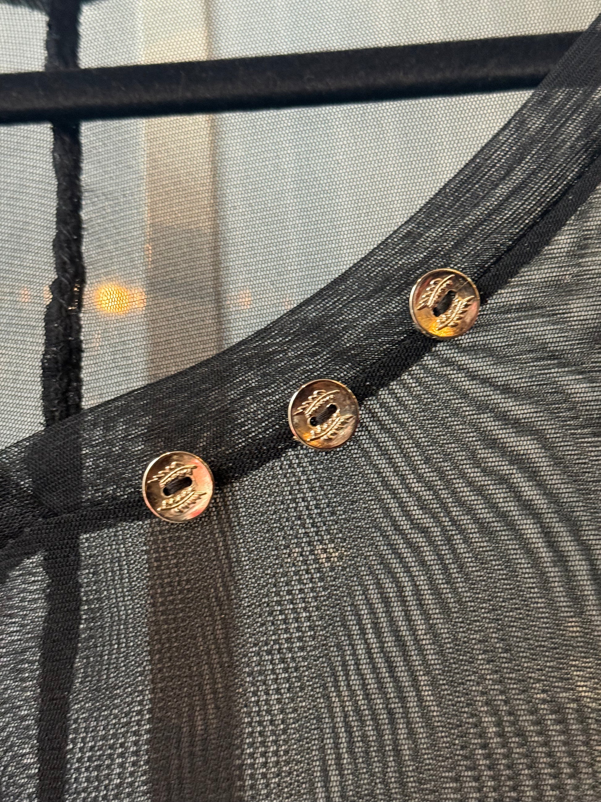 1990s Black Sheer Dress w/ Frutiger Metro Floral Print