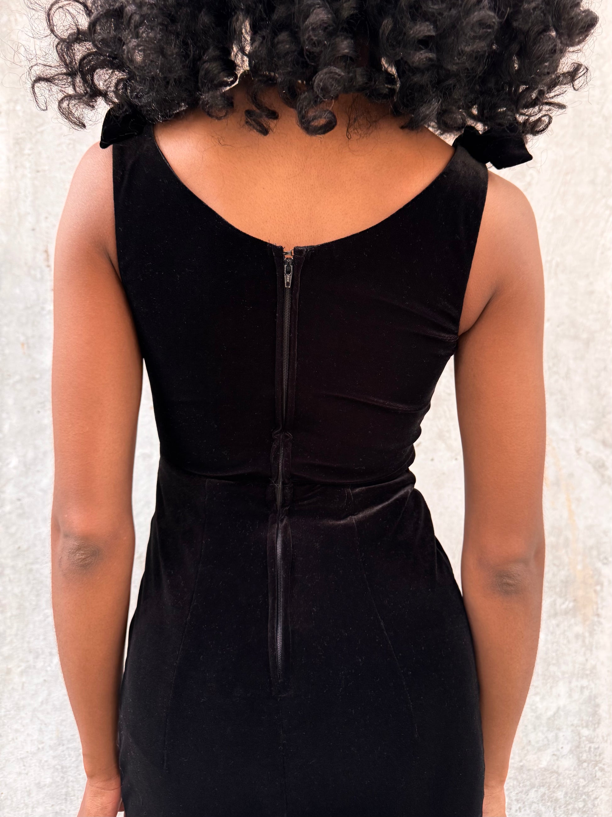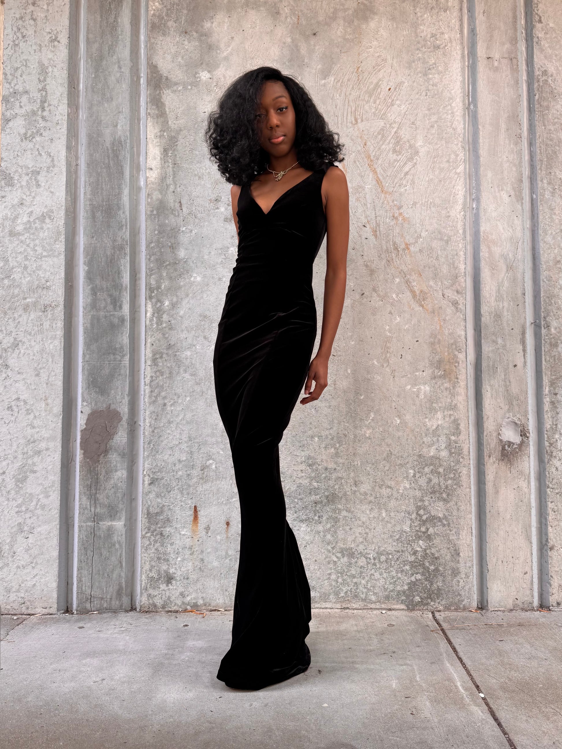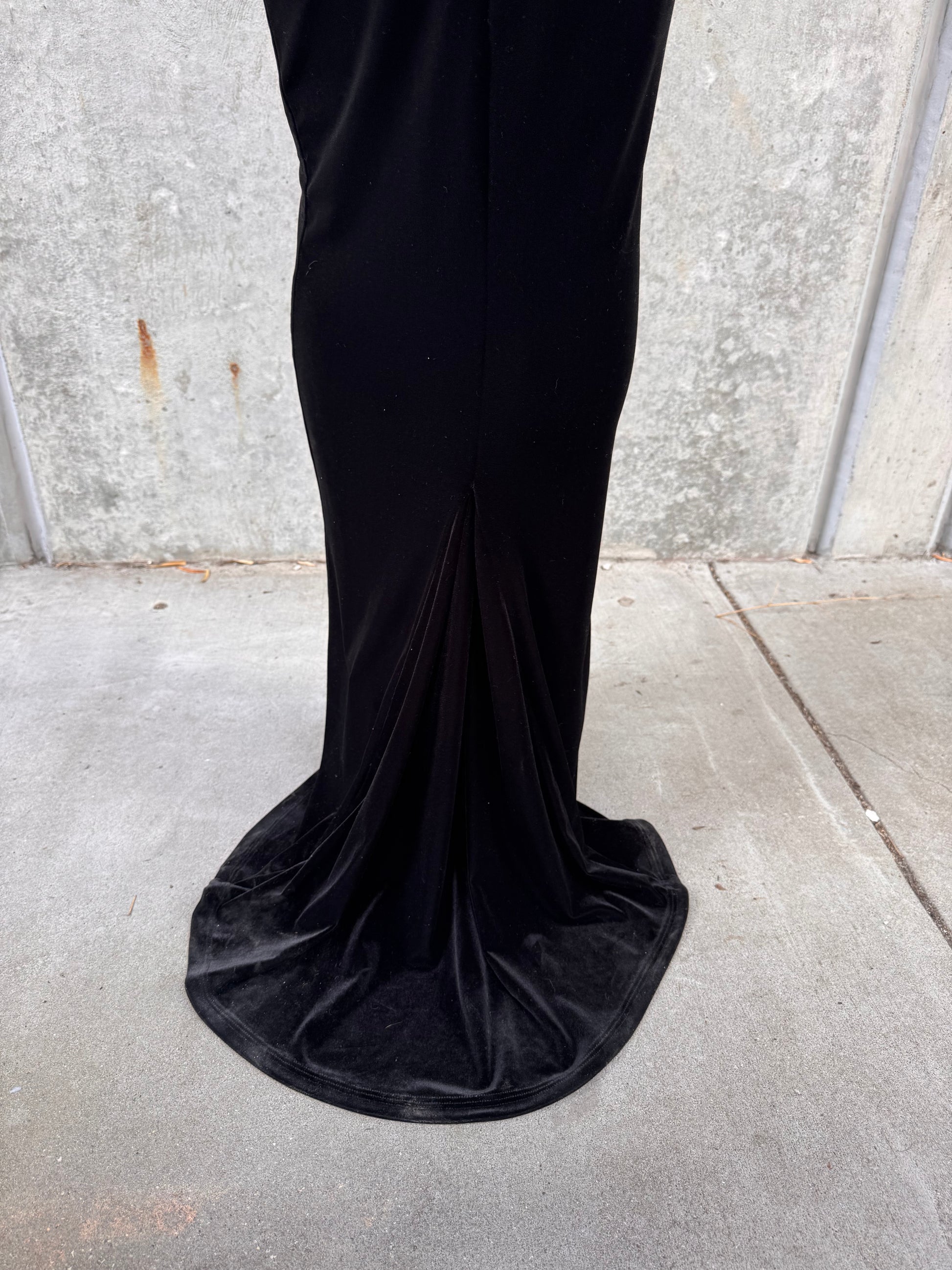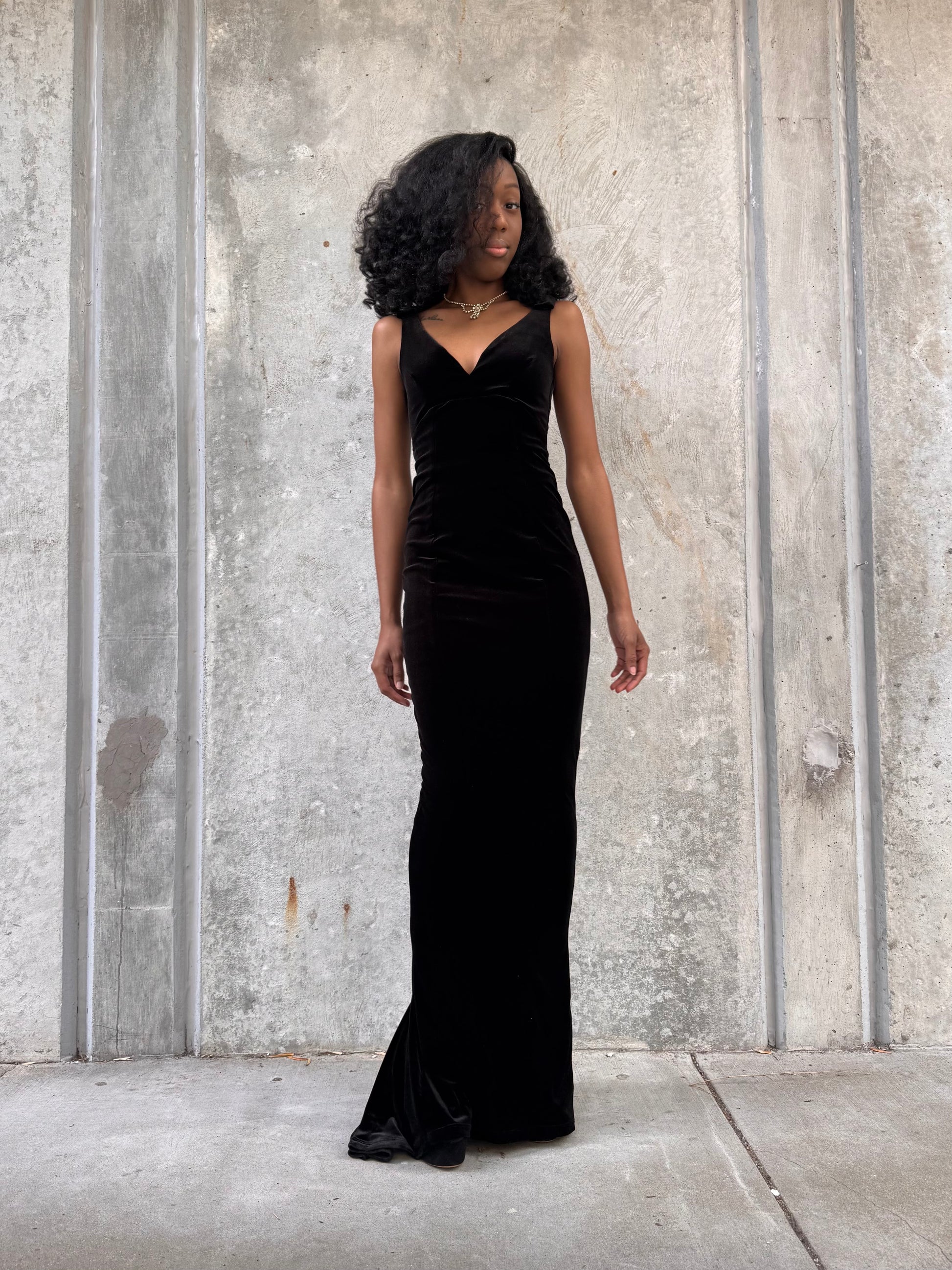 1990/Y2K Black Velvet Empire Waist Floor Length Gown