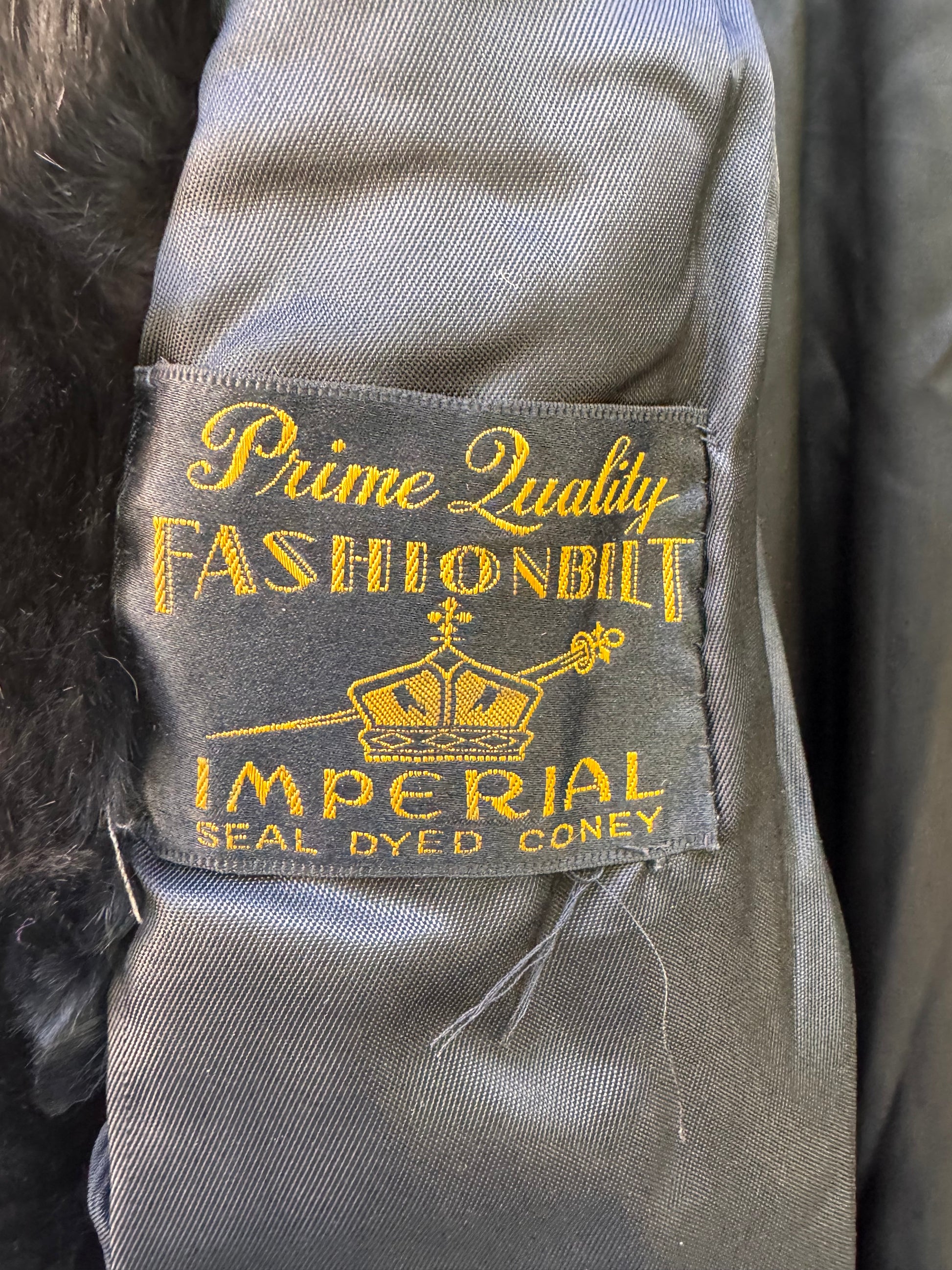 Black Fur Coat with wide Collar and Large Square Fur Buttons