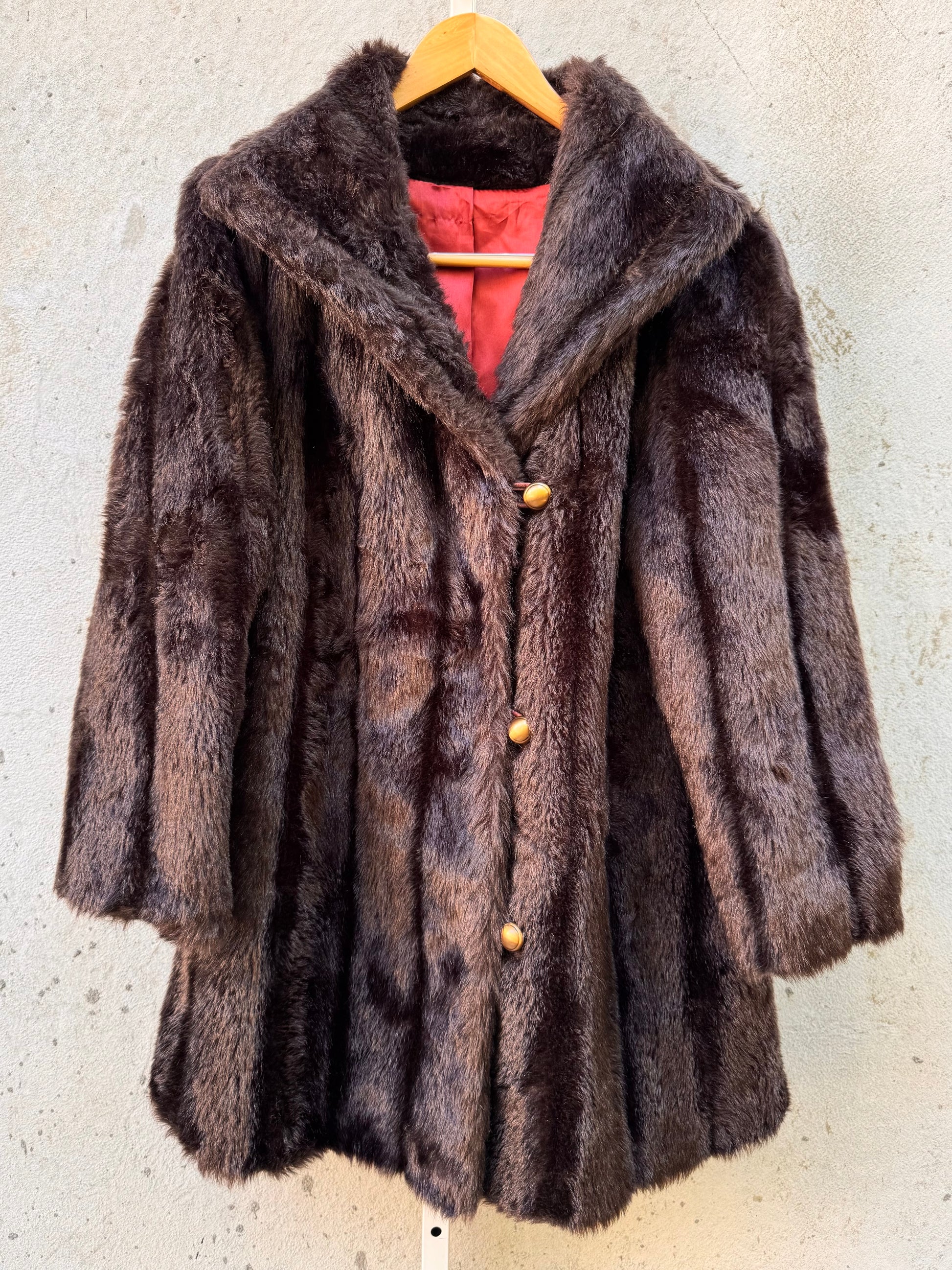 Brown Faux Fur Coat with Gold Buttons