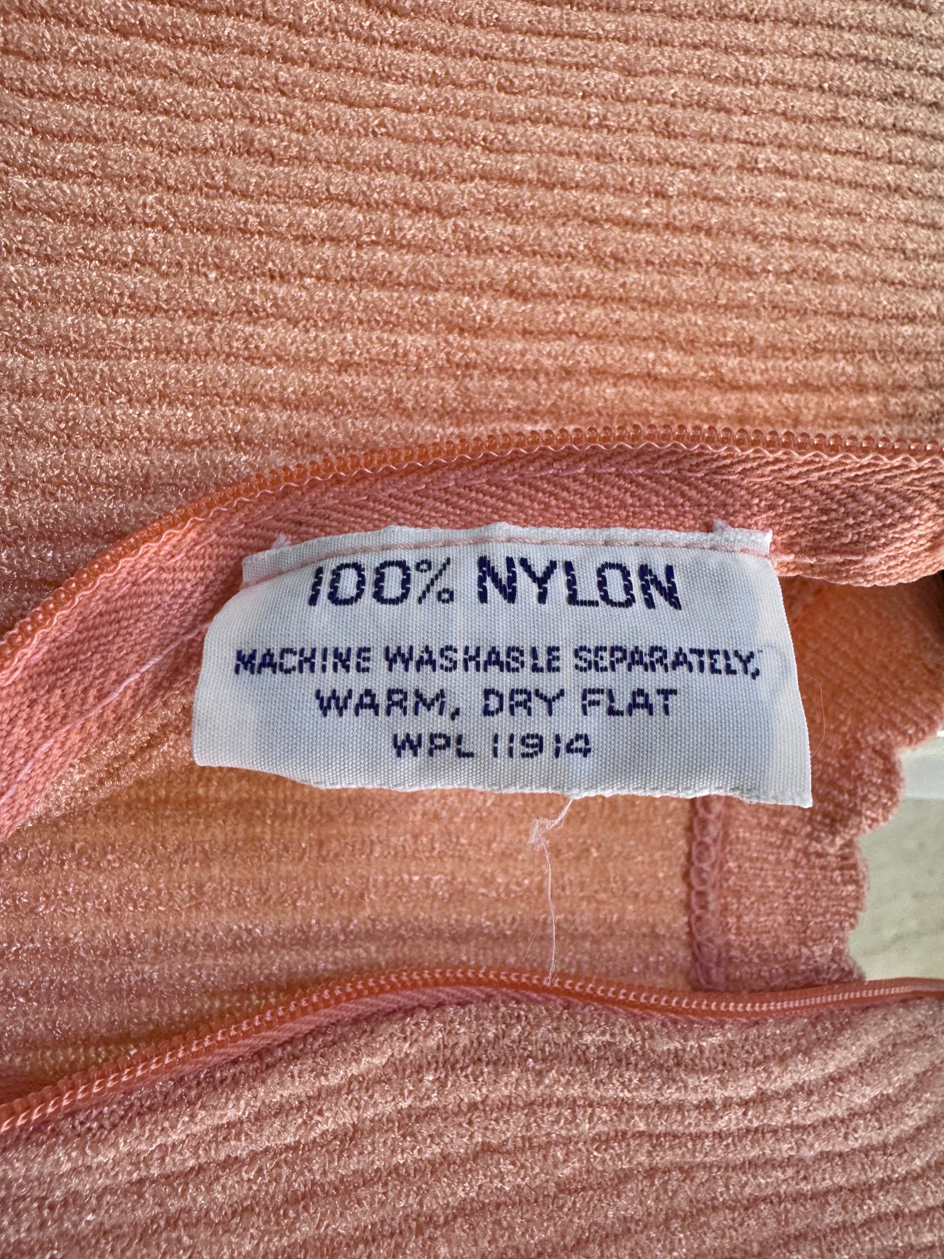 1970s Pink Rib Knit Sleeveless Top with scallop edge sleeve hem