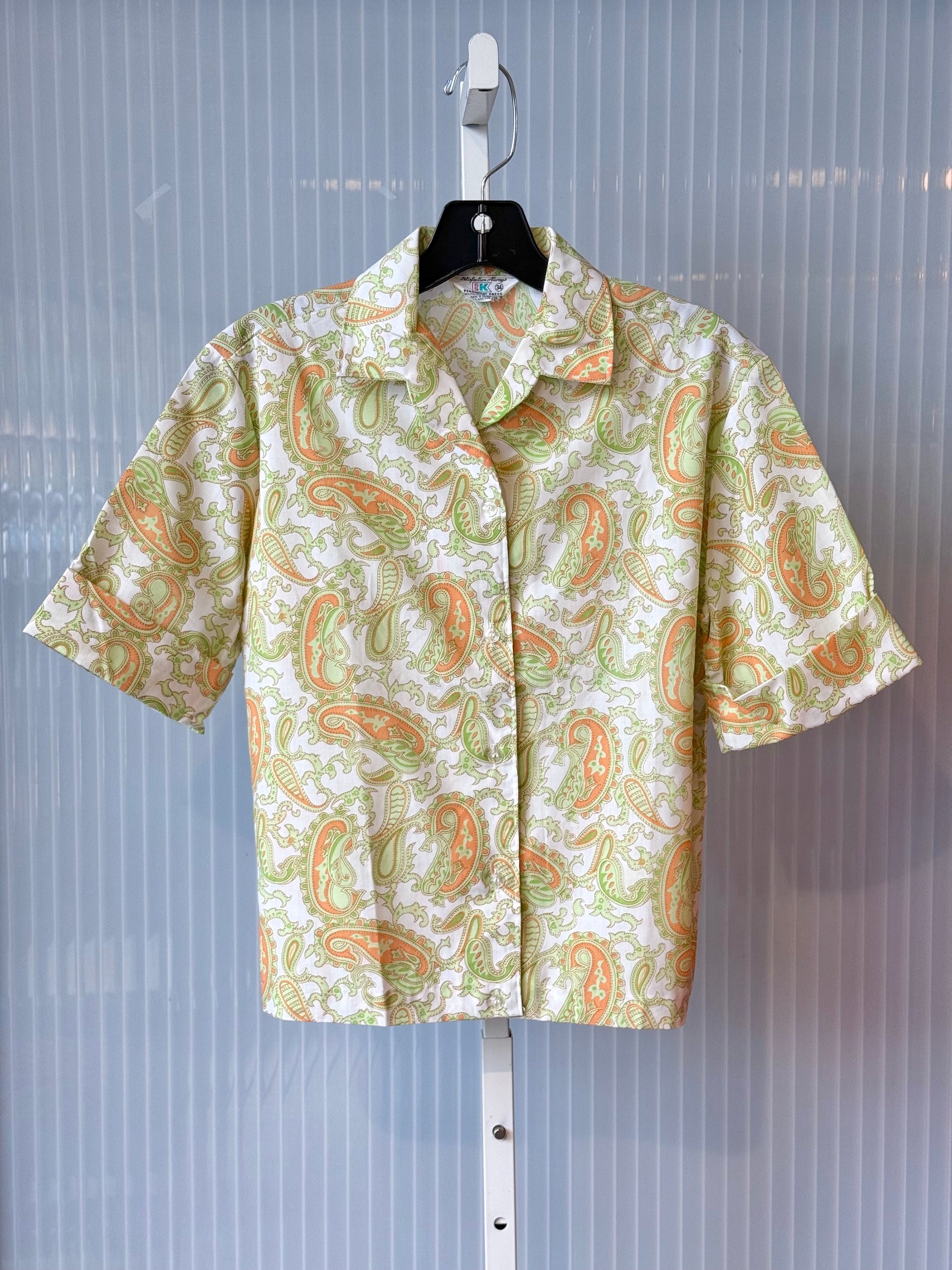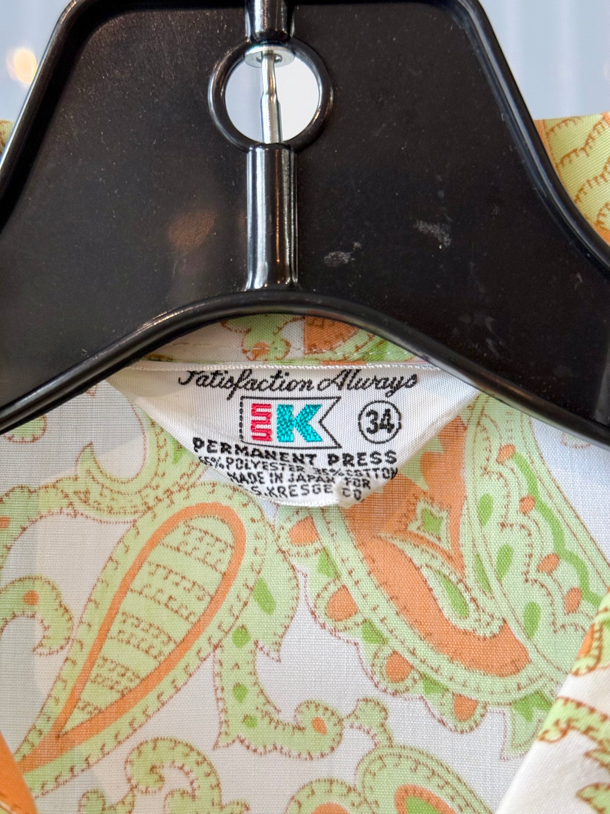 1970s Green & Orange Paisley Short Sleeve Collared Shirt
