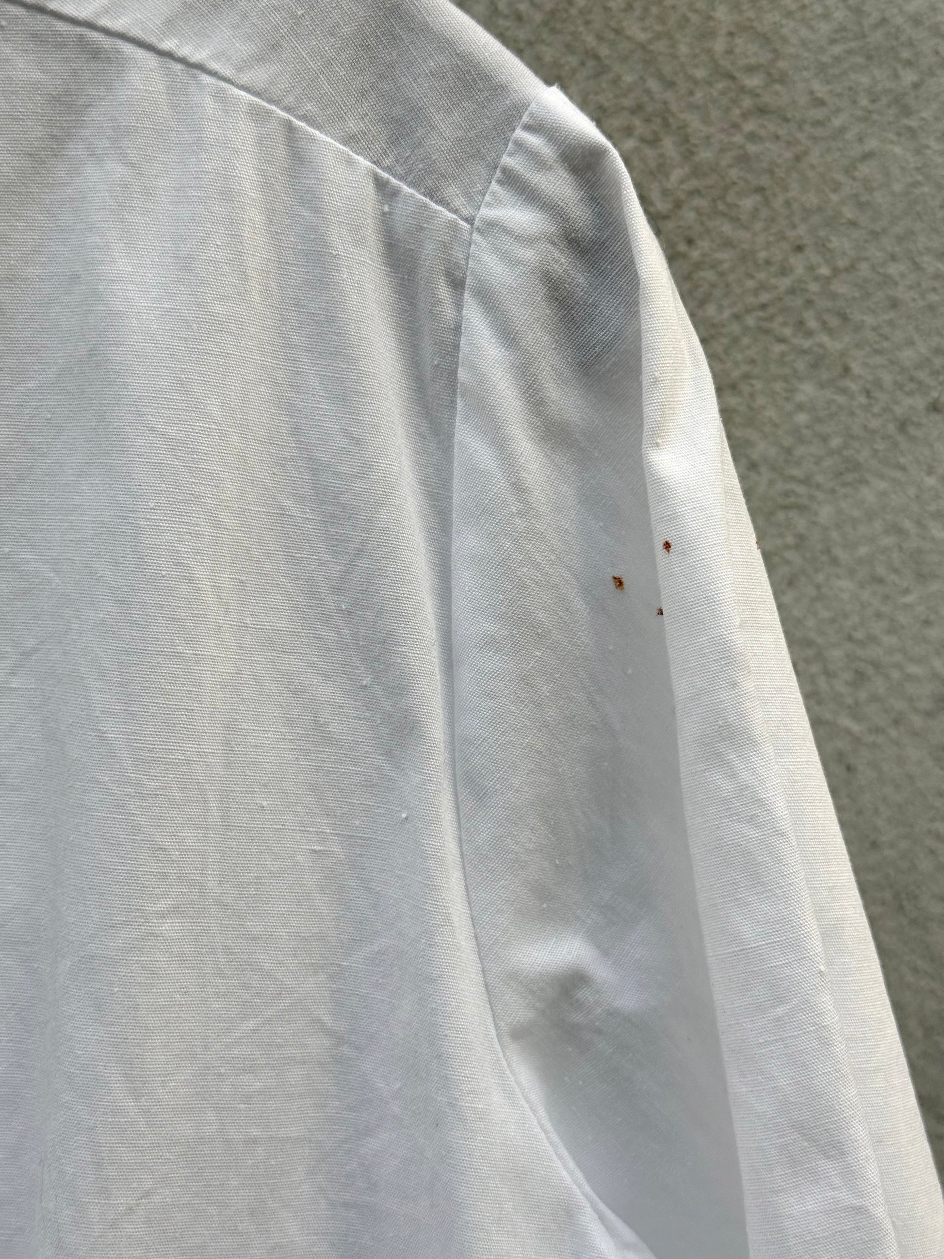 1960s White Collared Shirt w/ Pink Embroidery