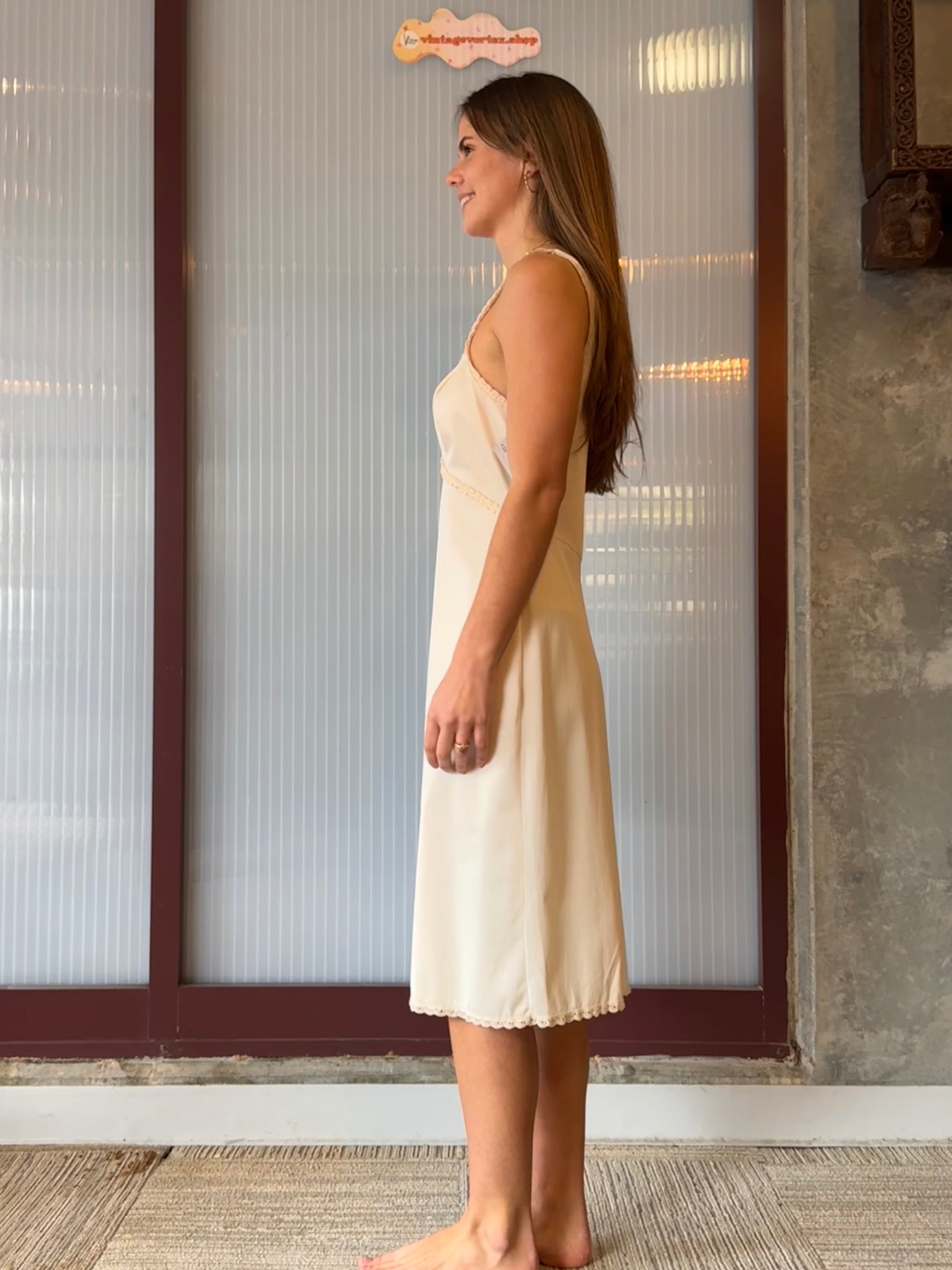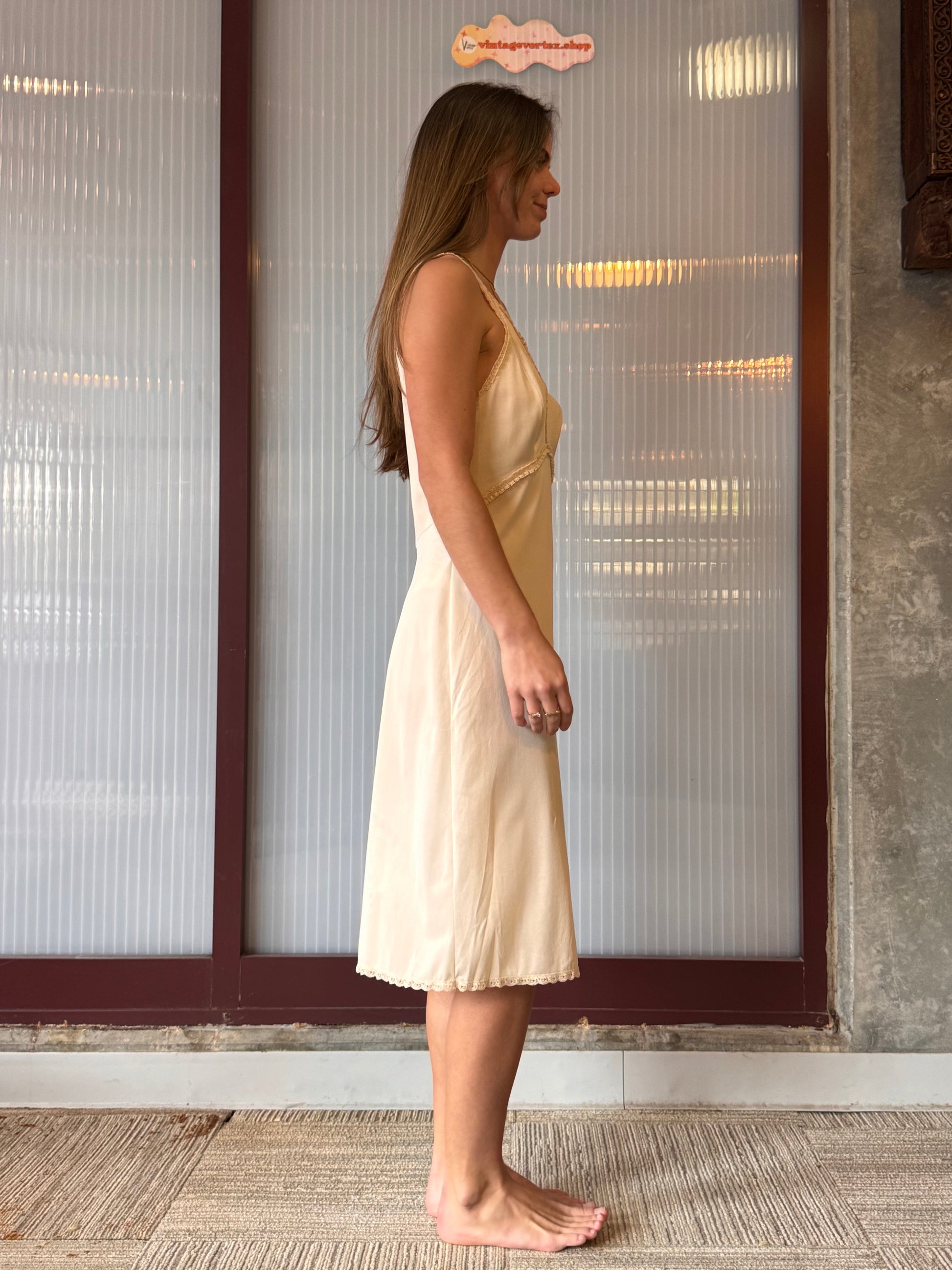 1970s Wonder Maid cream slip with beige trim