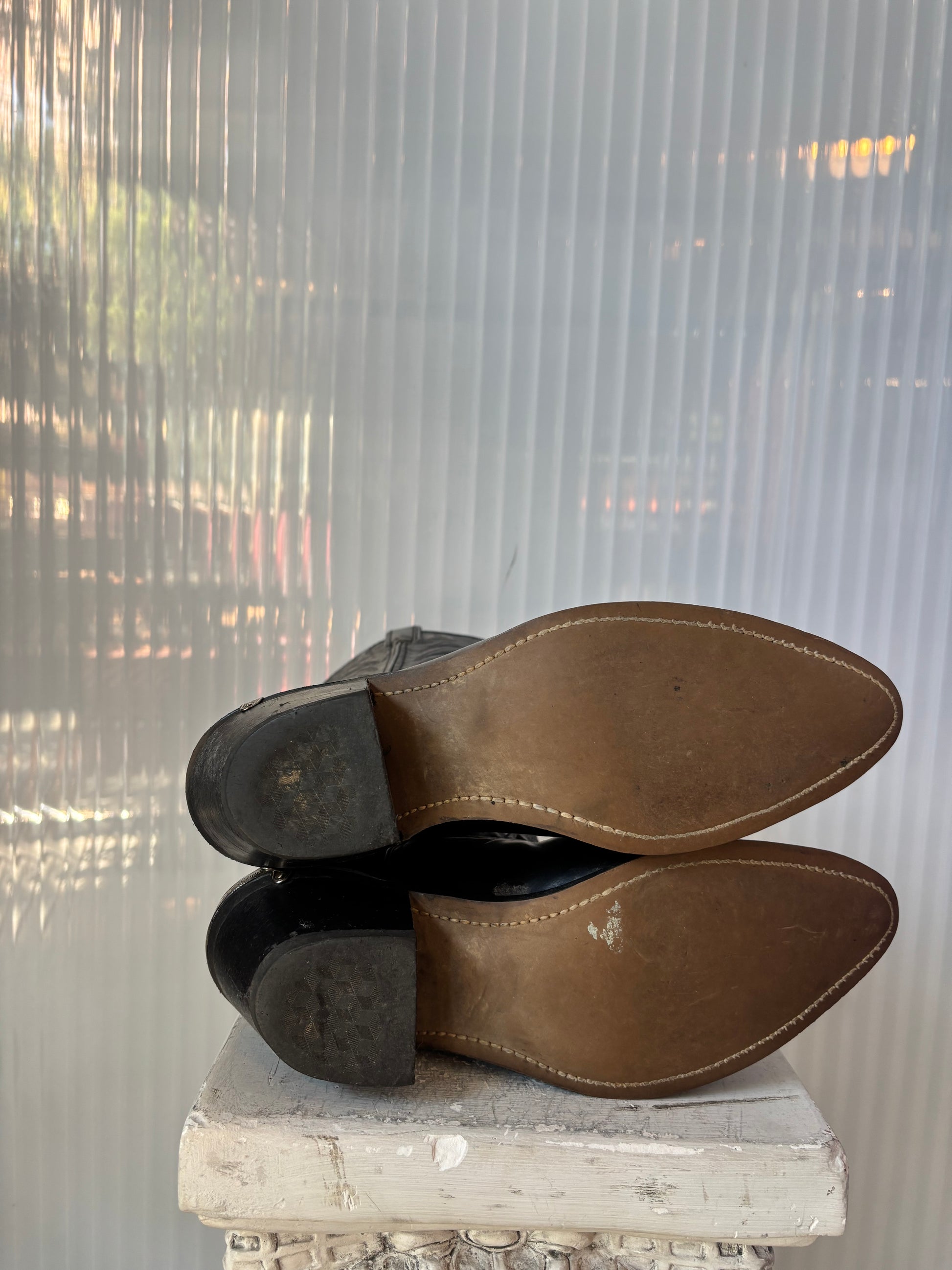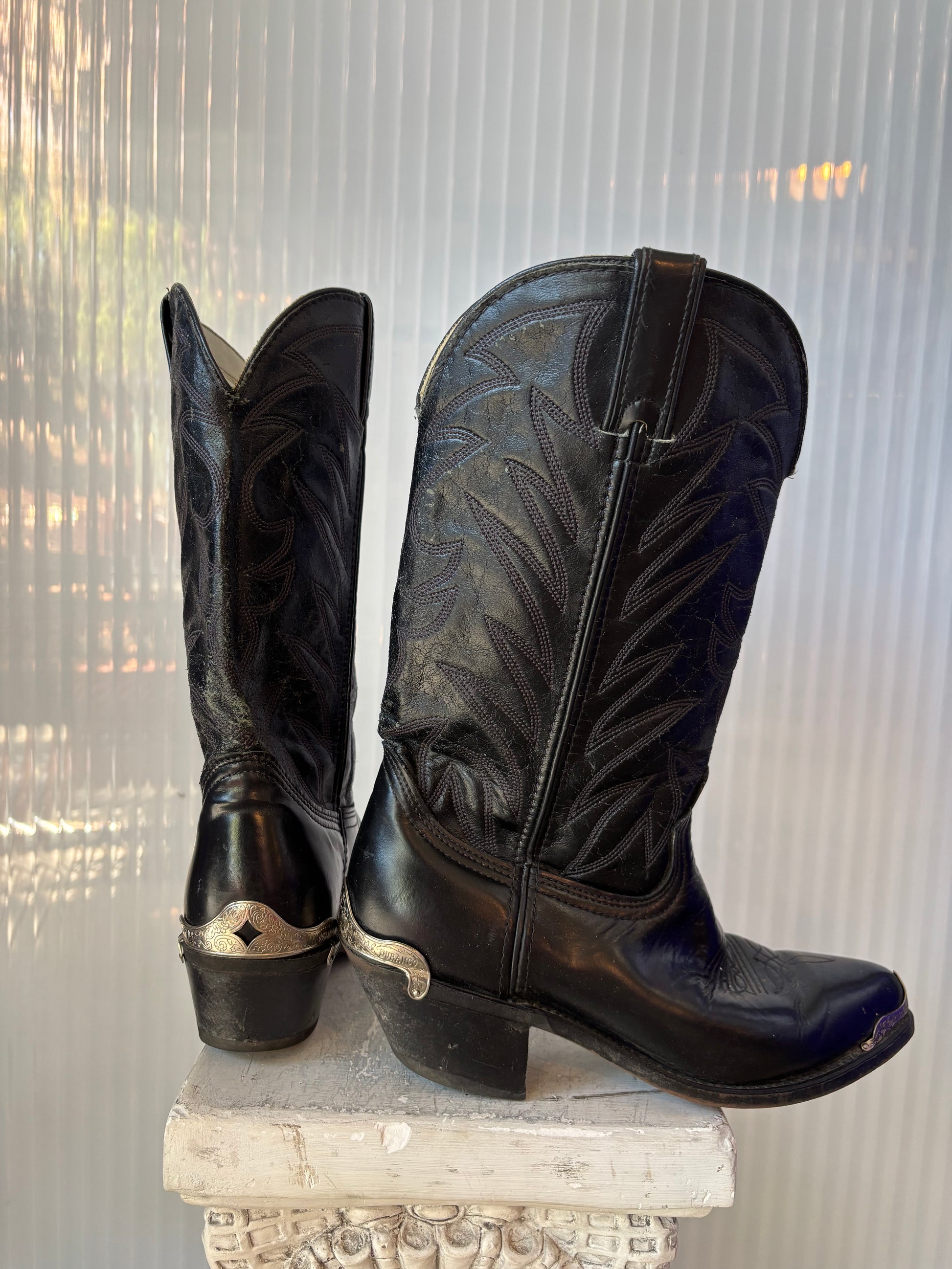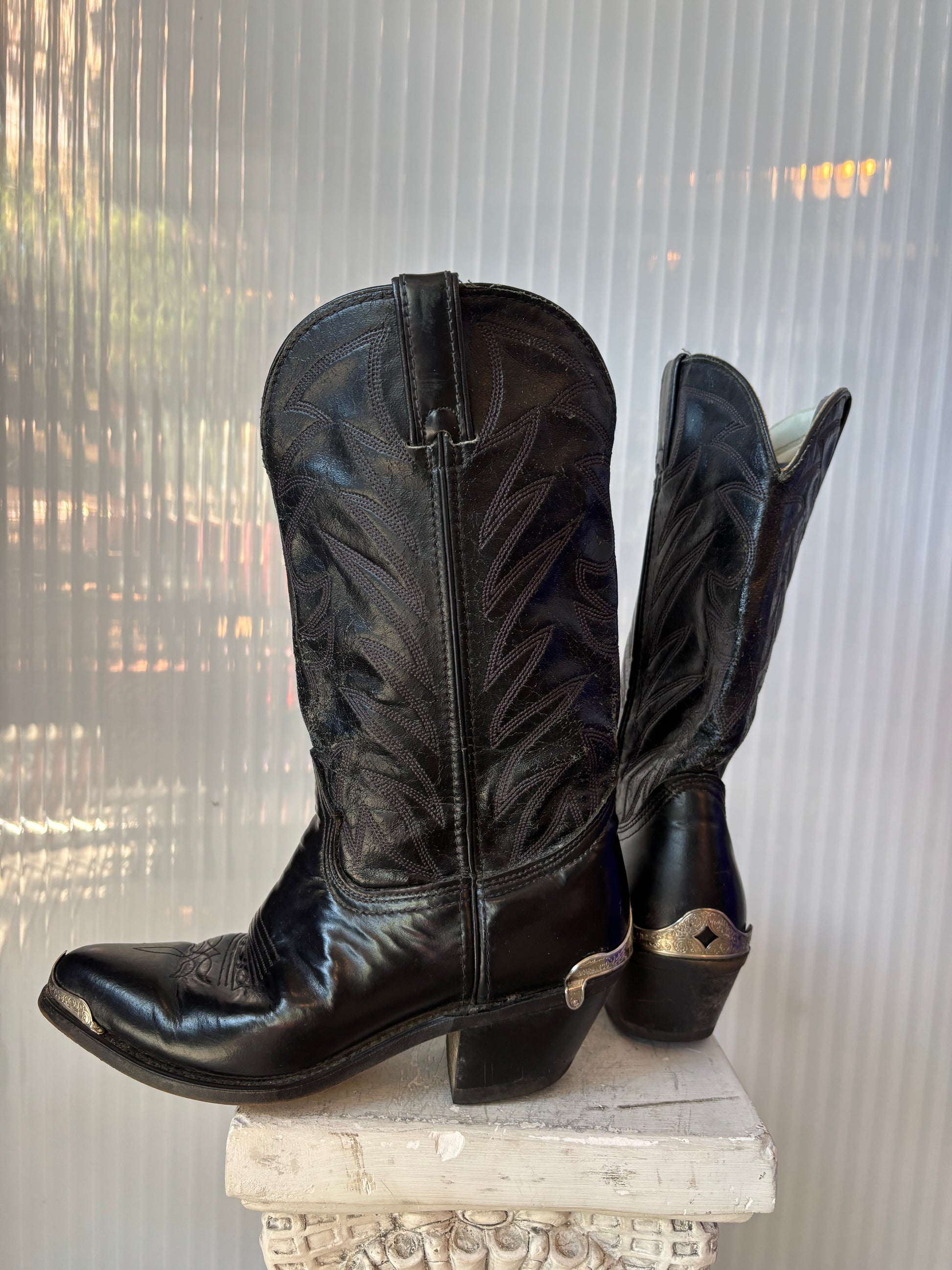 Durango Black Leather Silver tip & Heel size 8D