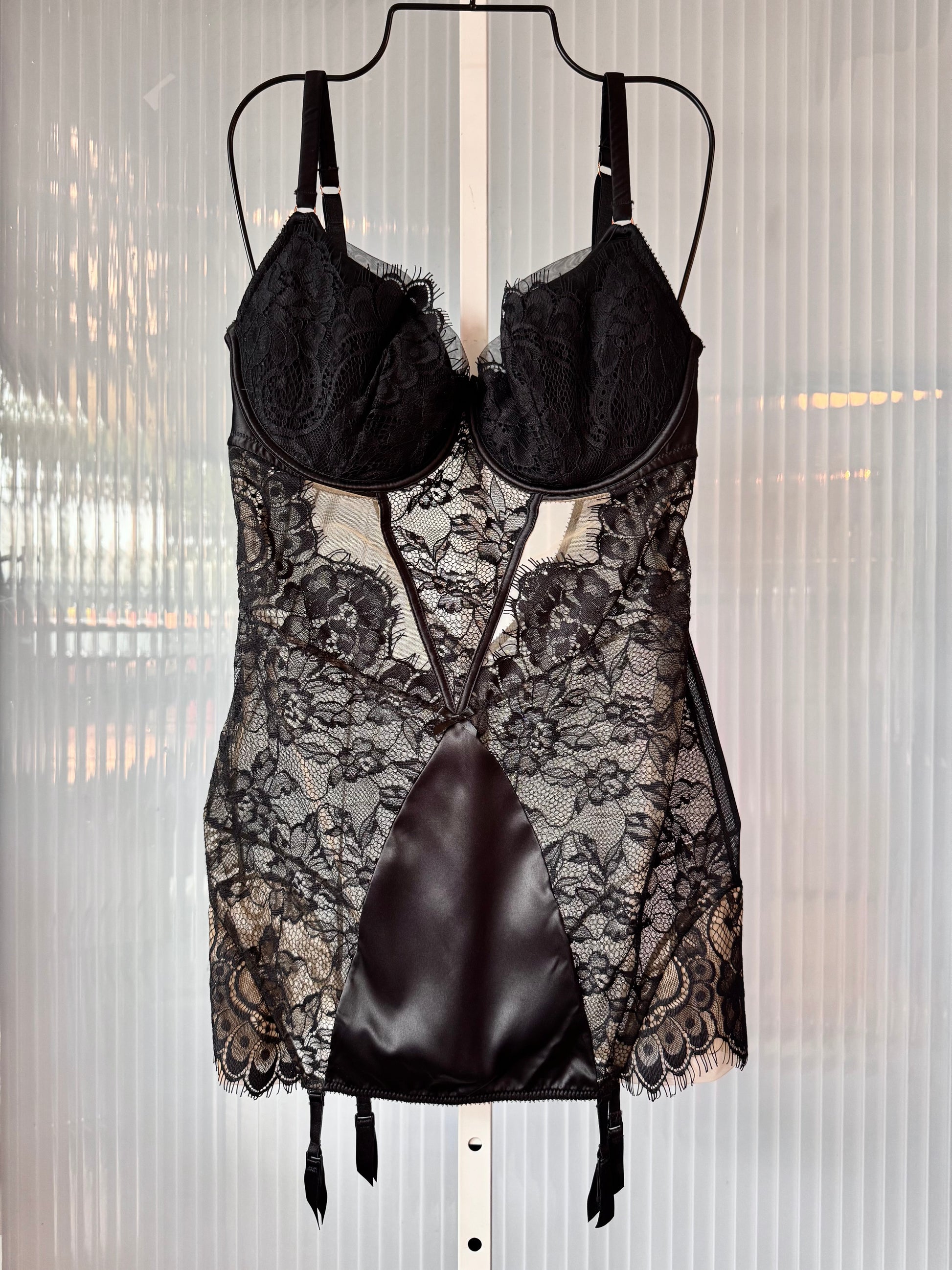 2010s Black Lace Bodycon Corset Dress
