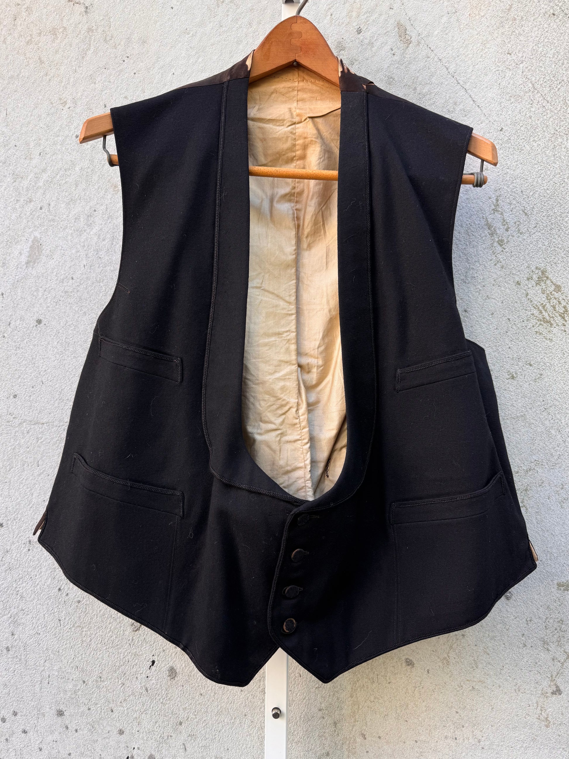 Edwardian Era (early 1900s) black tuxedo tailcoat, vest, & pants set