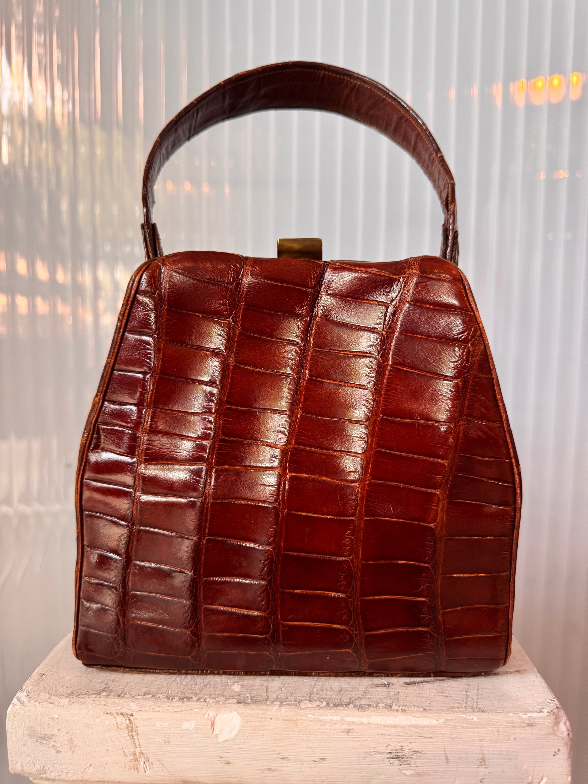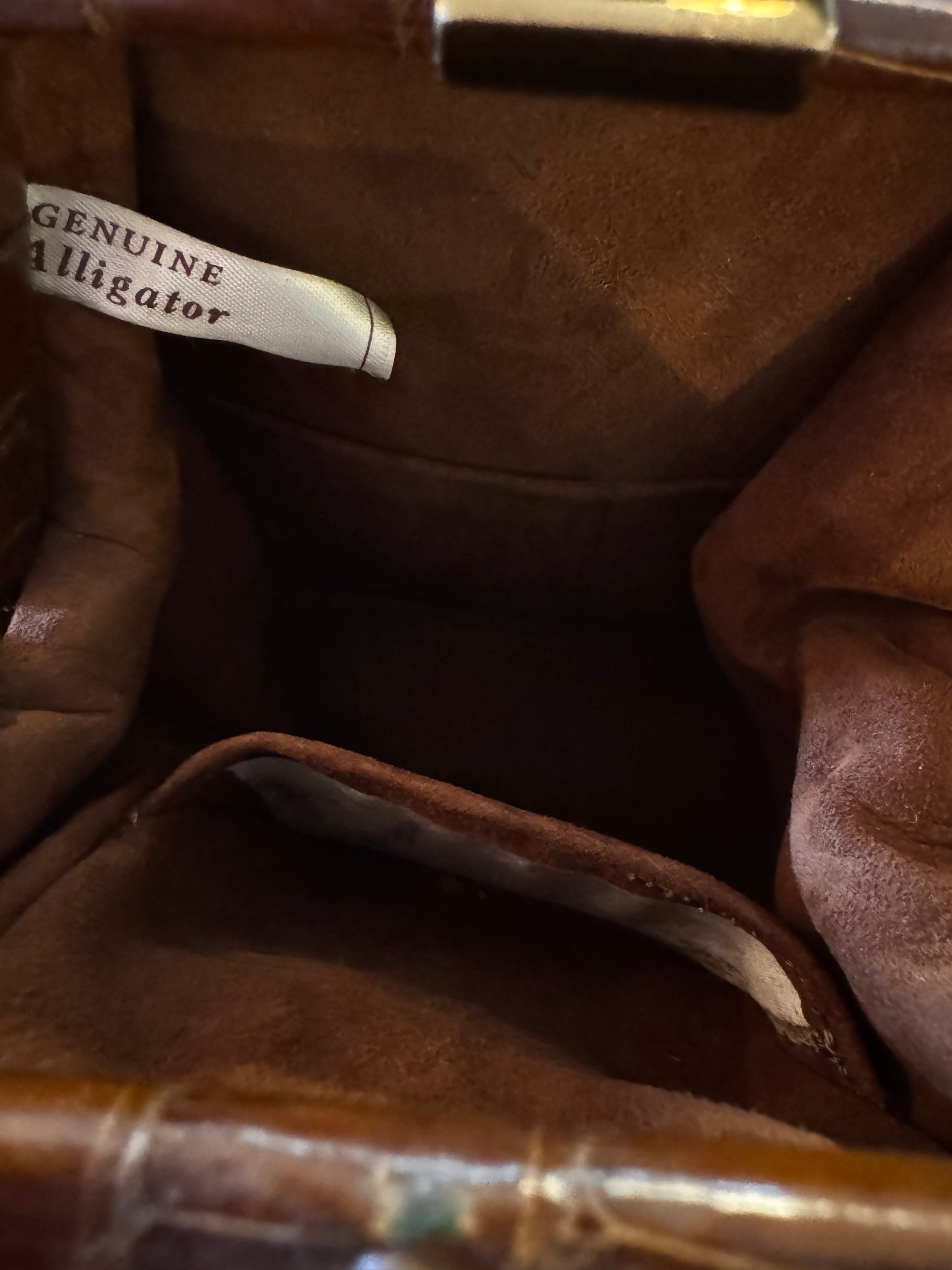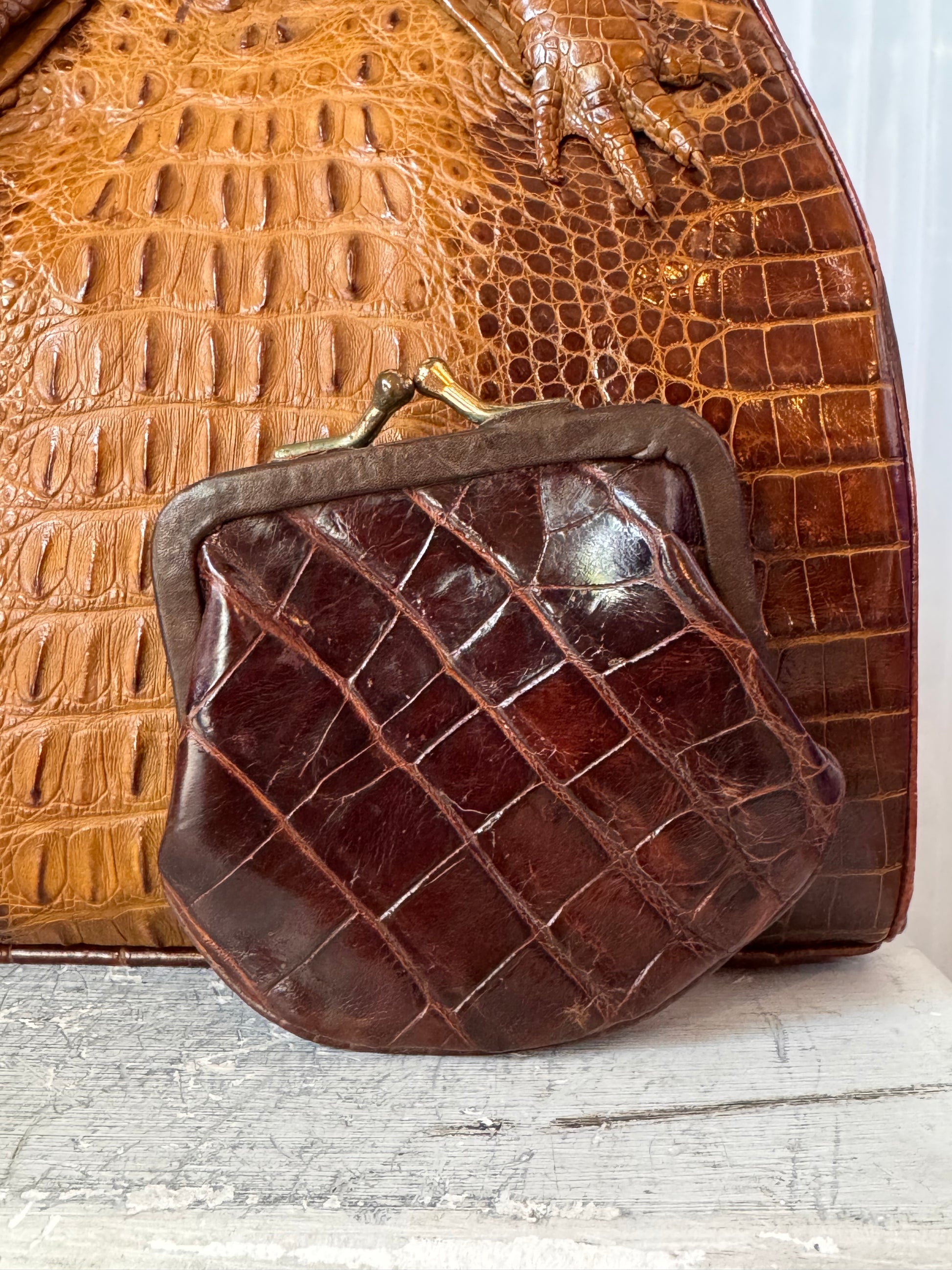 1940s Brown Alligator Skin Purse with Coin Pouch
