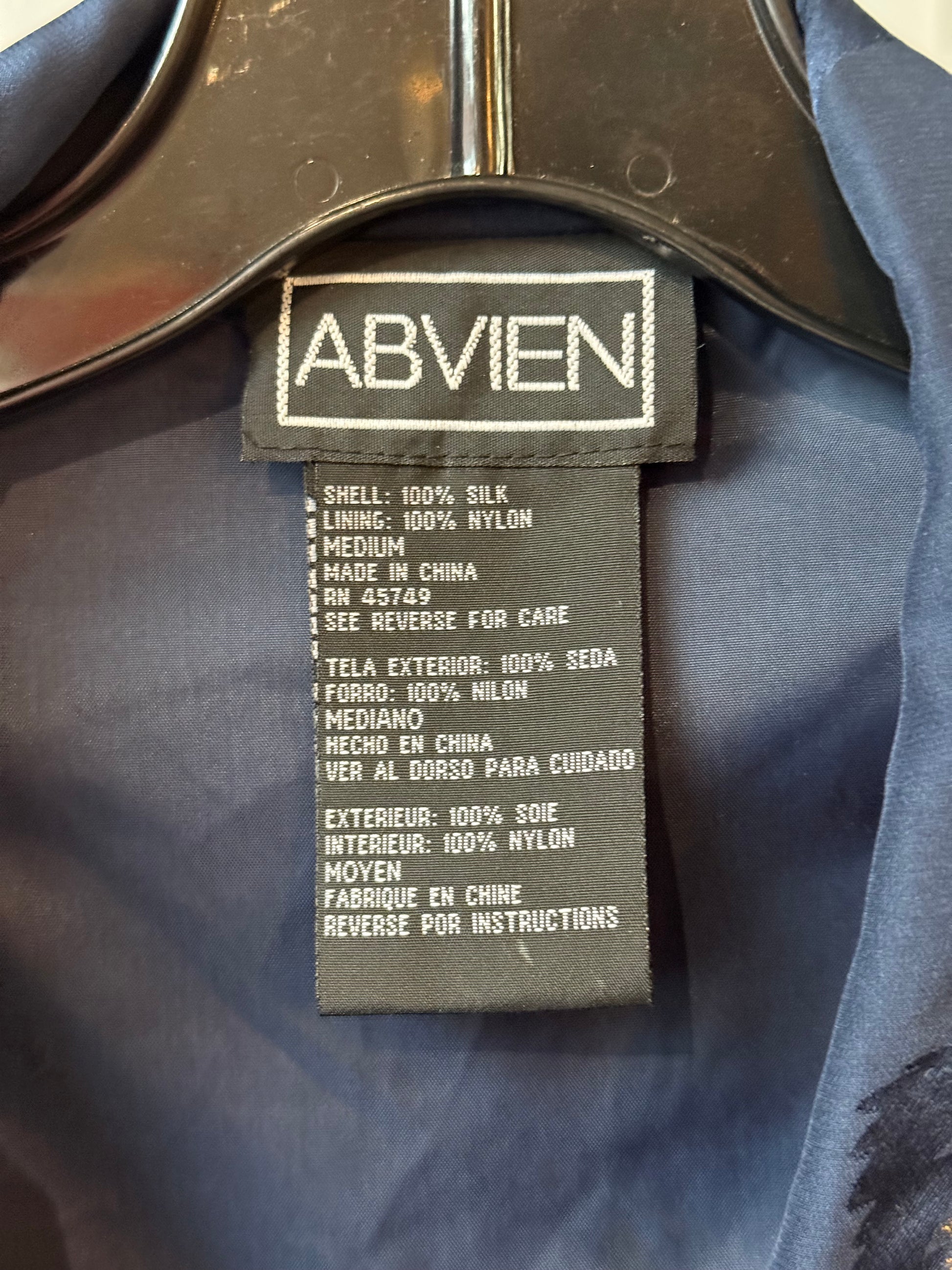 1990s Navy Silk Windbreaker Jacket w/ Gold Details