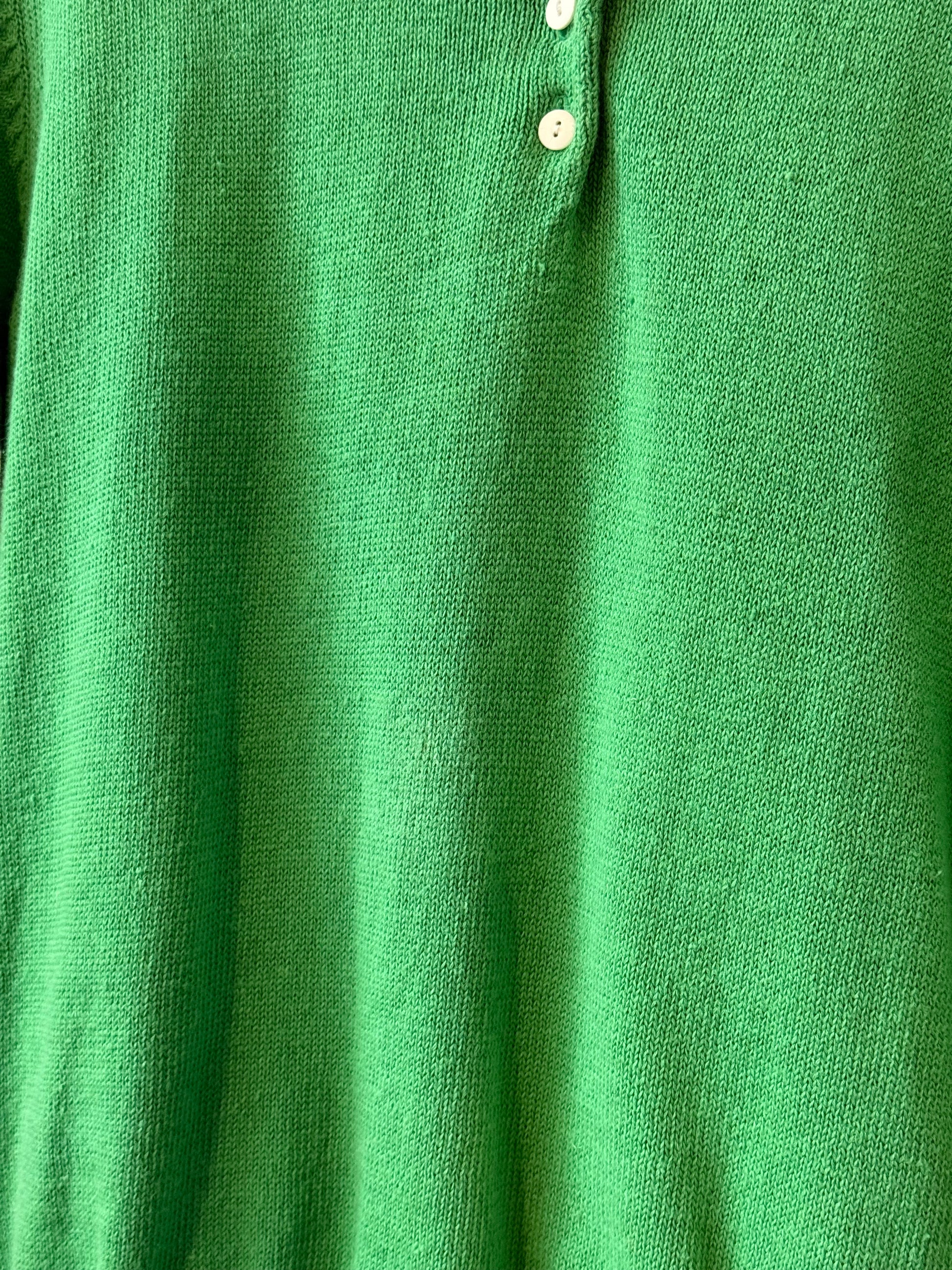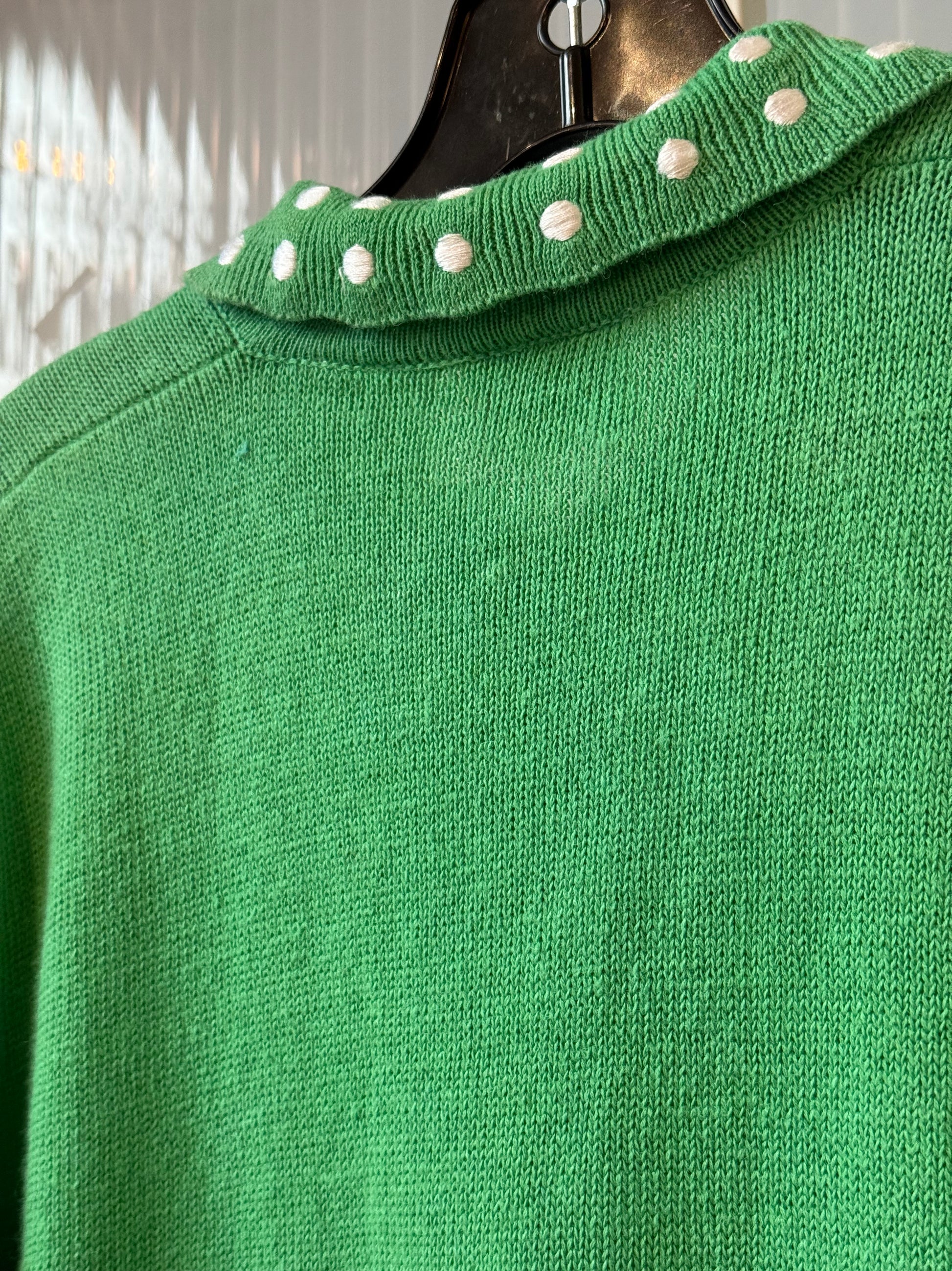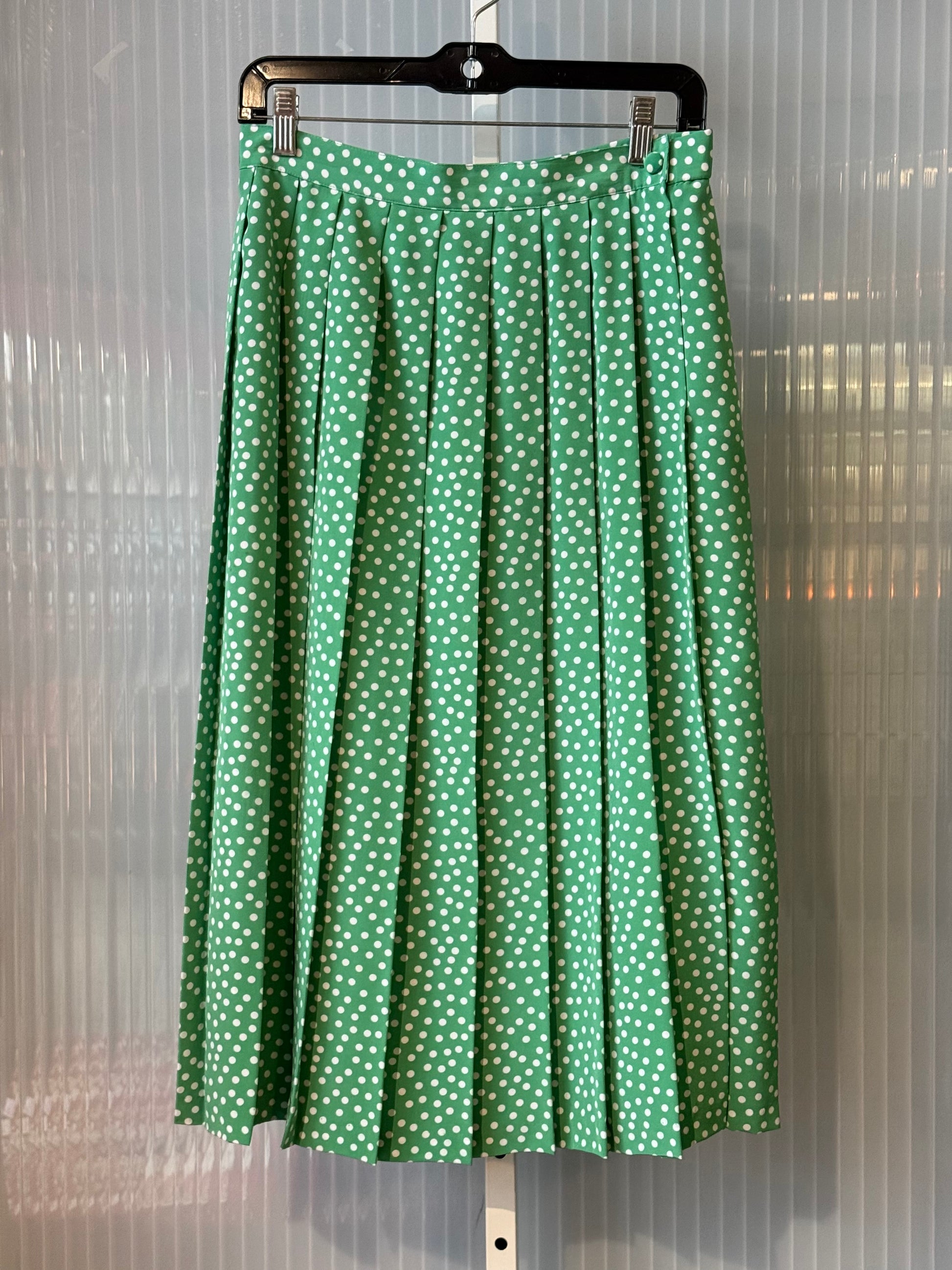 1980s Green & White Collared Top & Pleated Skirt Polka Dot Set