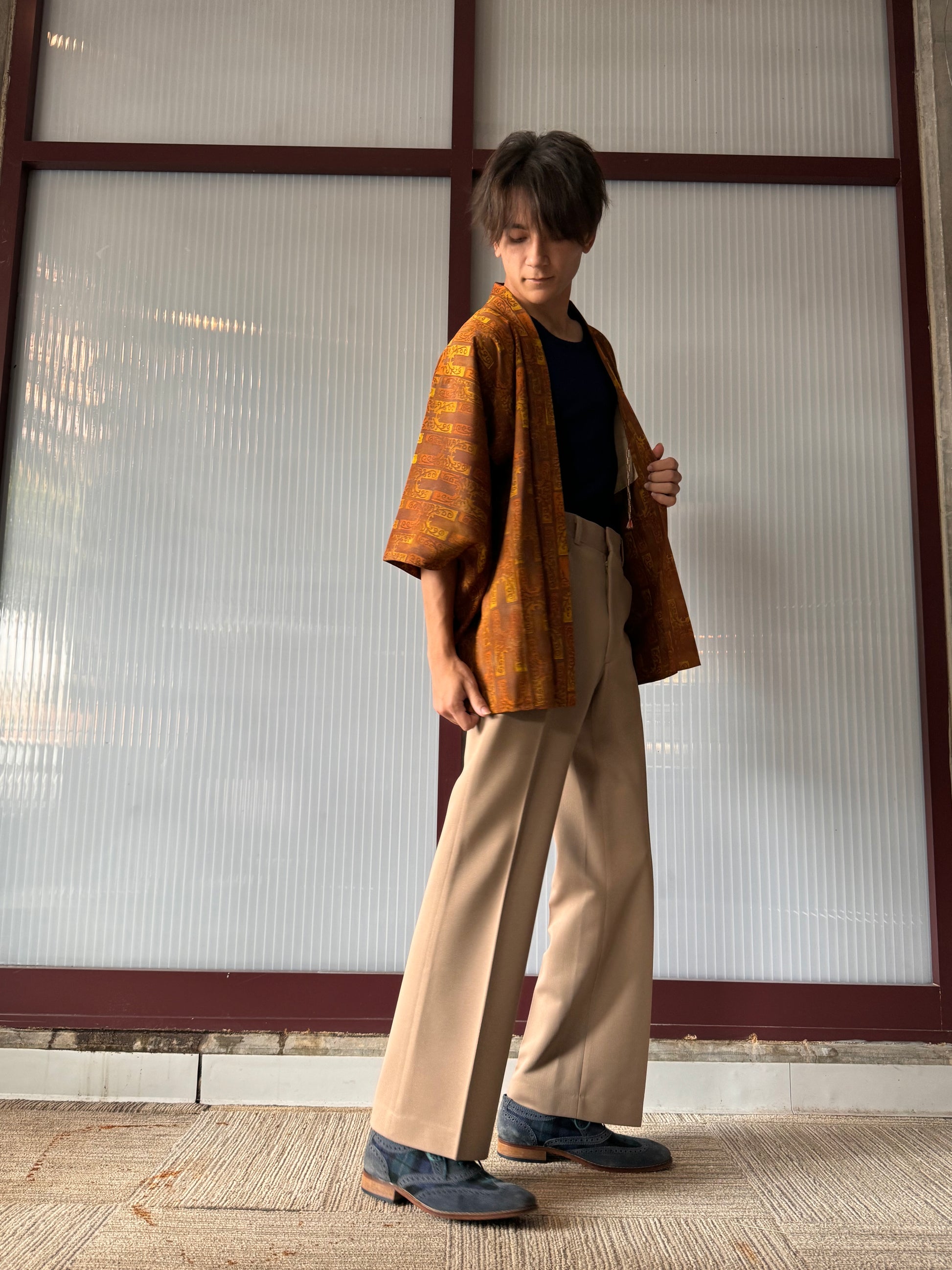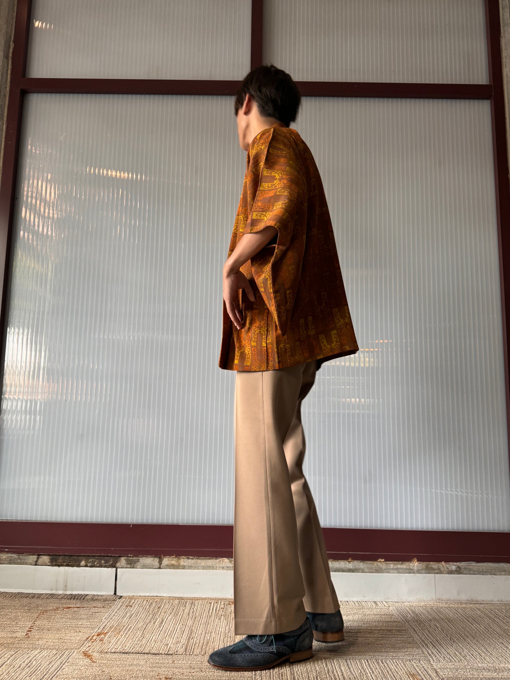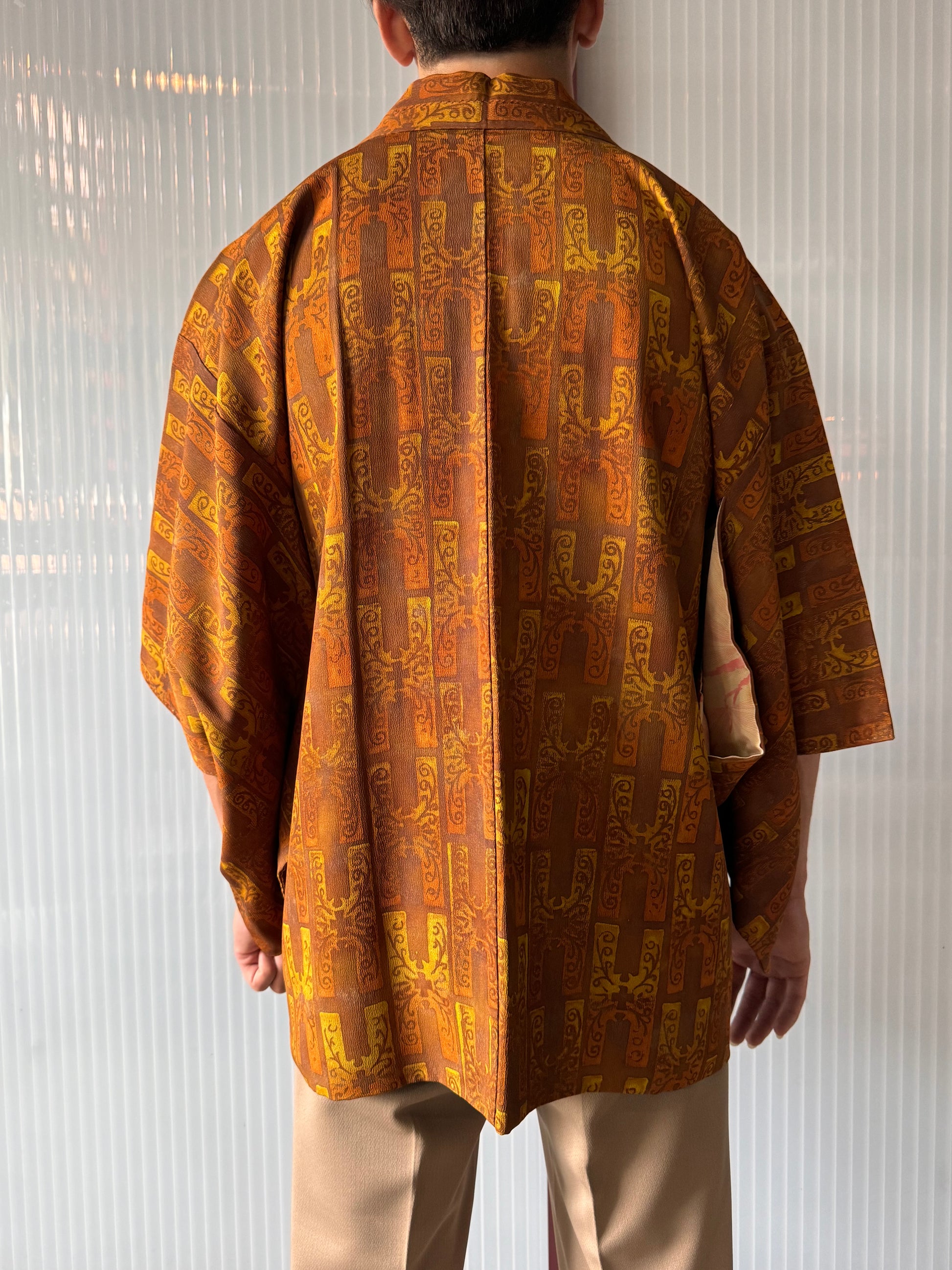 Brown & orange haori with kojitsunagi pattern (H-like pattern)