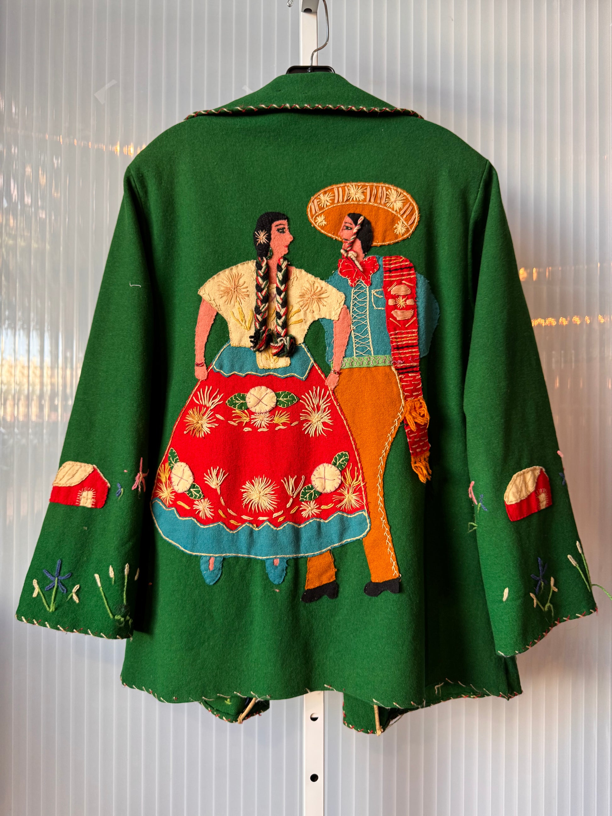 1950s Mexican Embroidered Green Wool Blazer