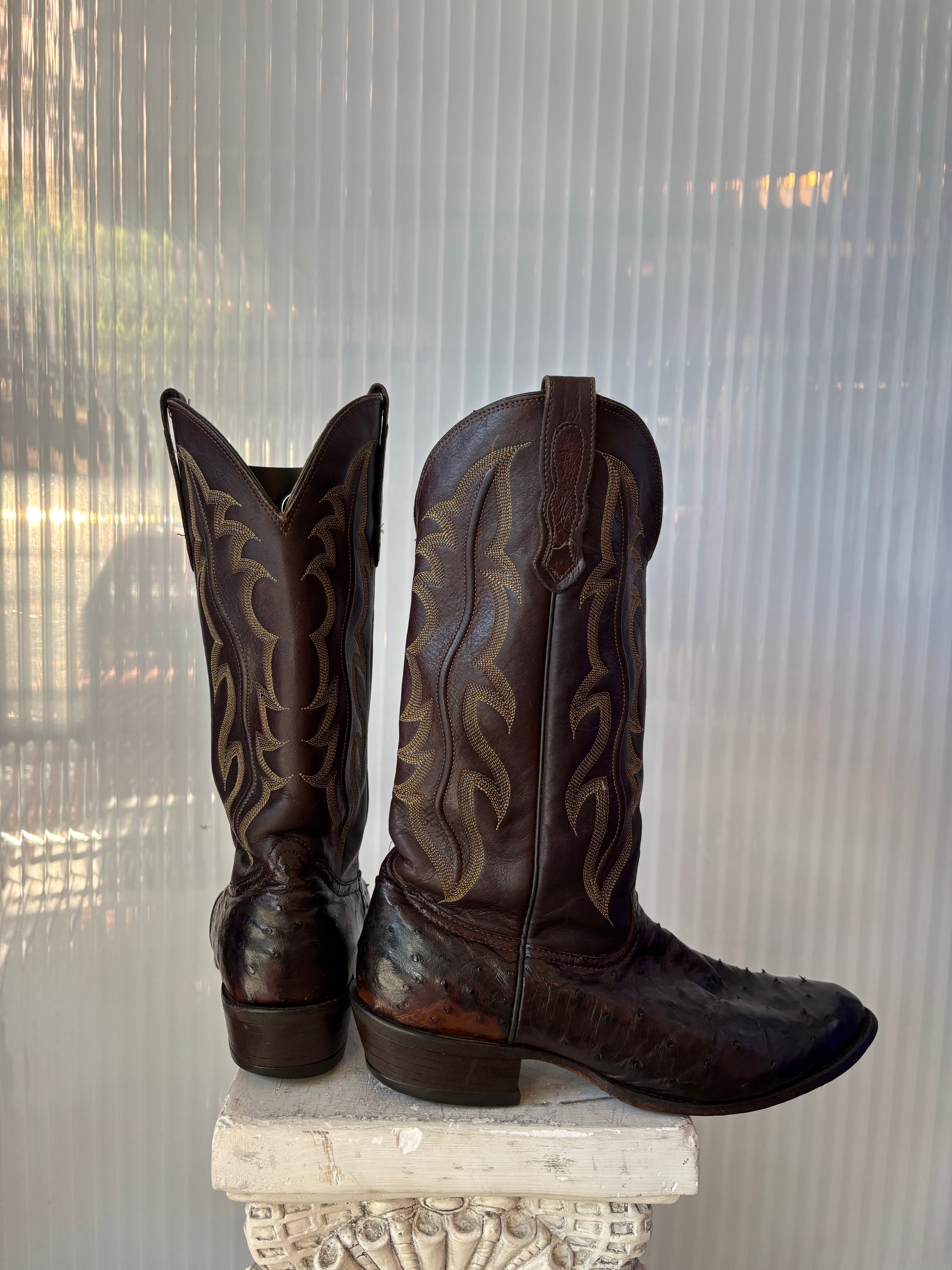 Nocona Brown Faux Ostrich Leather Cowboy Boots size 9D