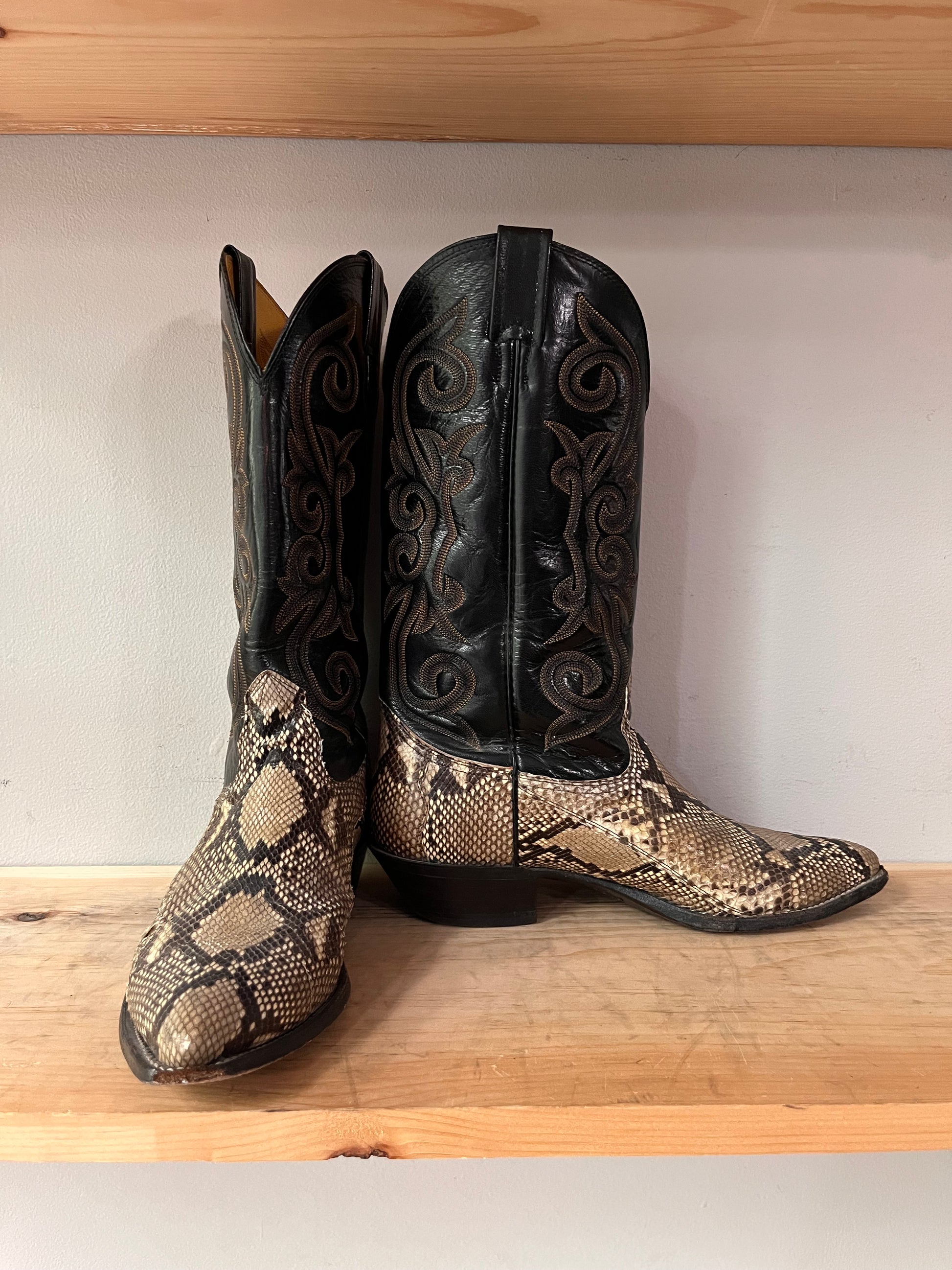 Black & brown snakeskin cowboy boots